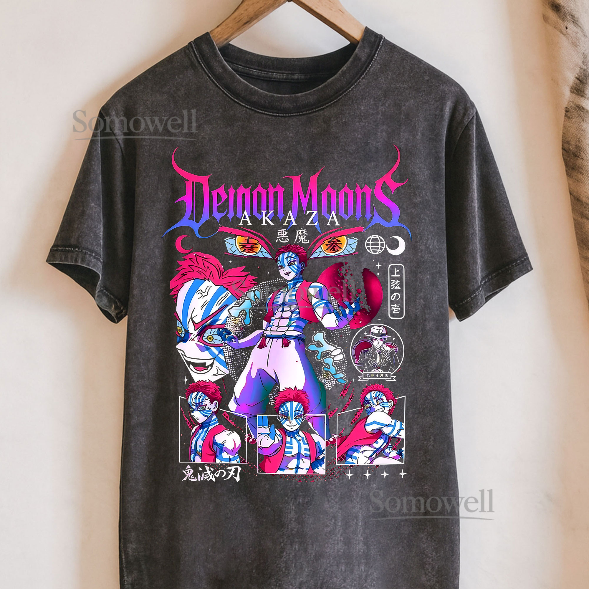 Akaza Demon Moons Upper Rank Three Demon Slayer Anime Graphic ,hoodie sweatshirt t shirt vintage Japanese Streetwear T Shirt