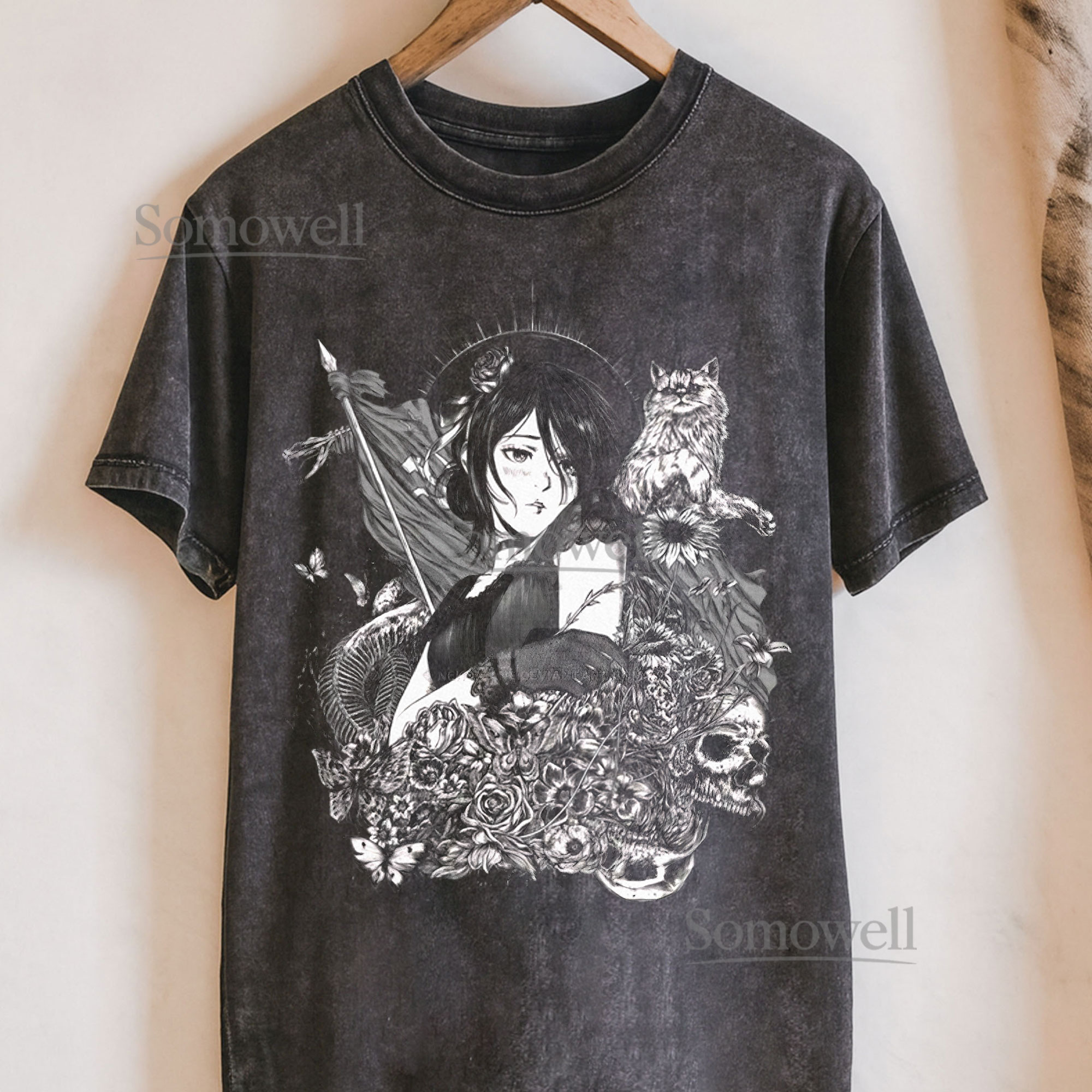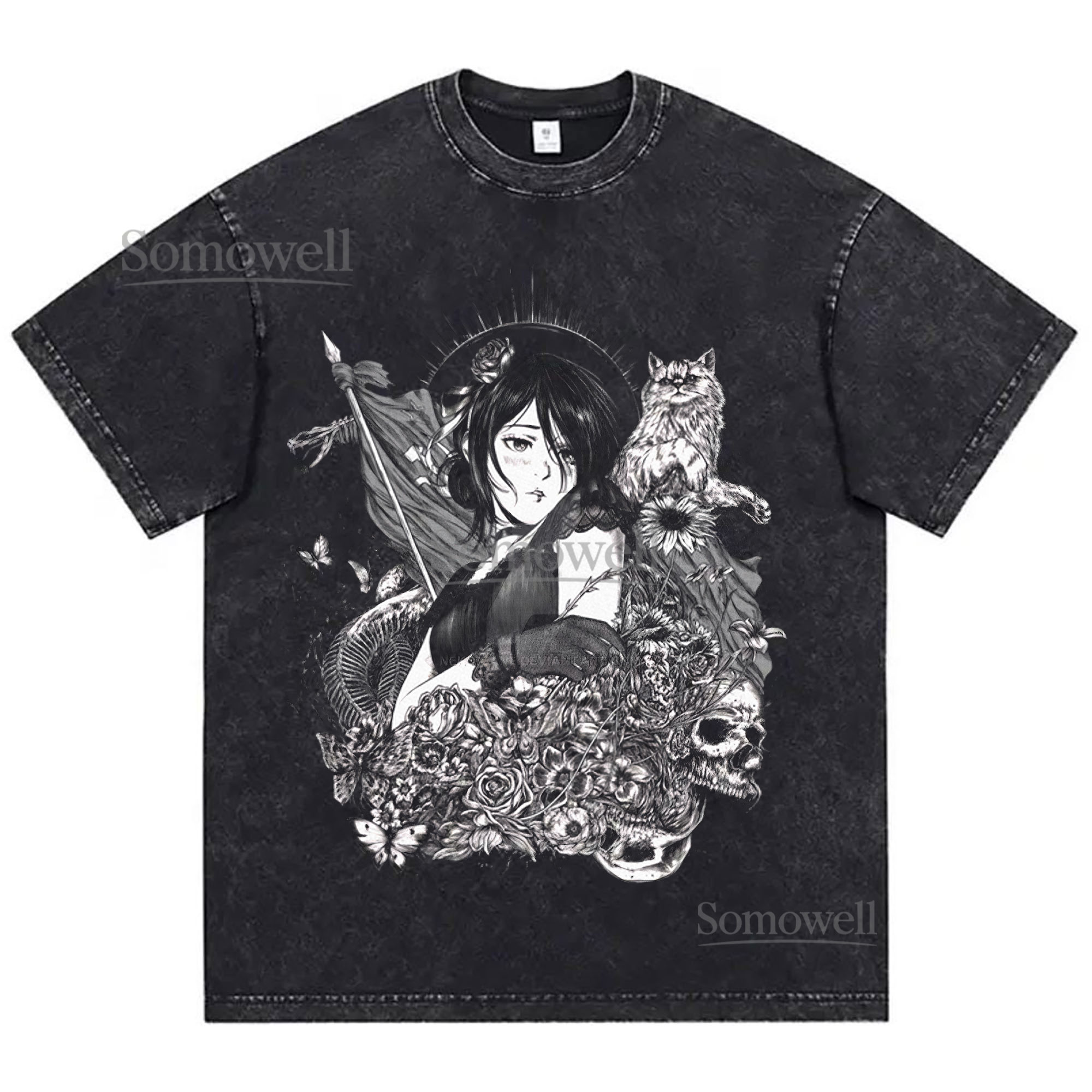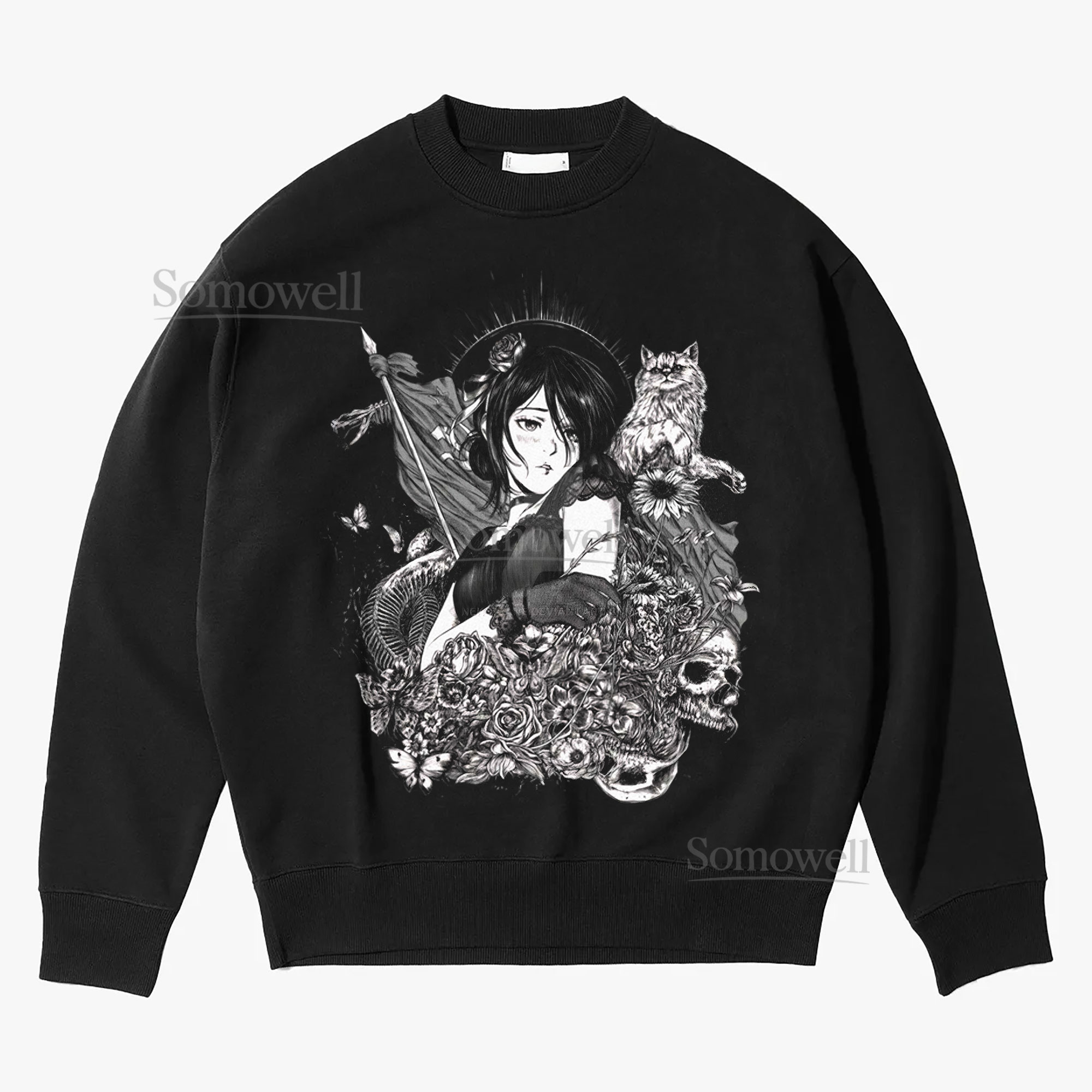 Anime Gothic Woman Cat Skull Flower Graphic ,hoodie sweatshirt t shirt vintage Dark Japanese T Shirt