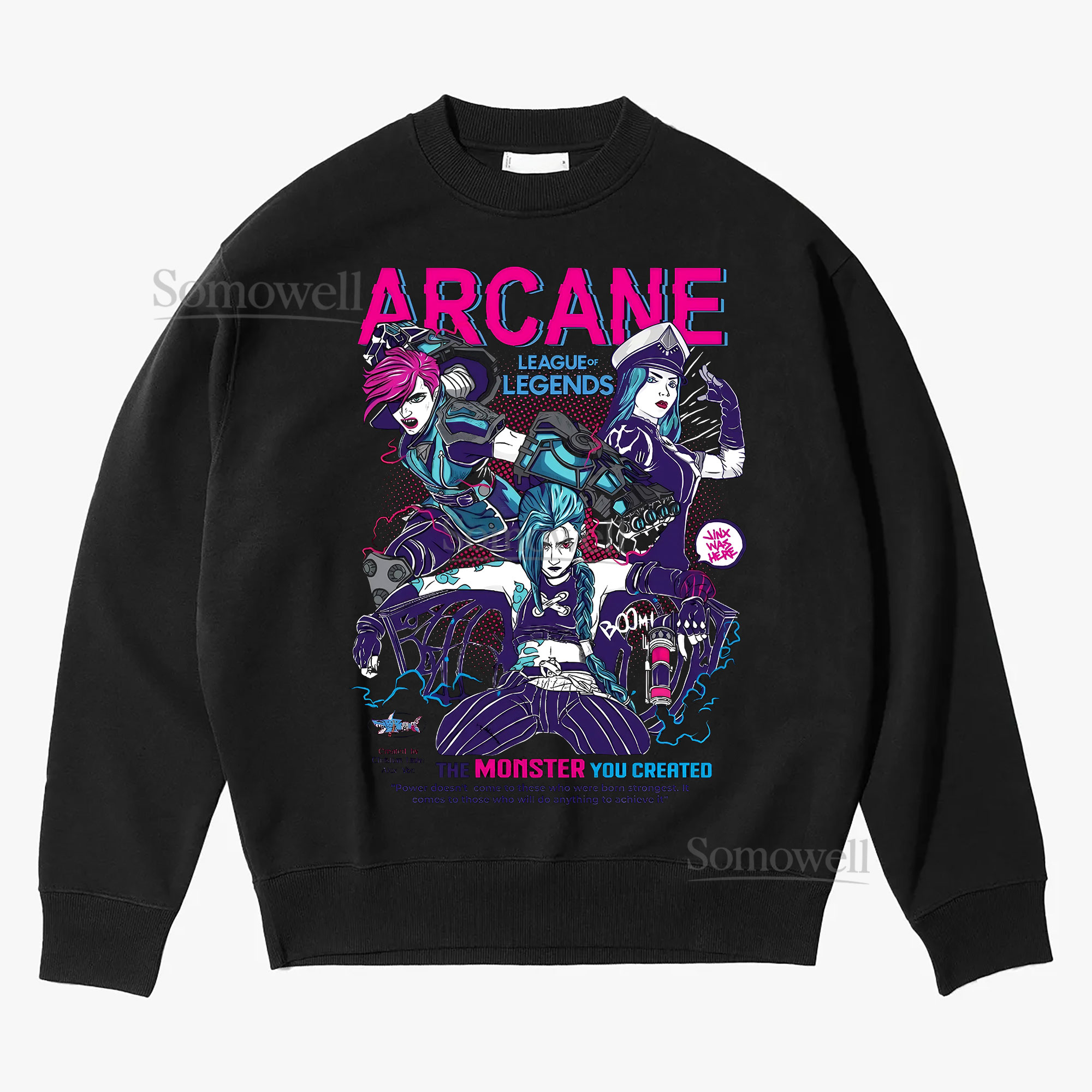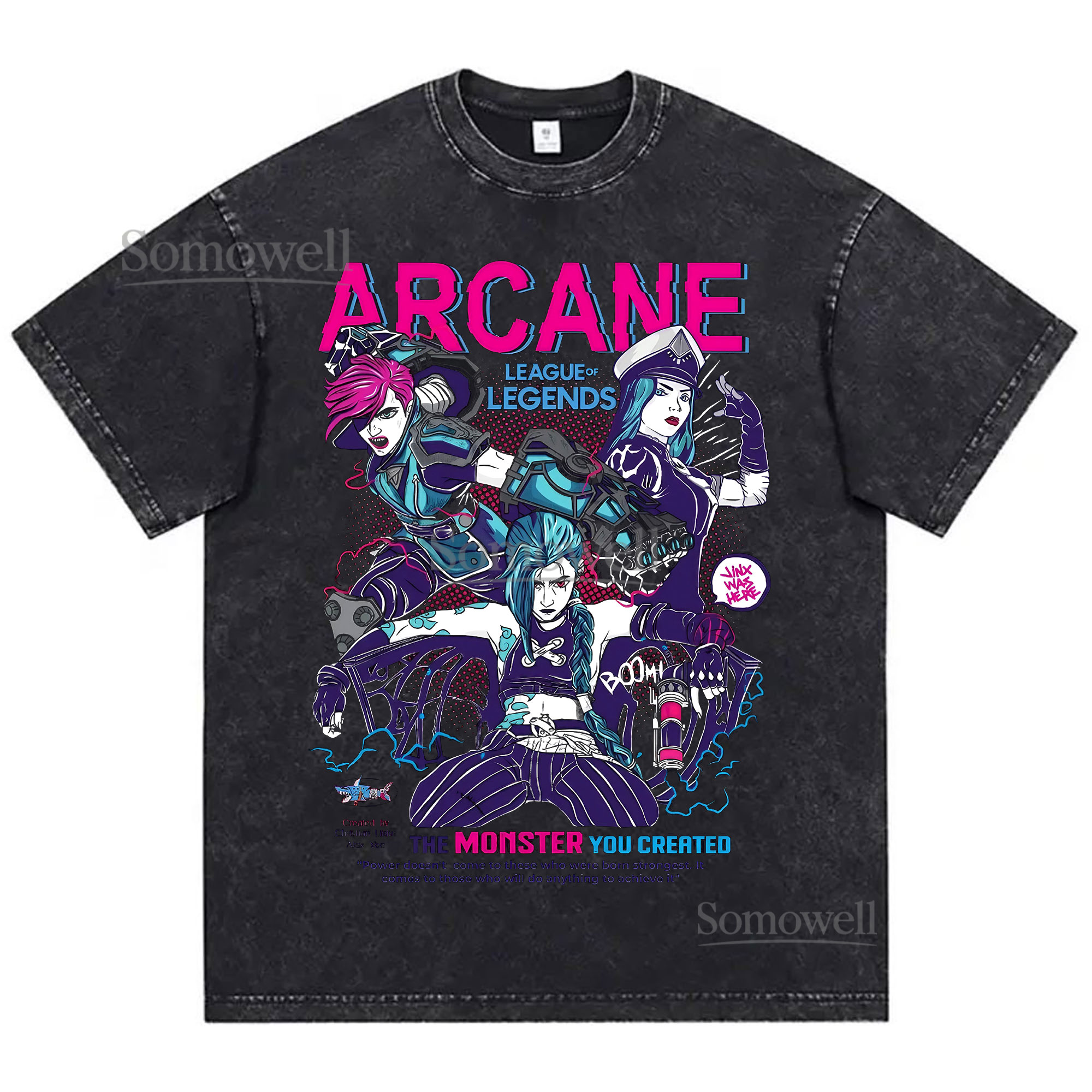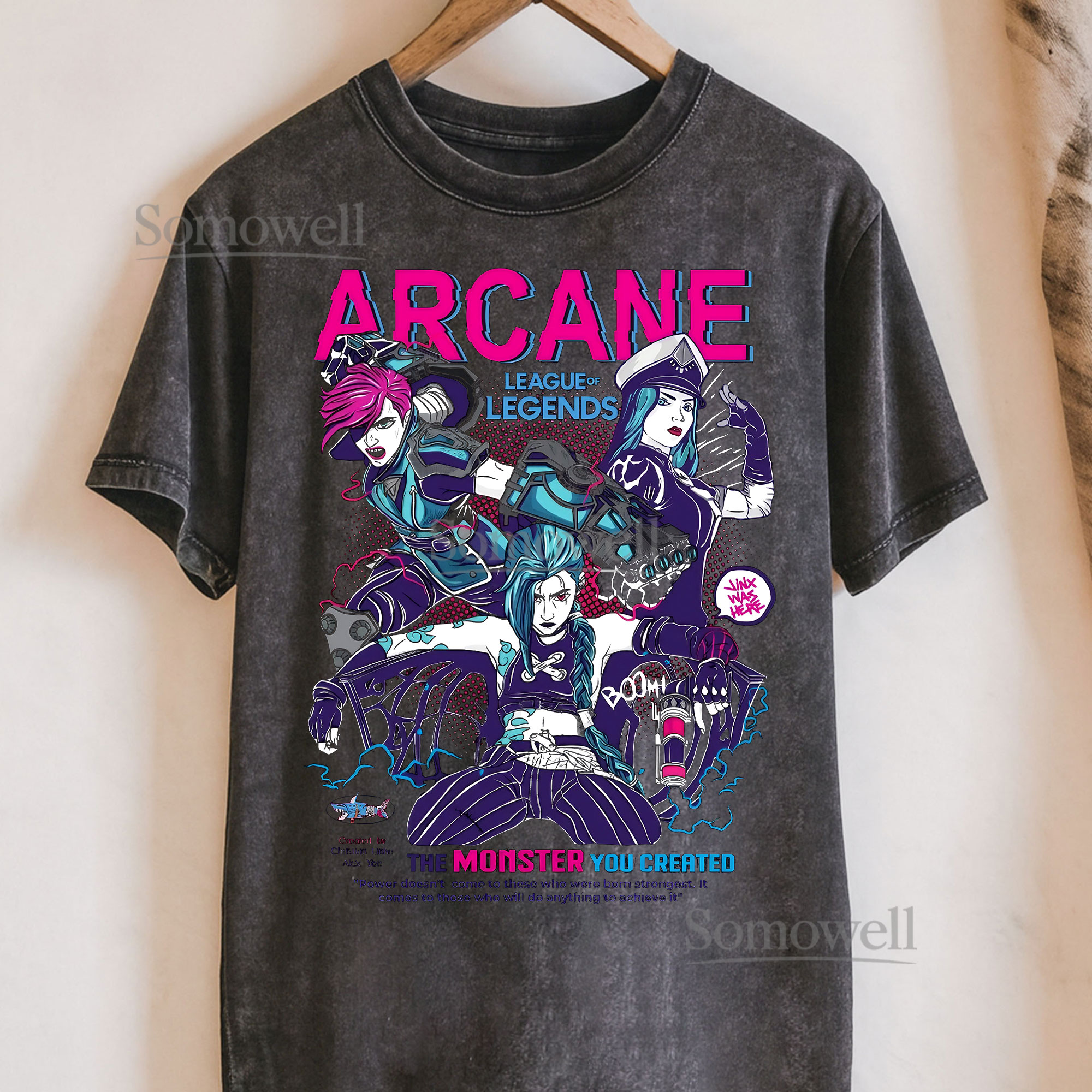 Arcane League of Legends Jinx Vi Caitlyn Graphic ,hoodie sweatshirt t shirt vintage, Stylish Character Manga Print Shirt, Unisex Casual Wear