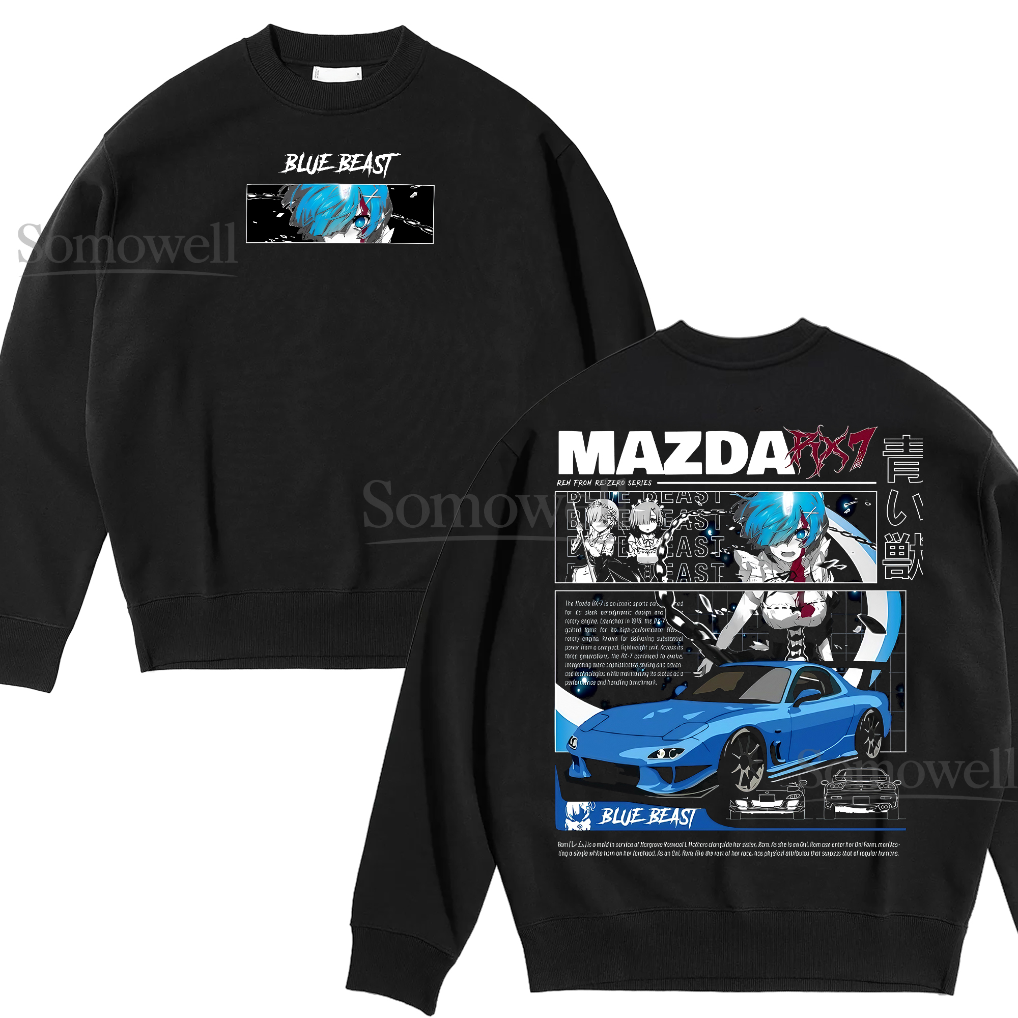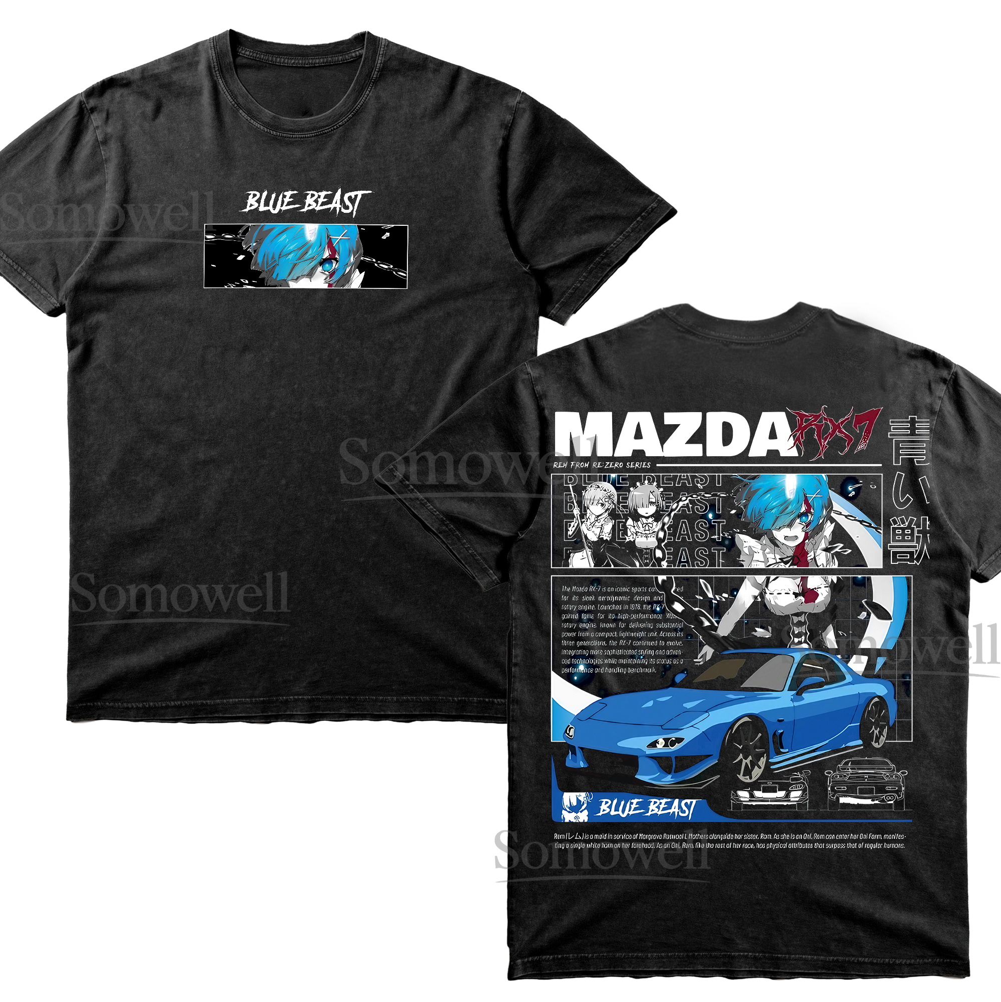 Blue Hair Anime Girl Mazda RX7 Graphic ,hoodie sweatshirt t shirt vintage Japanese Streetwear Car T Shirt