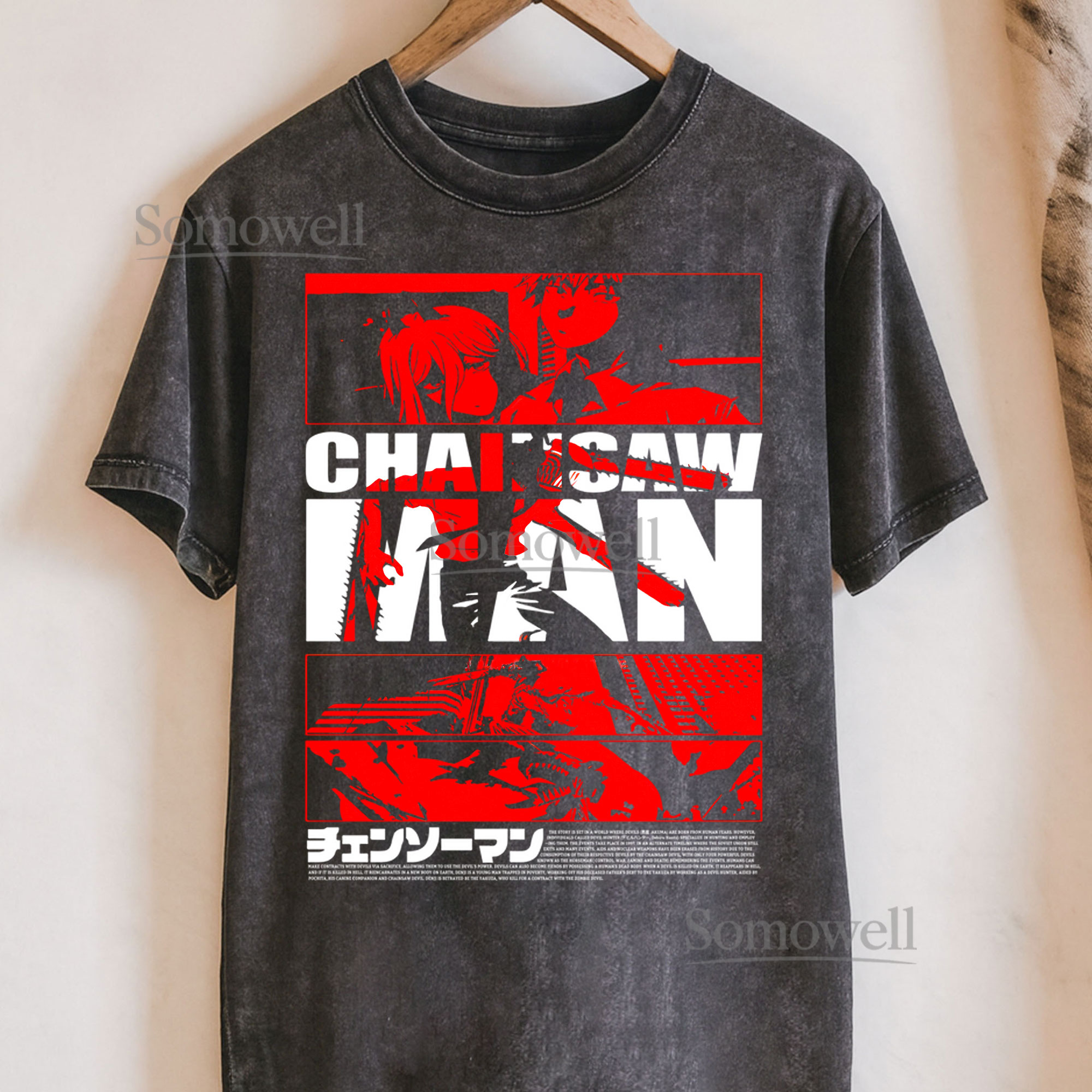 Chainsaw Man Red Black Block Manga Art Anime Graphic ,hoodie sweatshirt t shirt vintage Japanese Streetwear T Shirt