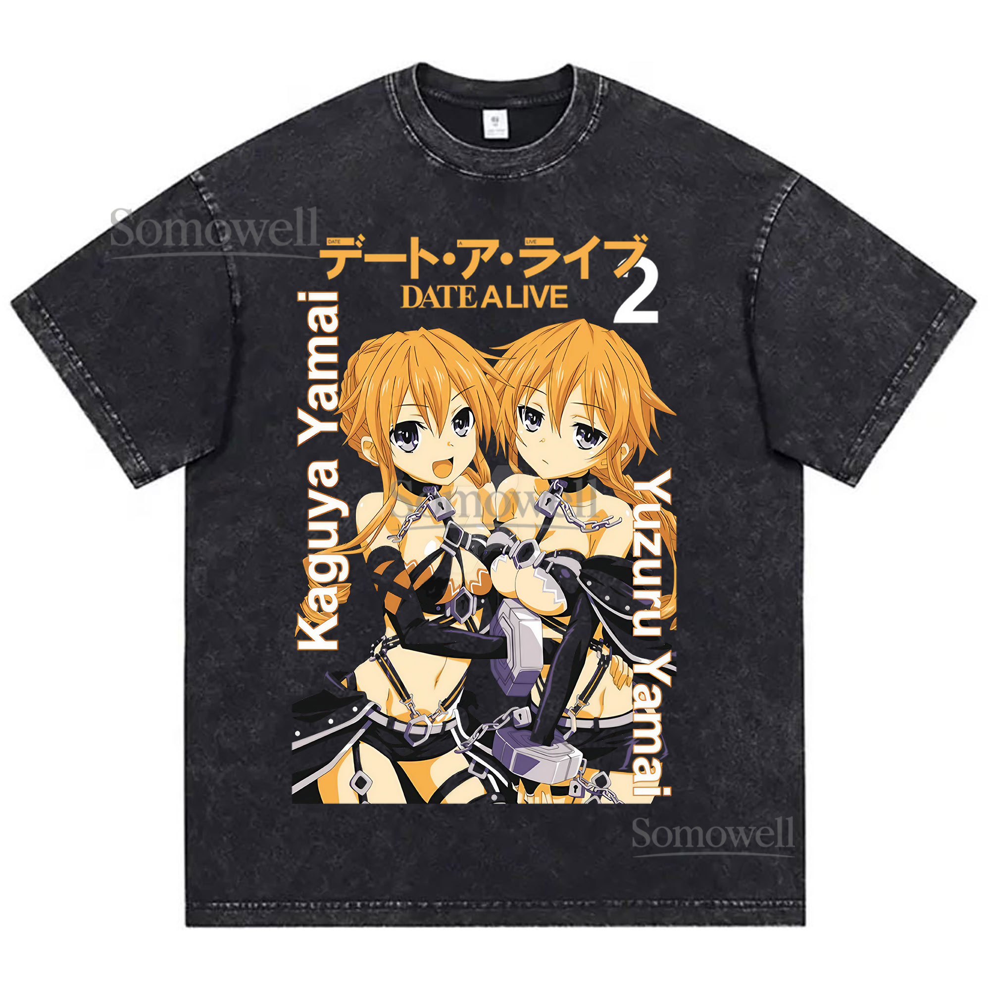 Date A Live Kaguya and Yuzuru Yamai Twin Anime Girl Graphic ,hoodie sweatshirt t shirt vintage Japanese Manga T Shirt