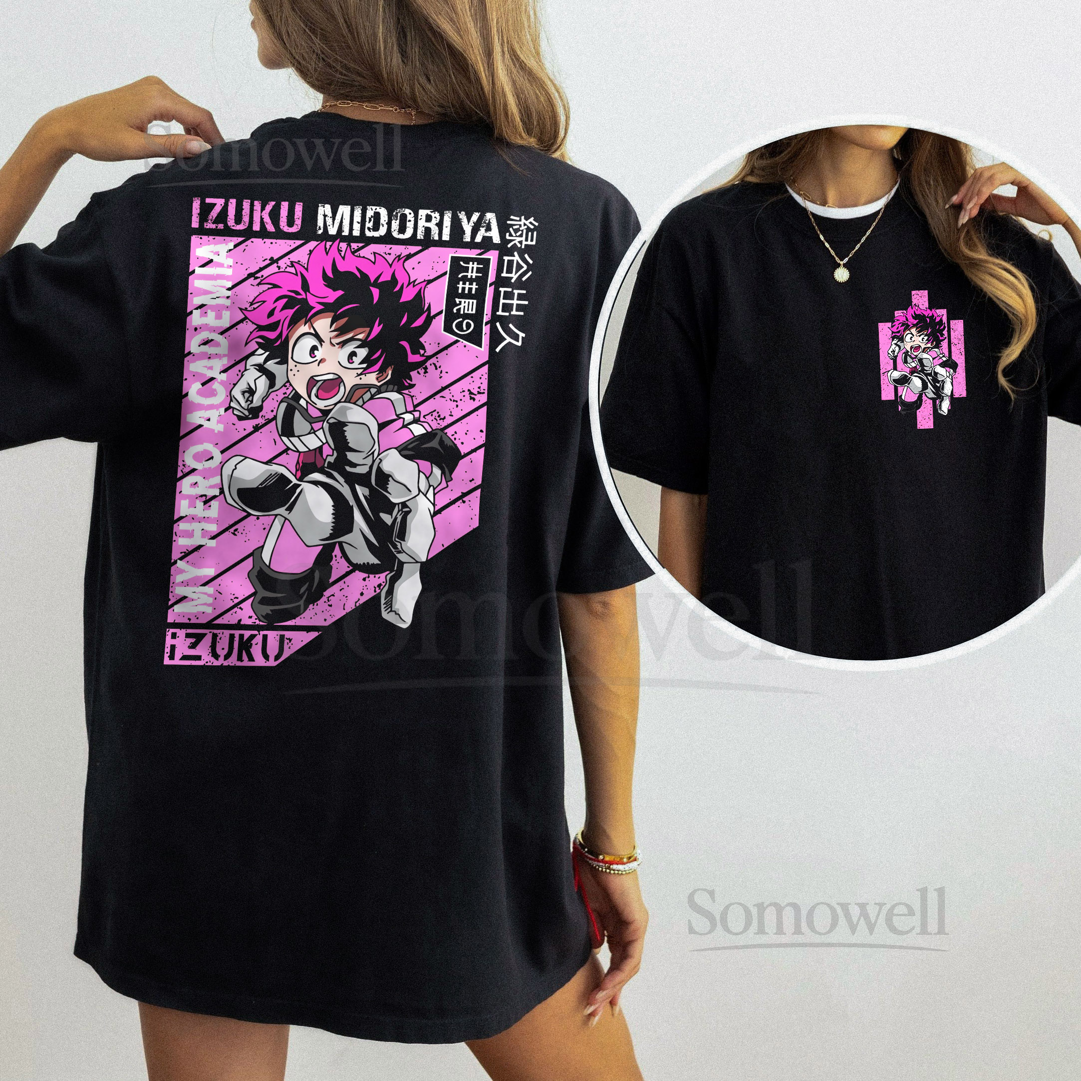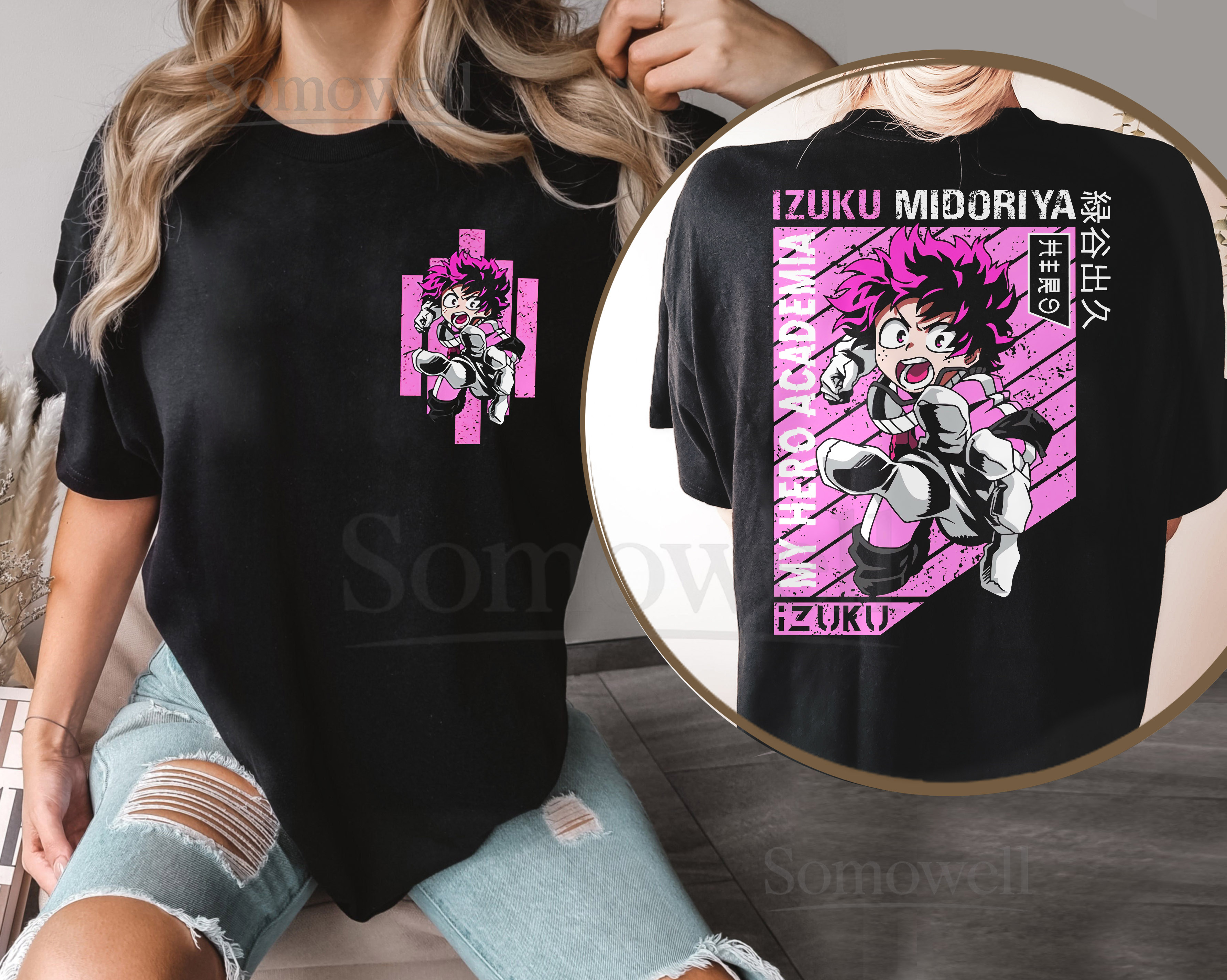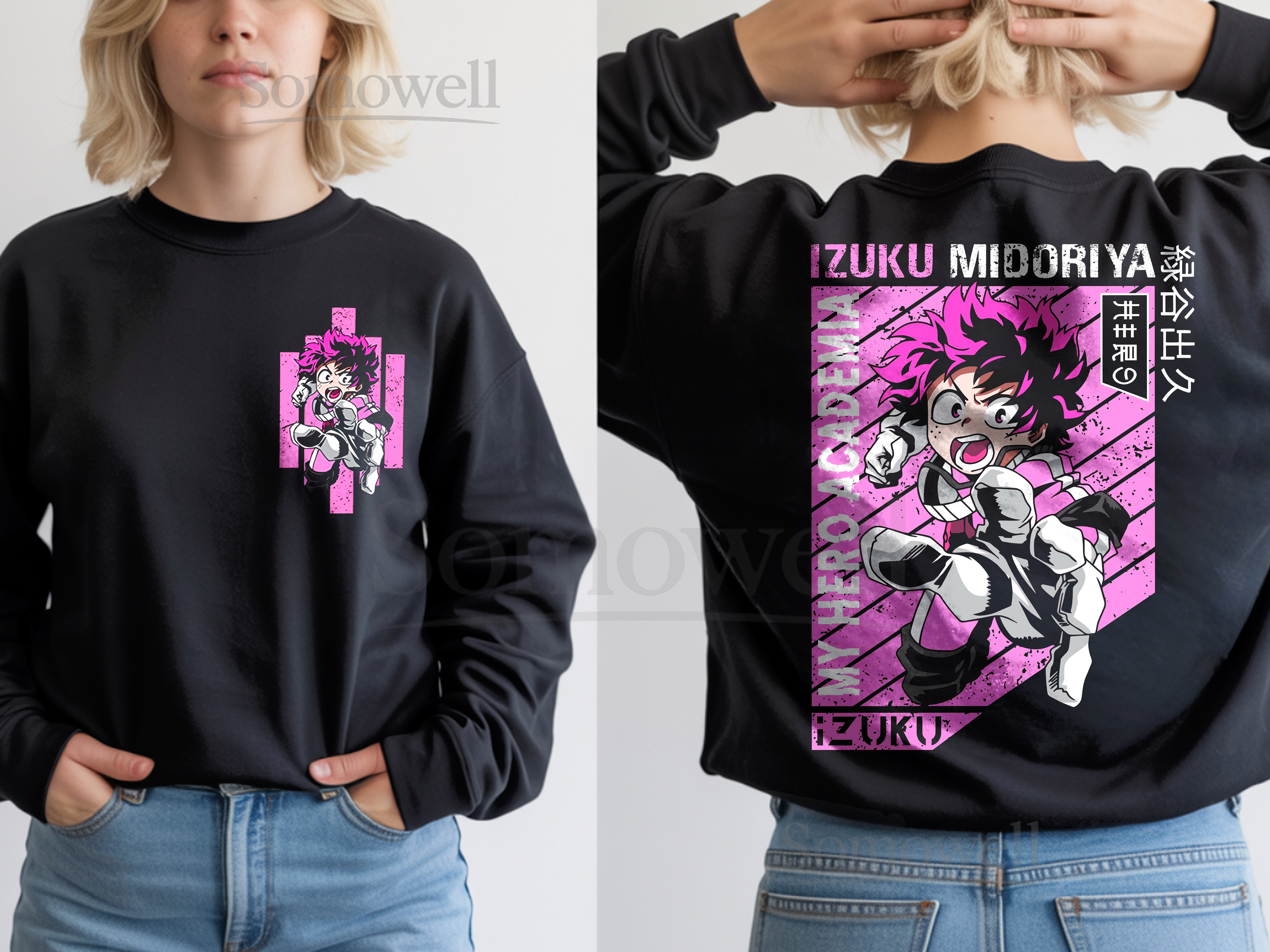 Izuku Midoriya Deku My Hero Academia Anime Black Sweatshirt Pink