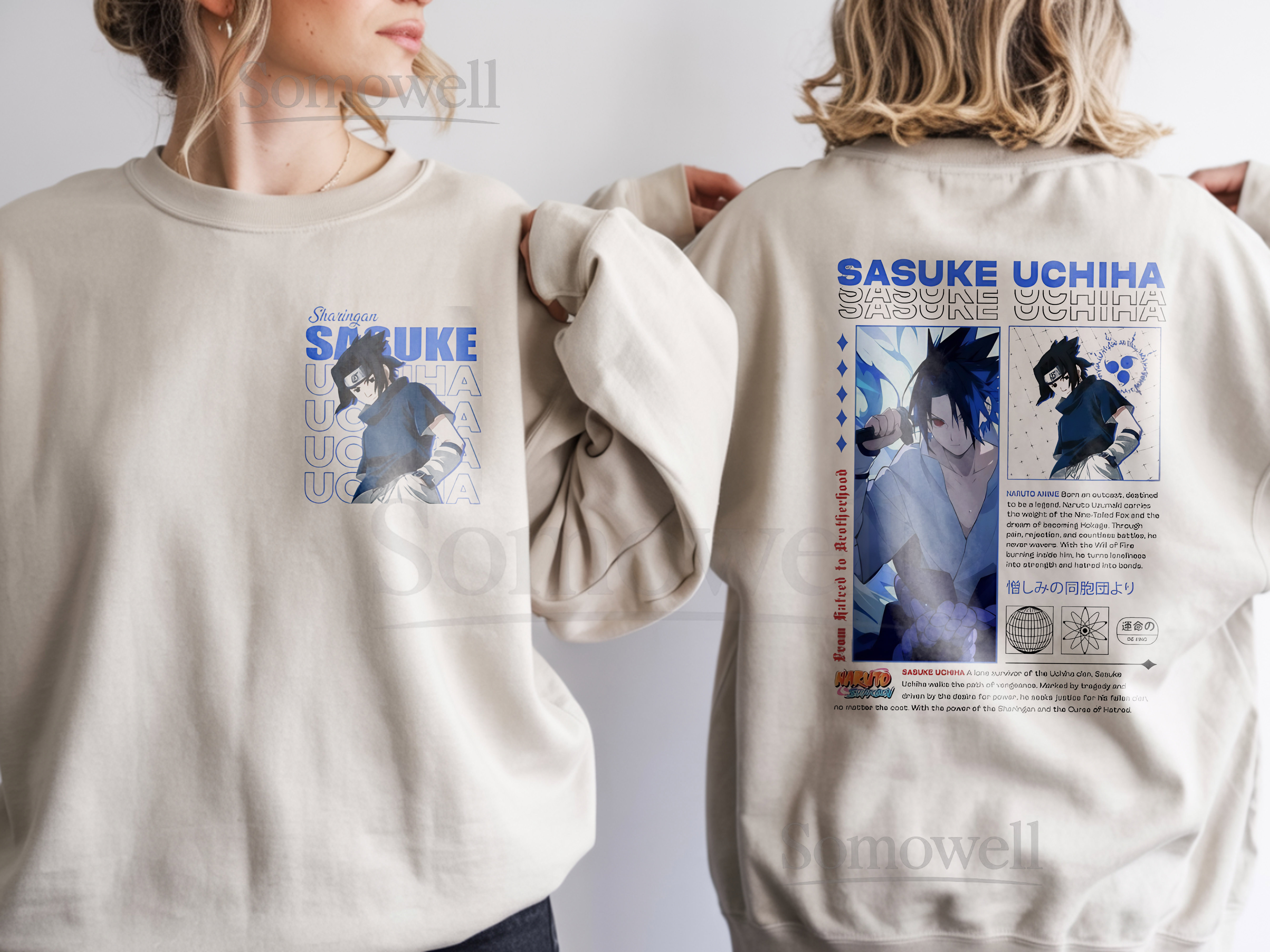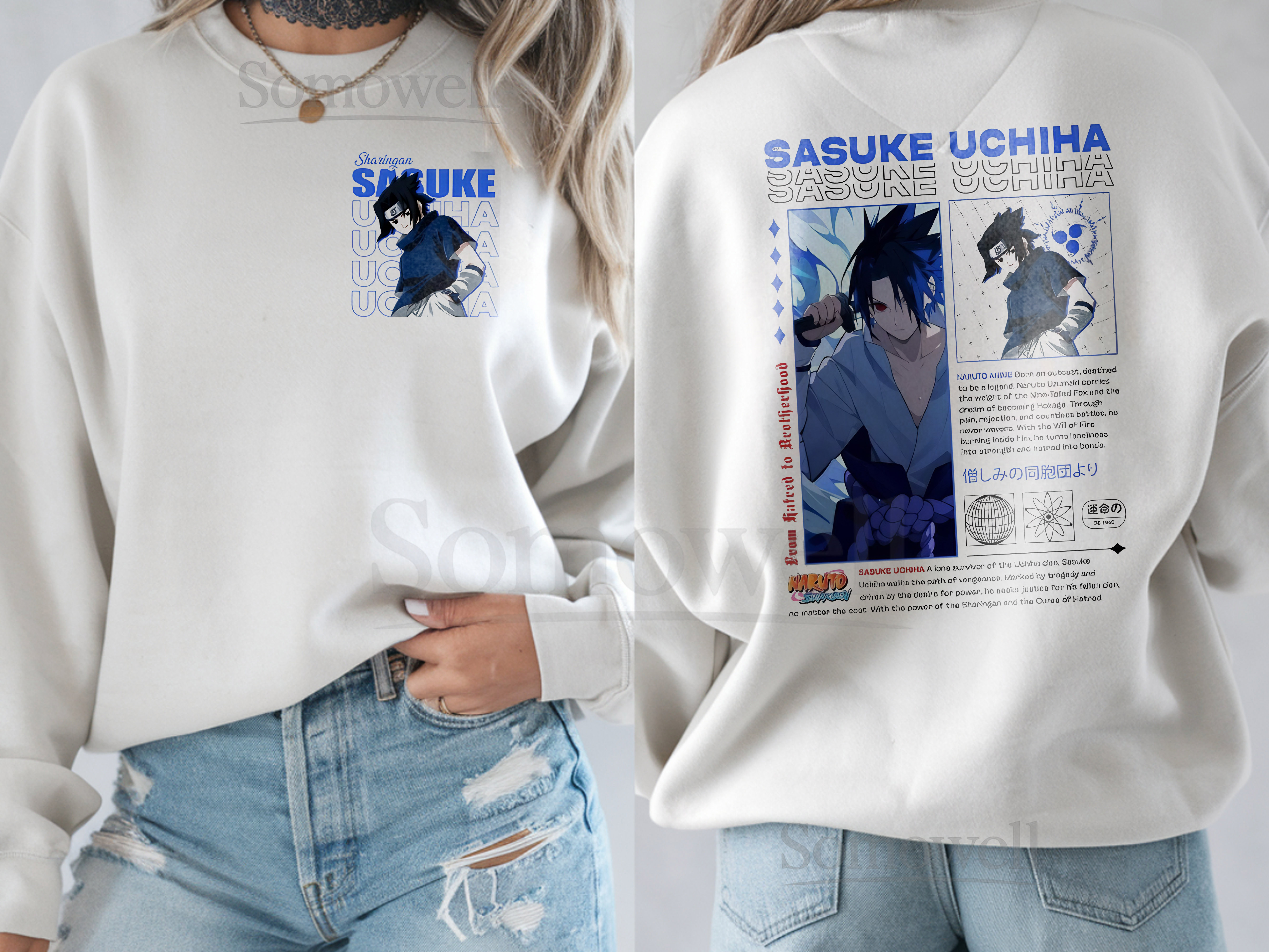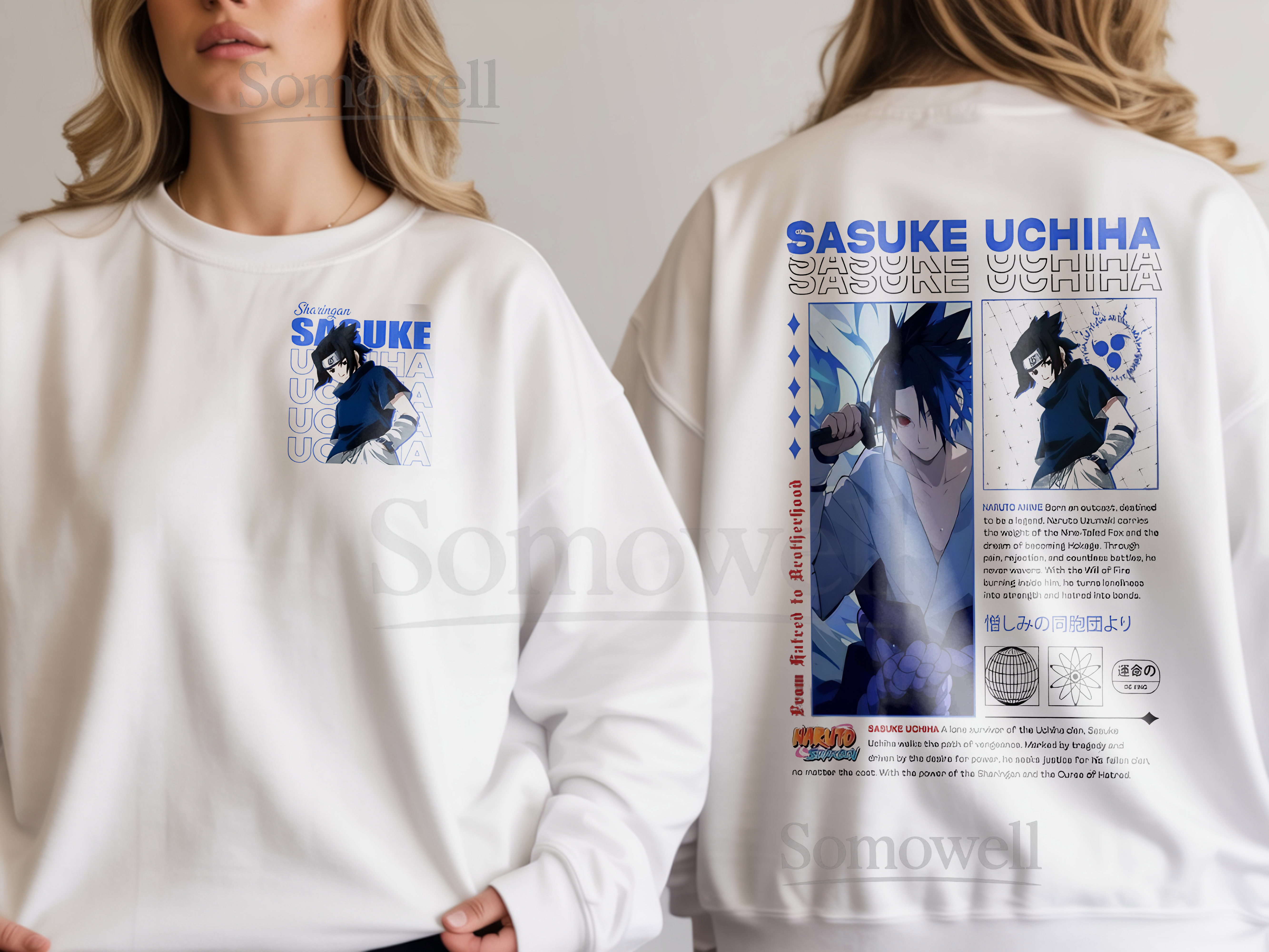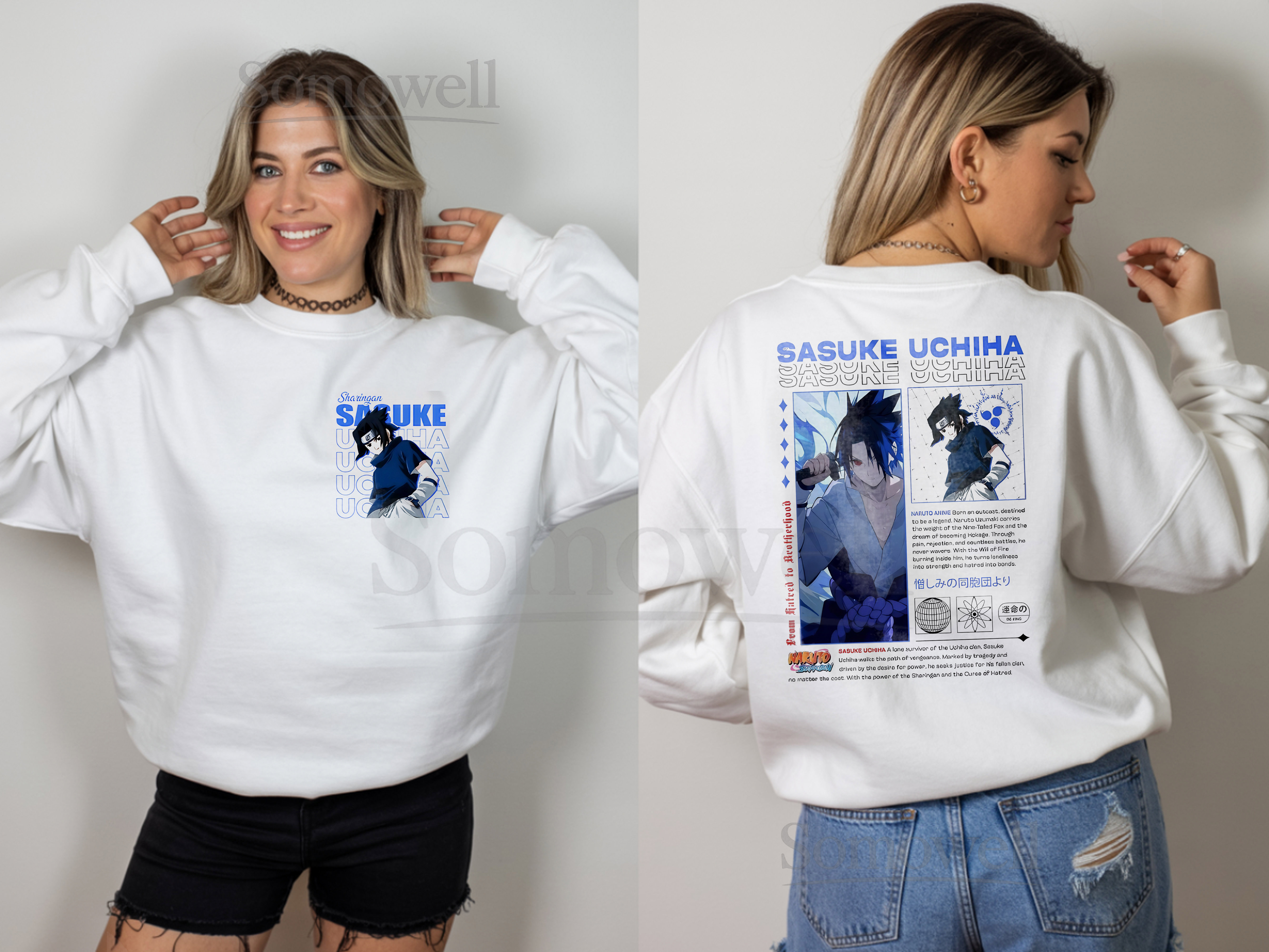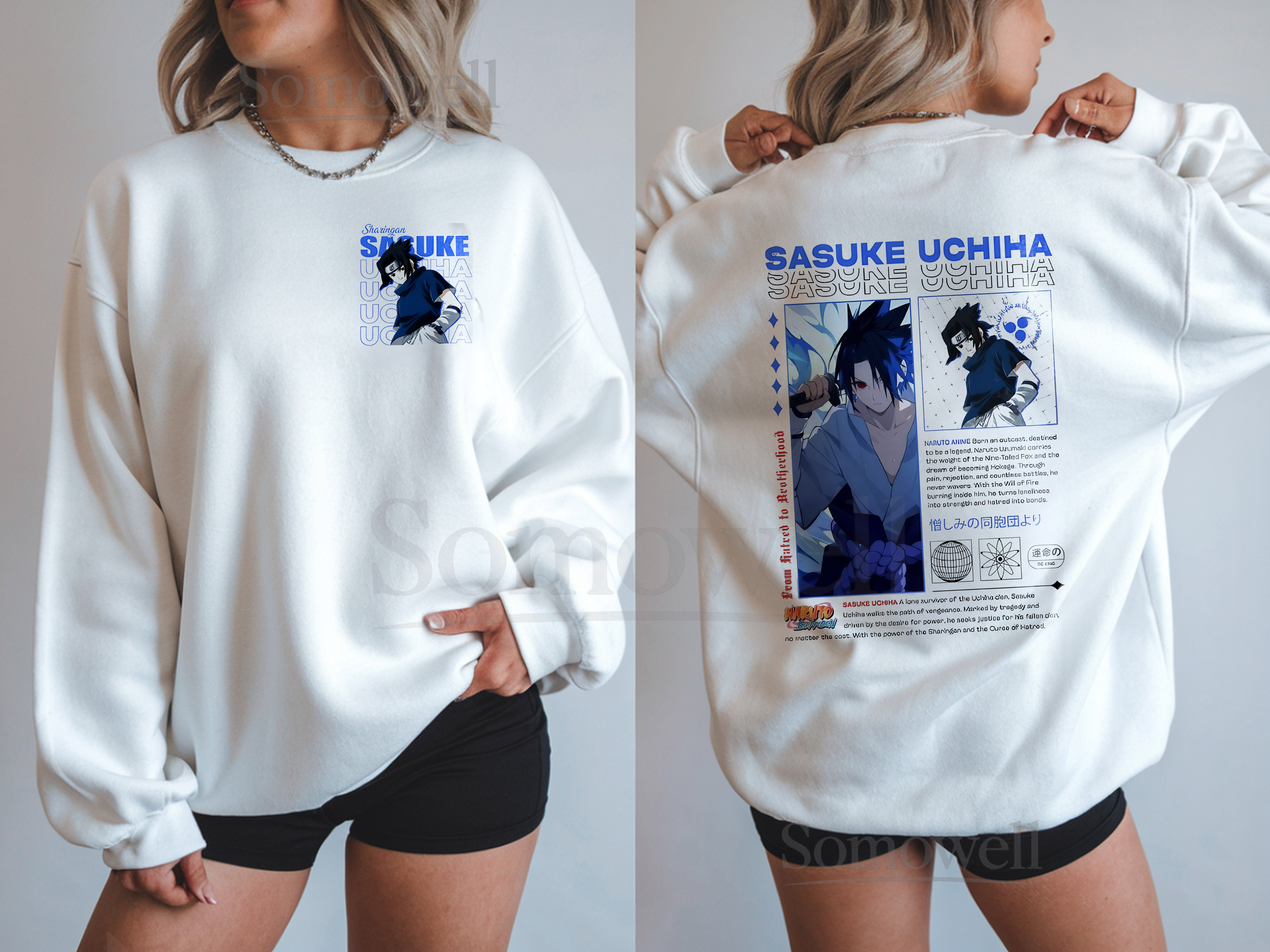 Sasuke Uchiha Naruto Shippuden Anime White Crewneck Sweatshirt