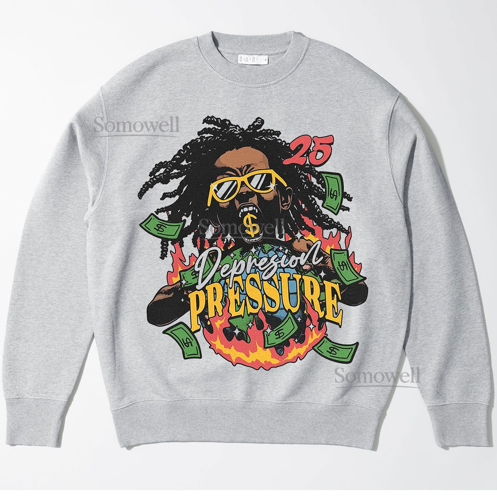 Depression Pressure Fire Flames Money Graphic ,hoodie sweatshirt t shirt vintage Urban Streetwear T Shirt
