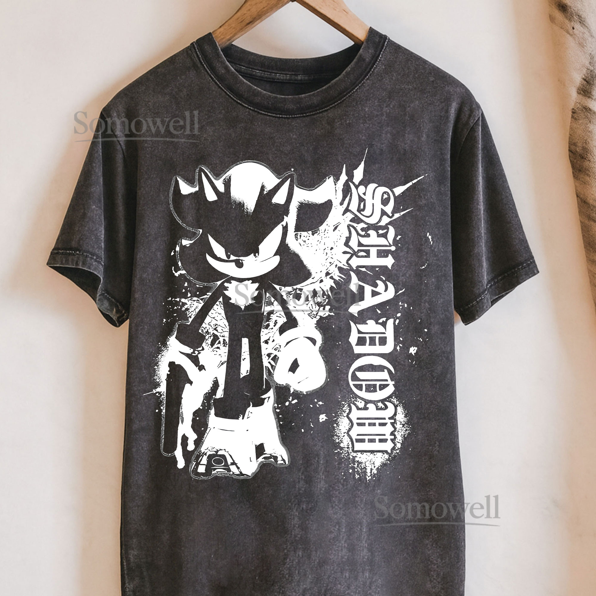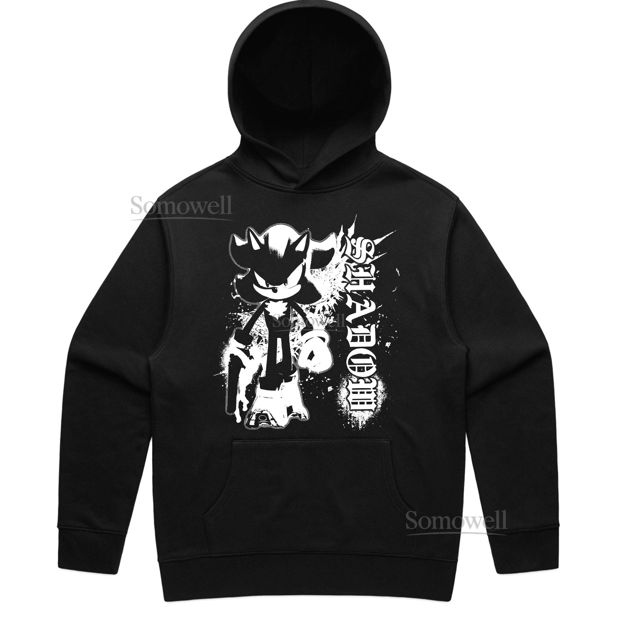 Shadow the Hedgehog Japanese Calligraphy Black White Graphic ,hoodie sweatshirt t shirt vintage Anime Game T Shirt