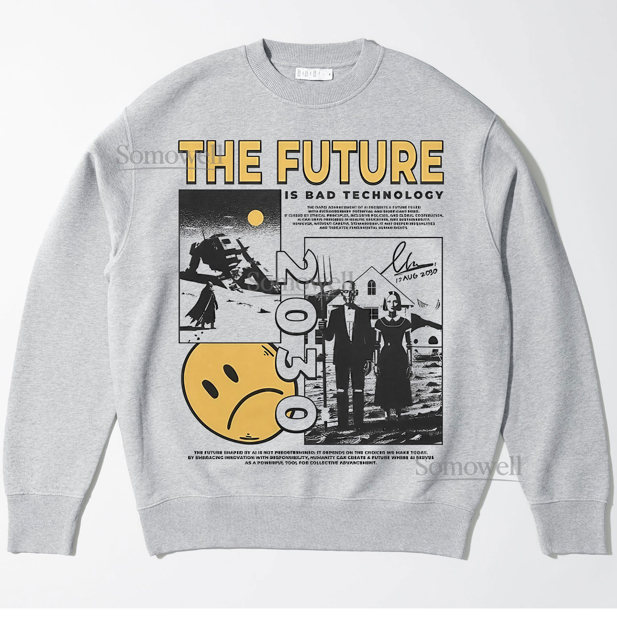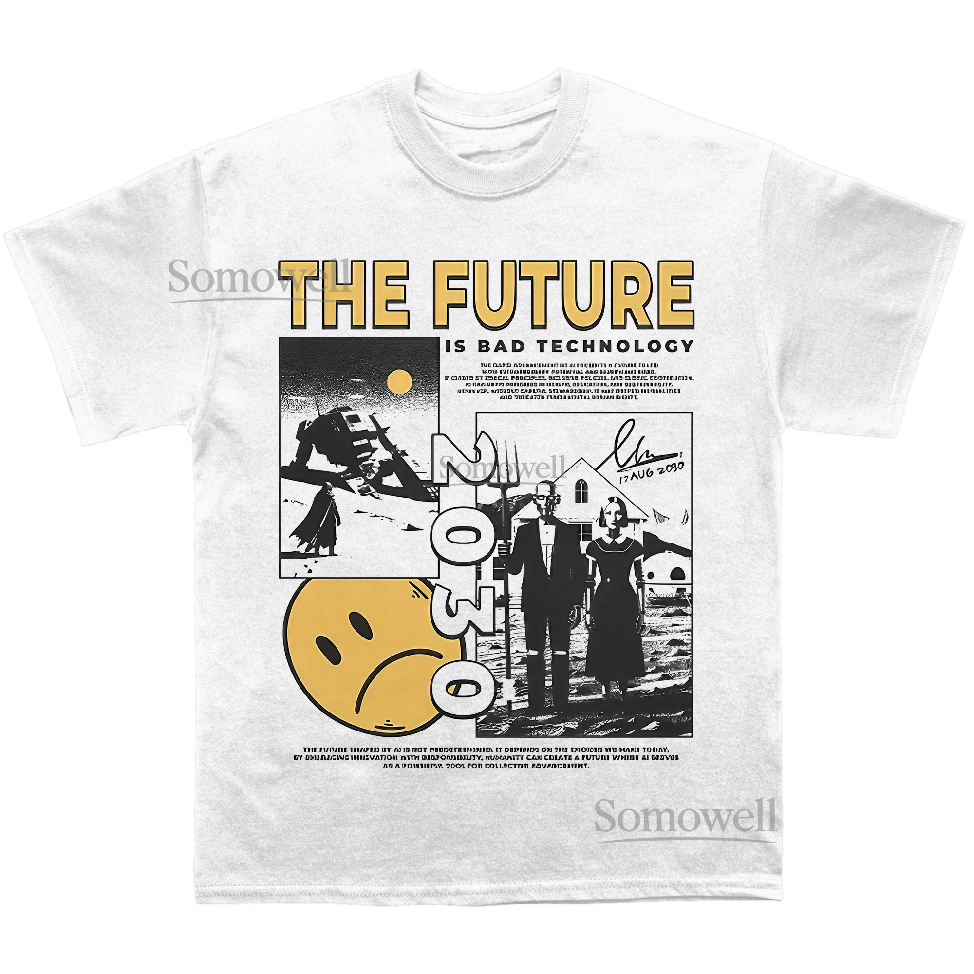 The Future is Bad Technology 2020 Sad Face Graphic ,hoodie sweatshirt t shirt vintage Urban Streetwear T Shirt