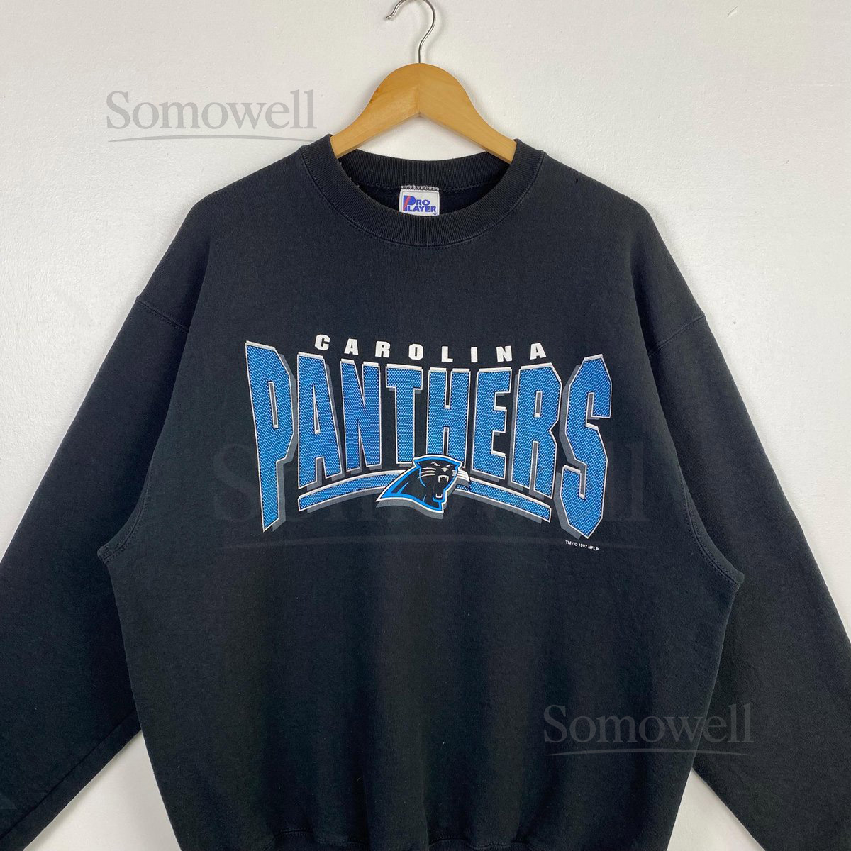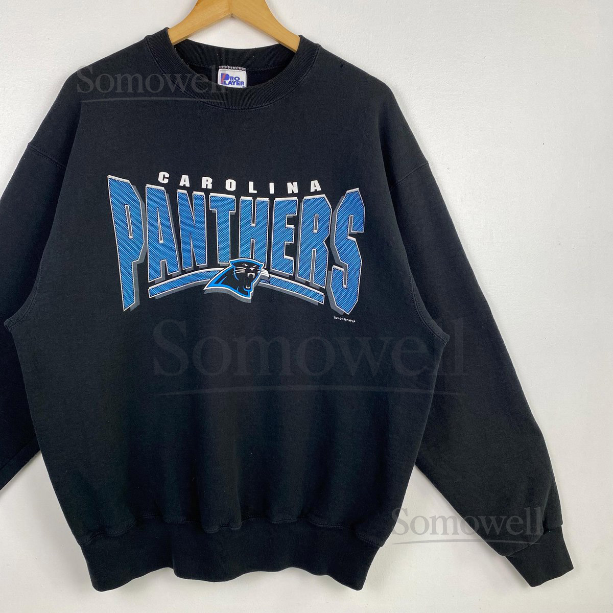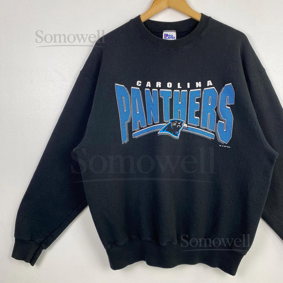 90s NFL Carolina Panthers Crewneck Sweatshirt Print Logo Black Color Mens XL_13