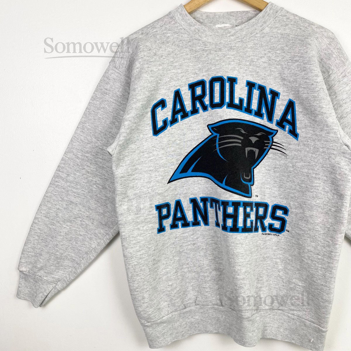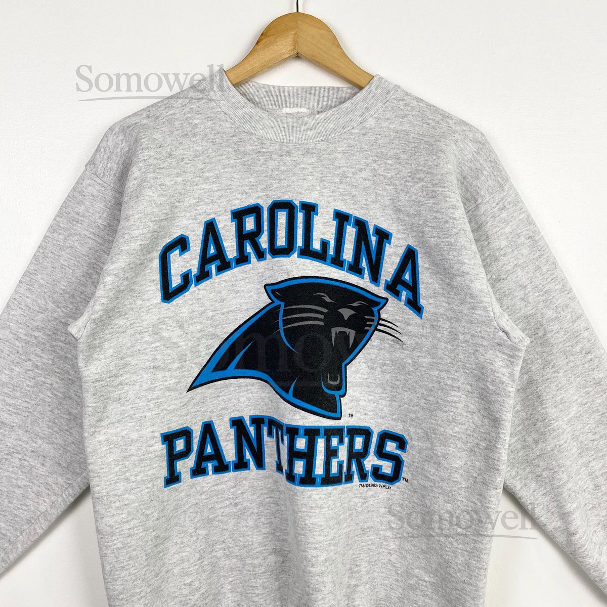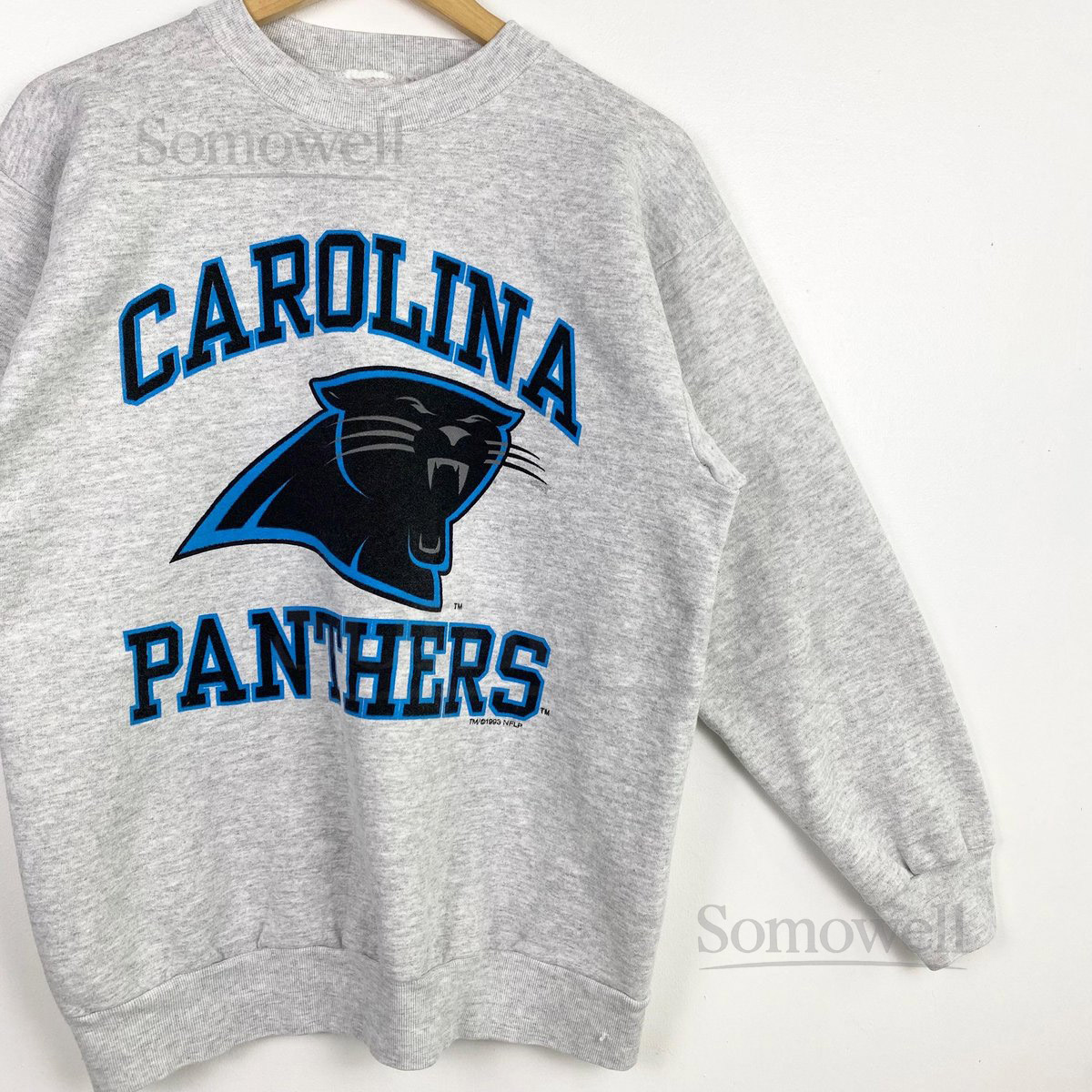 90s NFL Carolina Panthers Crewneck Sweatshirt Print Logo Grey Color Mens M_15