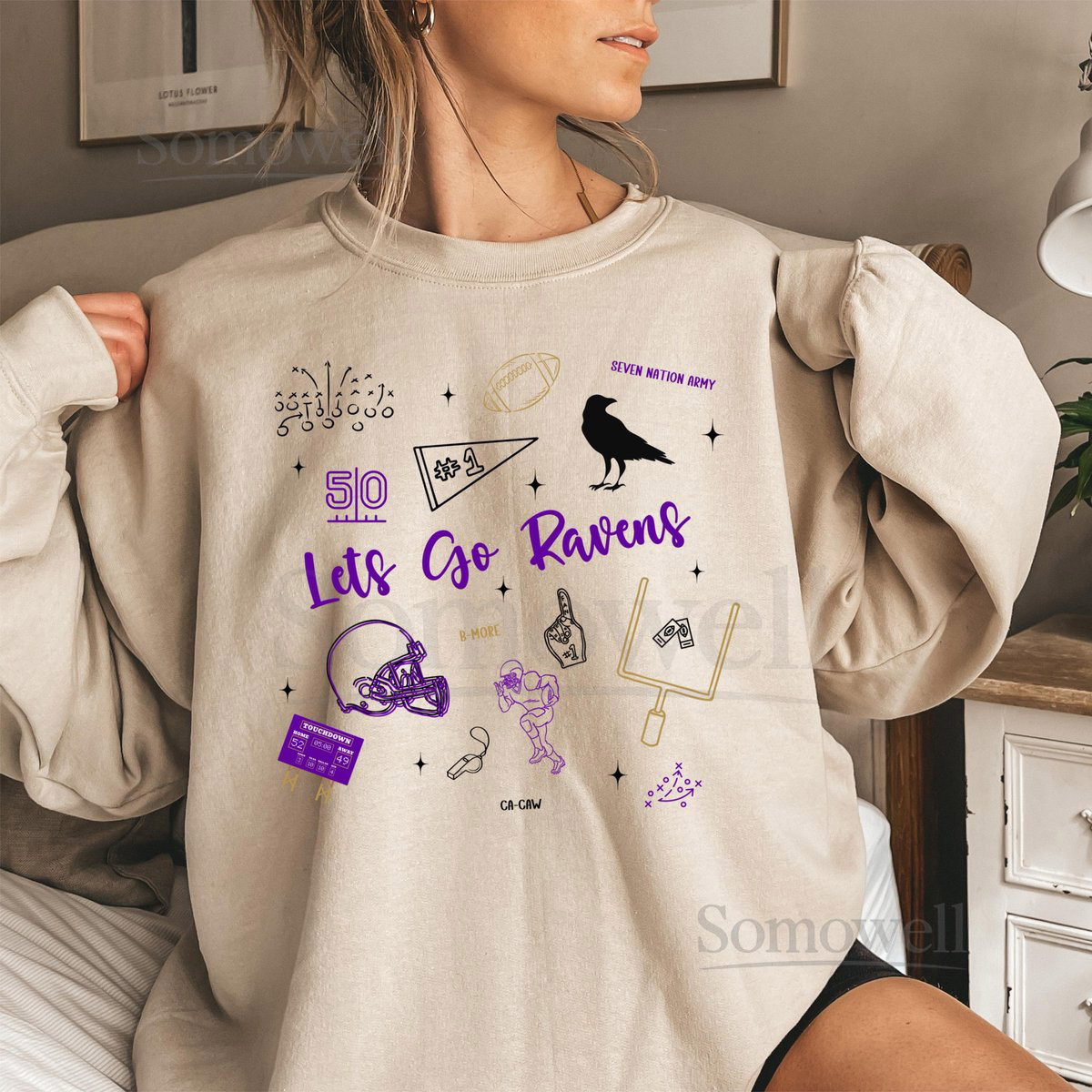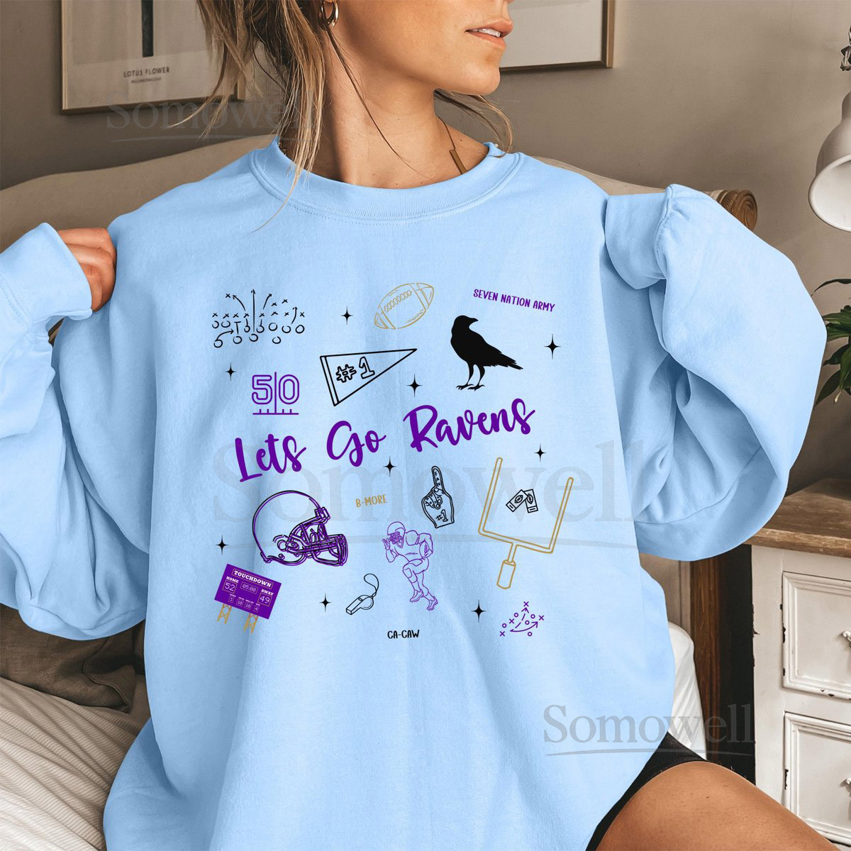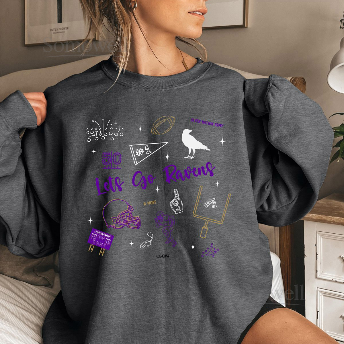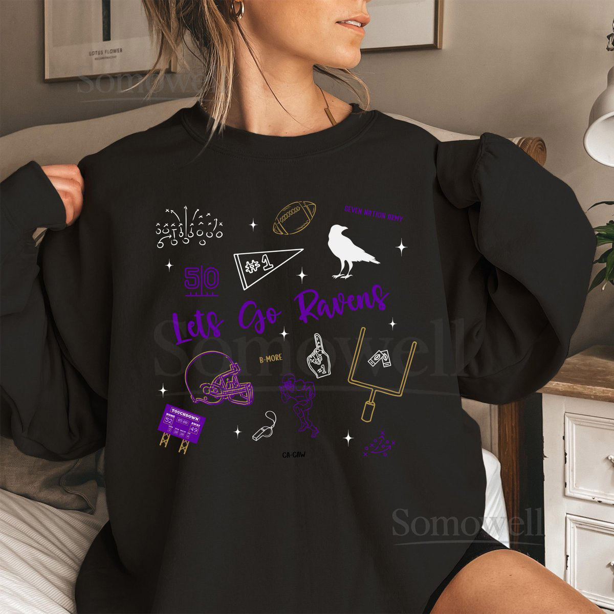 Baltimore Football Doodle Sweatshirt Baltimore Ravens Lets Go Ravens Shirt NFL Sweatshirt Ravens Sweatshirt Game Day Shirt Super Bowl_105