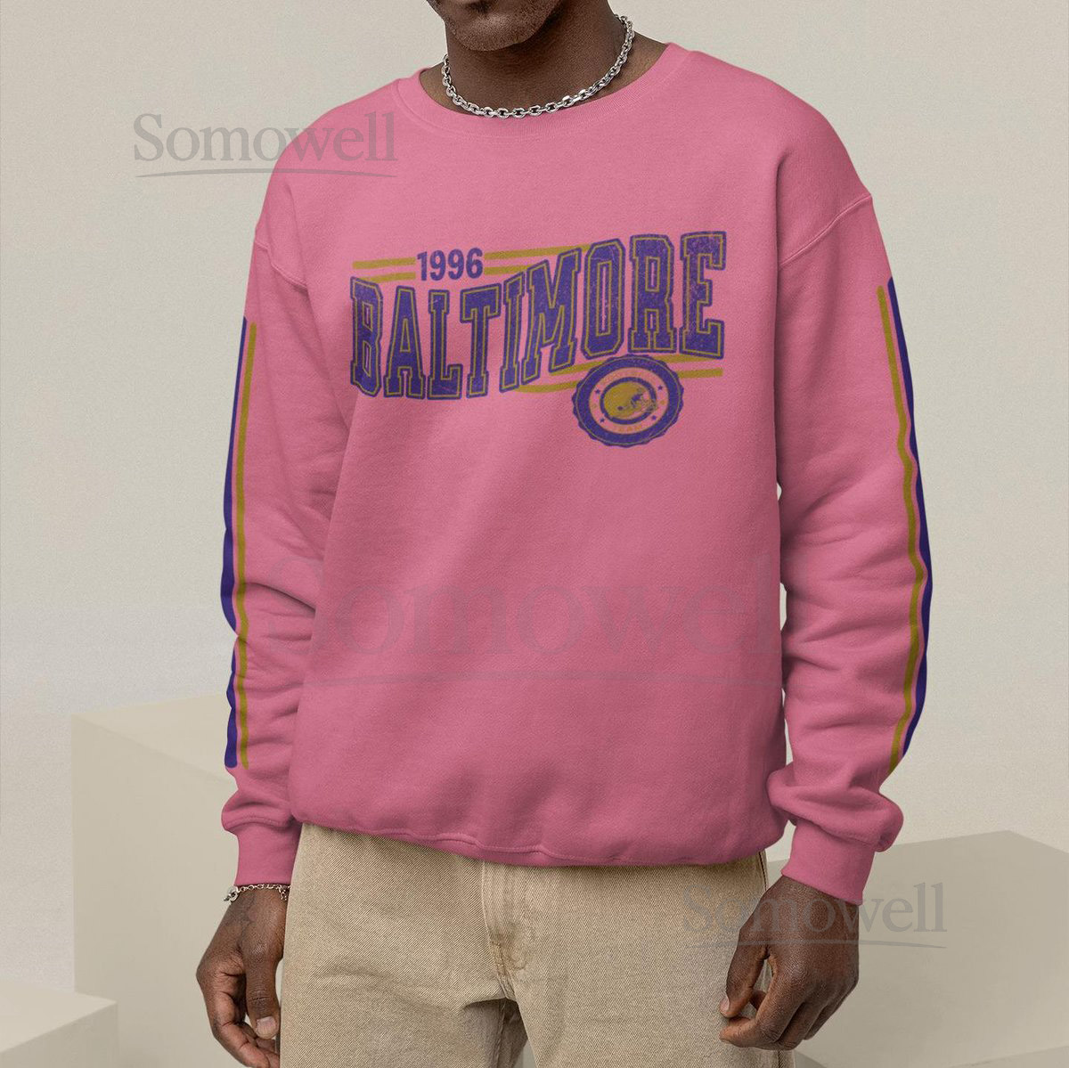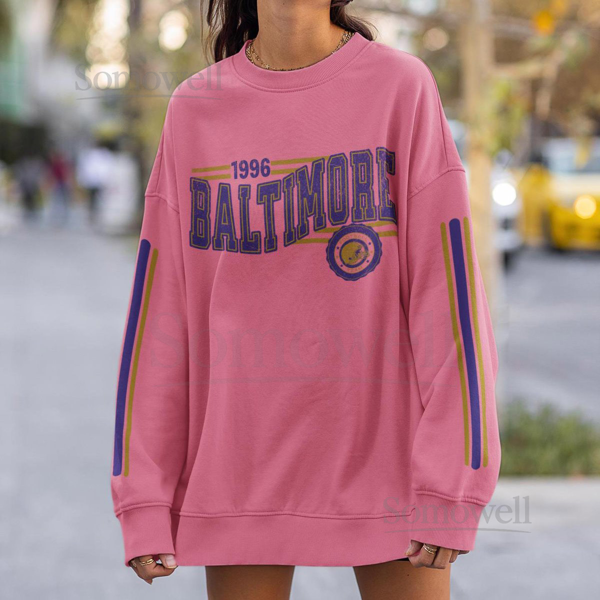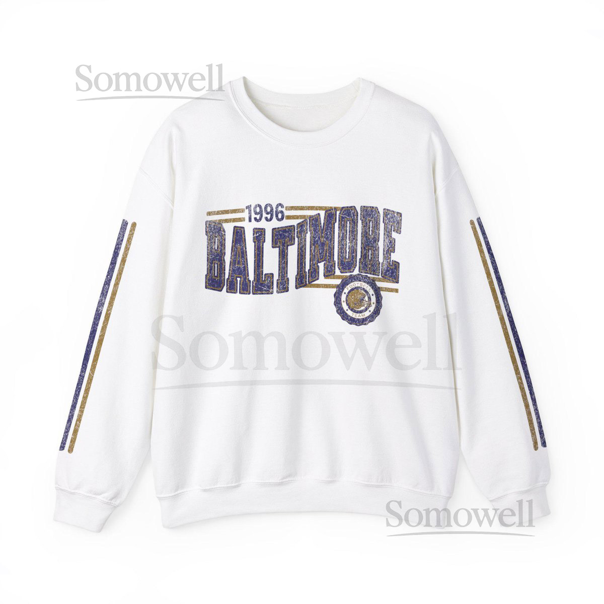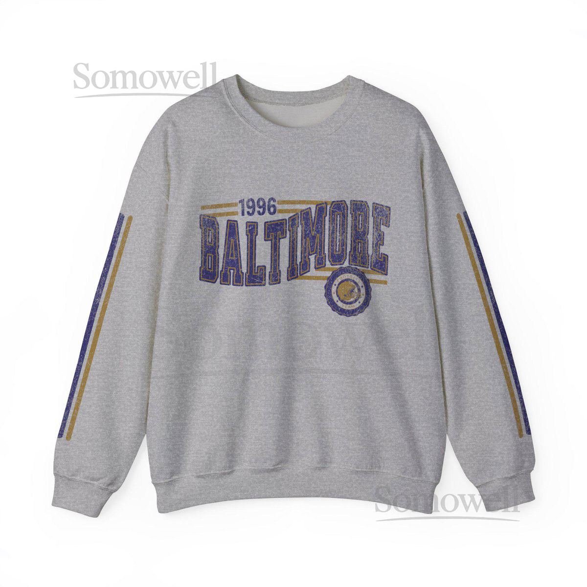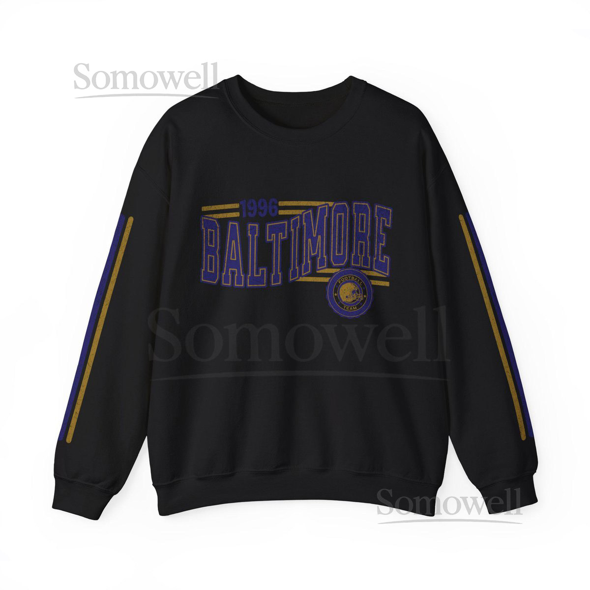 Baltimore Football Retro Crewneck Sweatshirt Raven Retro Stripe Sleeve Sweatshirt Baltimore Unisex Shirt Game Day Shirt Raven Fan Gift_112