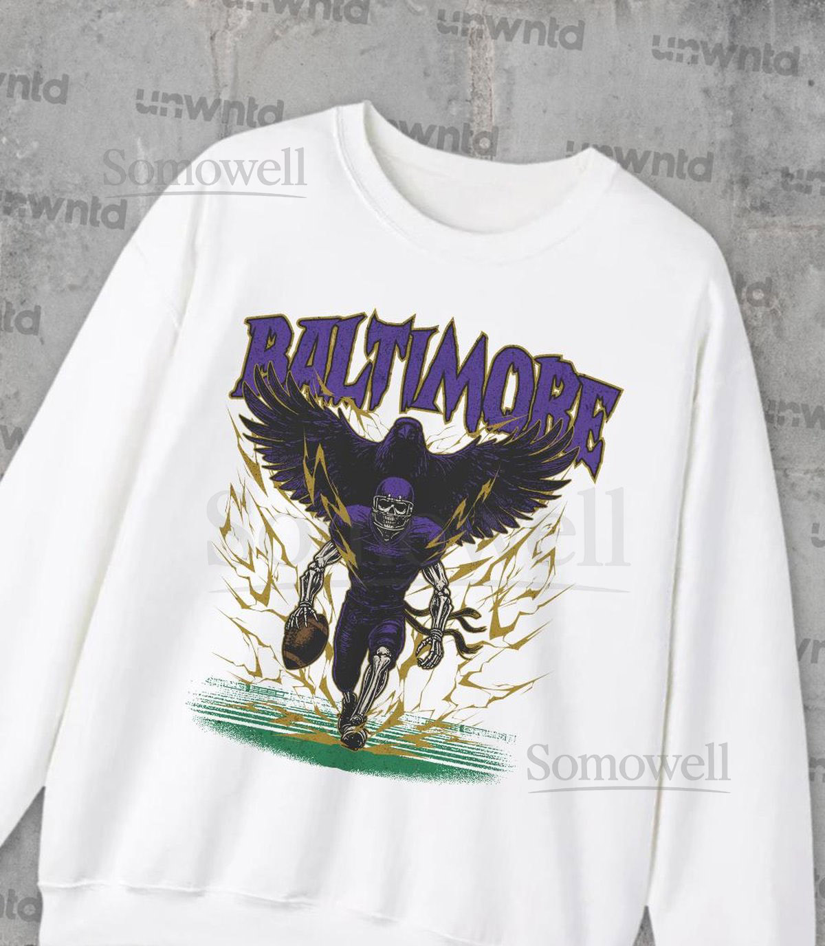 Baltimore Football Sweatshirt – Graphic Crewnecks – Skeleton – Gift Shirt – Bootleg Shirt – Vintage – Skeleton Football Crewnecks – Ravens_118