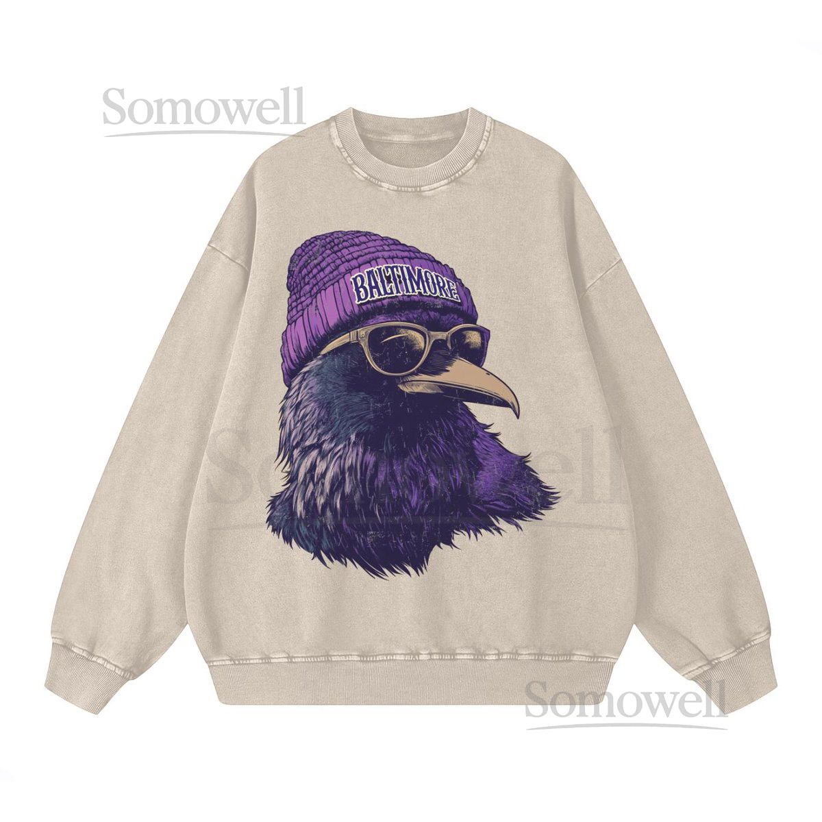 Baltimore Spirit Animal Sweatshirt Acid Wash Cotton Oversized Crewneck Game Day Sweater Ravens Sweatshirt Cozy Game Day Sweater_172