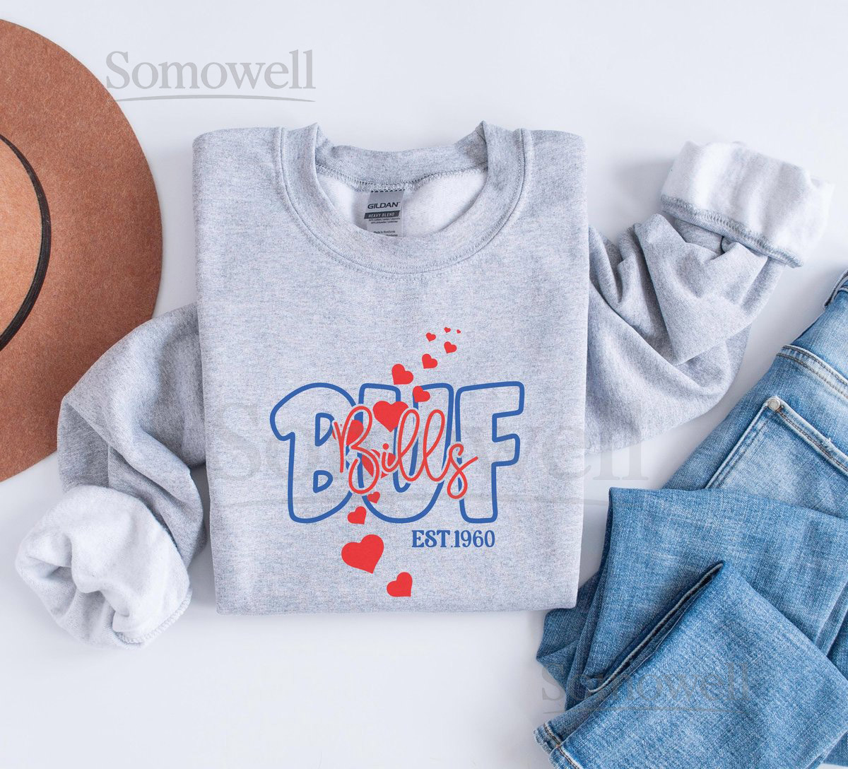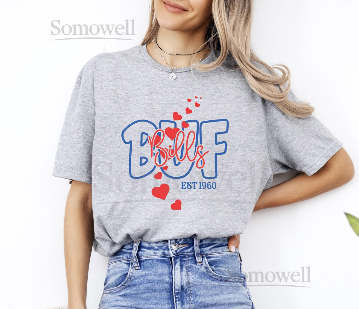 Buffalo Football Shirt Bills Game Day Fan Sweatshirt Red Blue Hearts Gift T-Shirt_283