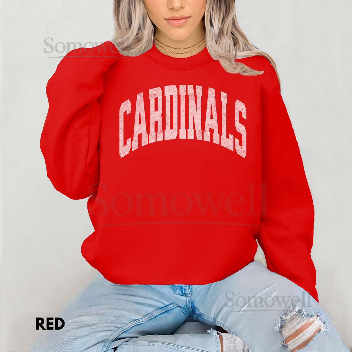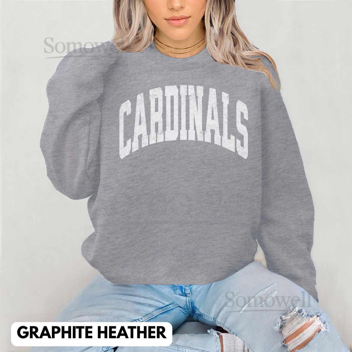Cardinals Sweatshirt Distressed Print Sweatshirt Vintage Football Crewneck_310