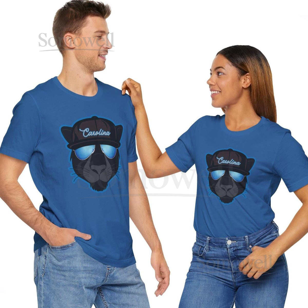 Carolina Football Fan Tee Trendy Panther With Hat Sunglasses T-Shirt_325