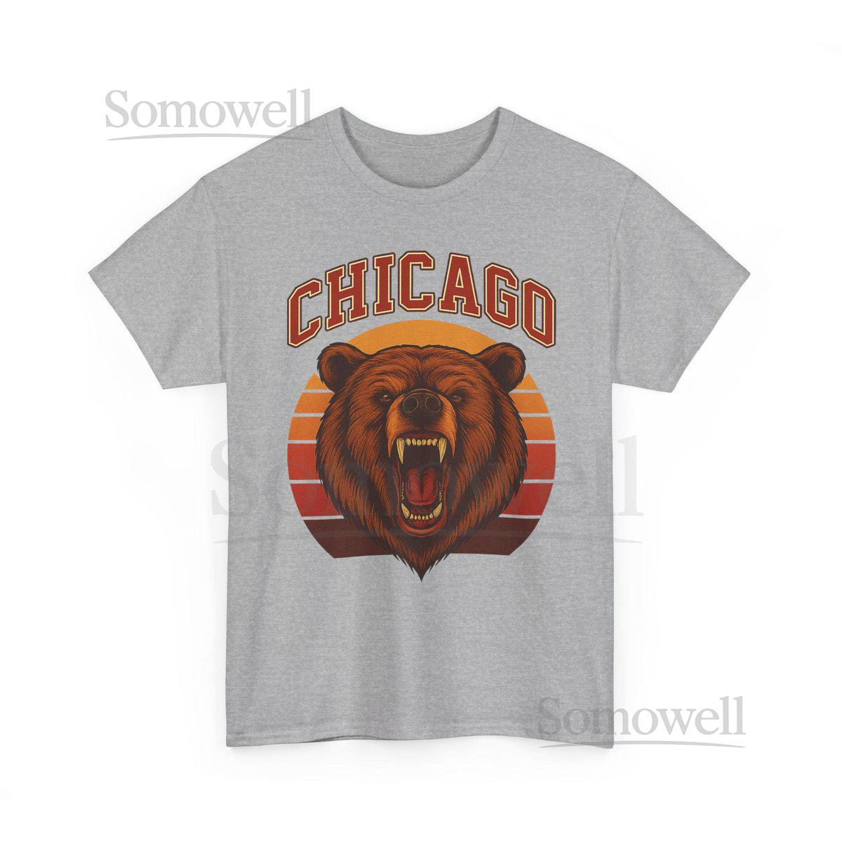 Chicago Bear Graphic Tee Unisex Heavy Cotton Tee for Sports Fans Casual Wear Gifts for Him Chicago Souvenir Shirt_424