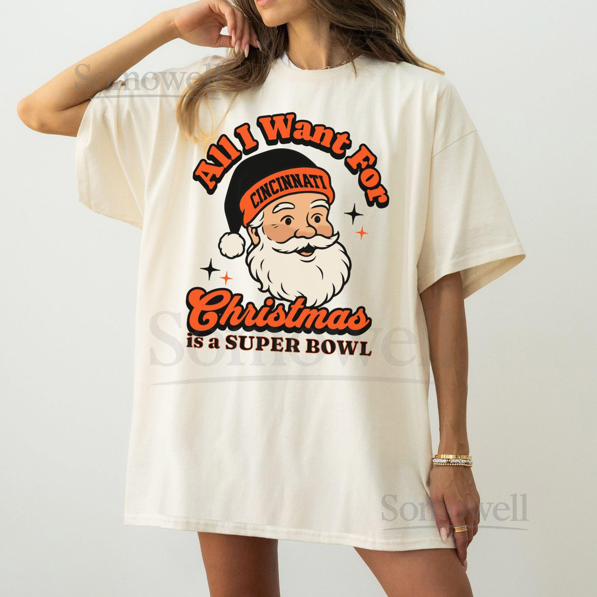 Cincinnati Football Christmas Super Bowl T-Shirt Retro Bengal Football Tee Holiday Football Fan Shirt Festive Sports Apparel Santa Shirt_519