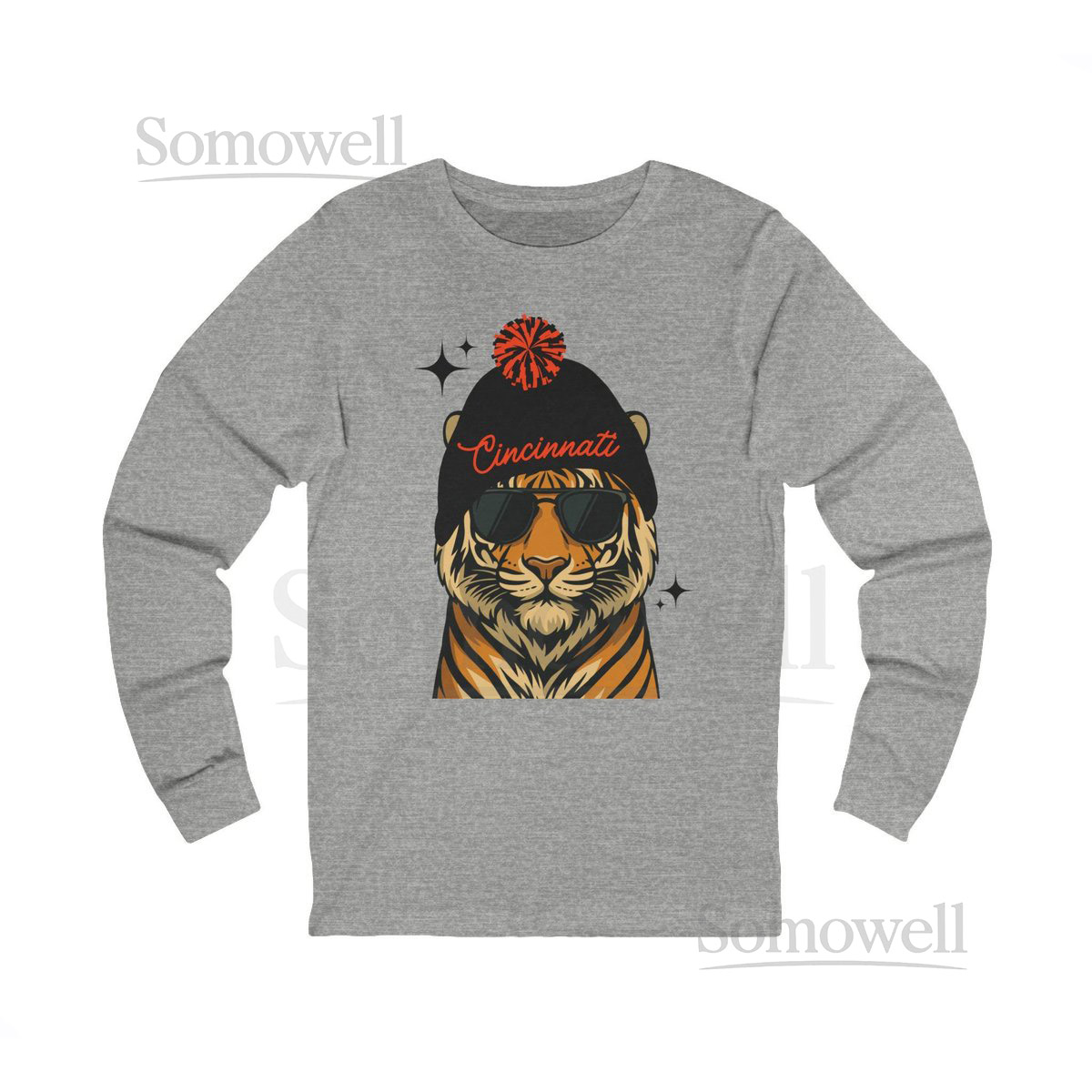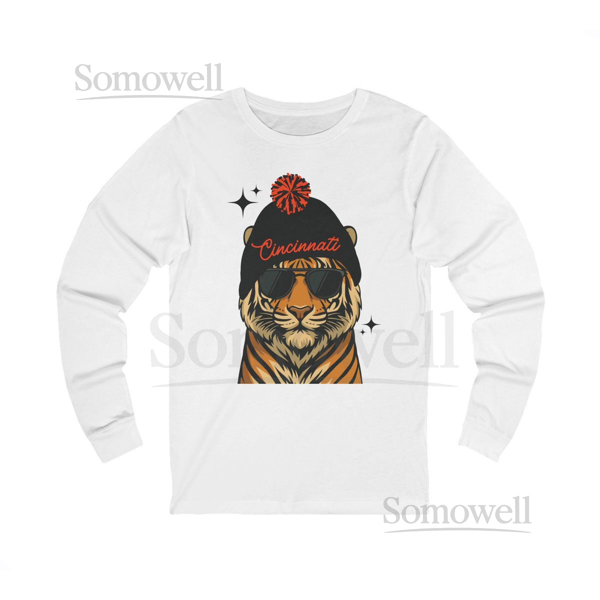 Cincinnati Football Fan Shirt Long Sleeve Bengal Tiger Graphic Tee_526