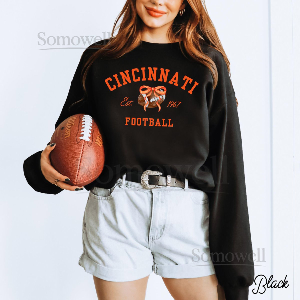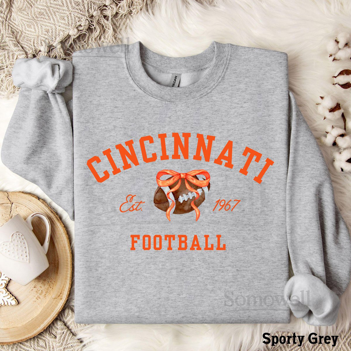 Cincinnati Football Sweatshirt Cincy Football Fan Gift Bengal Football Game Day Crewneck GD18000 Tailgate Outfit Unisex Sweatshirt_542