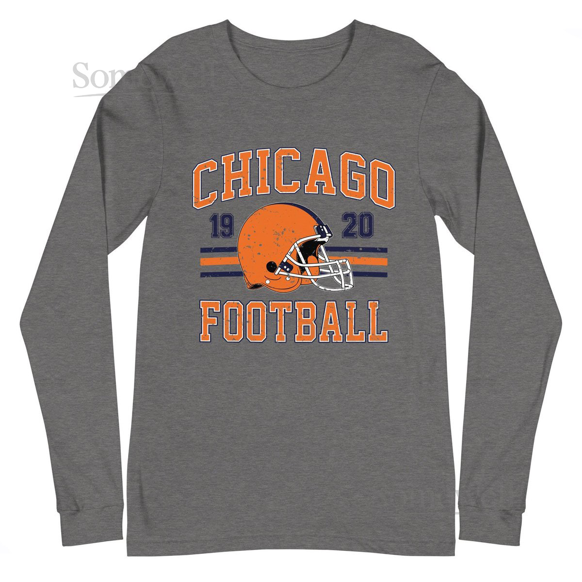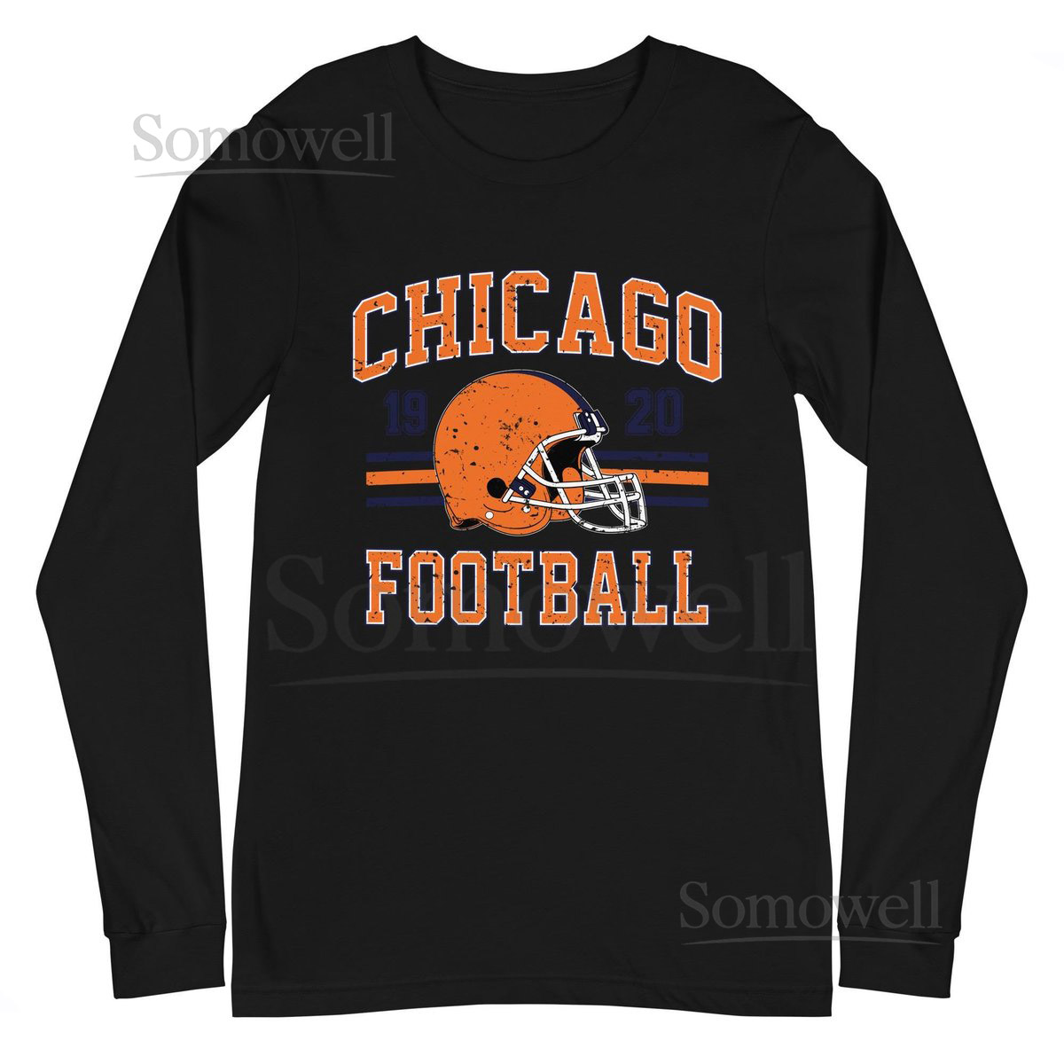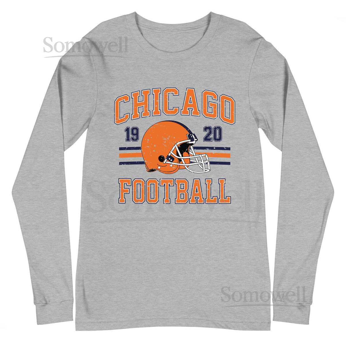 Distressed Chicago Football Long Sleeve T-Shirt Vintage Style Unisex Tee_618