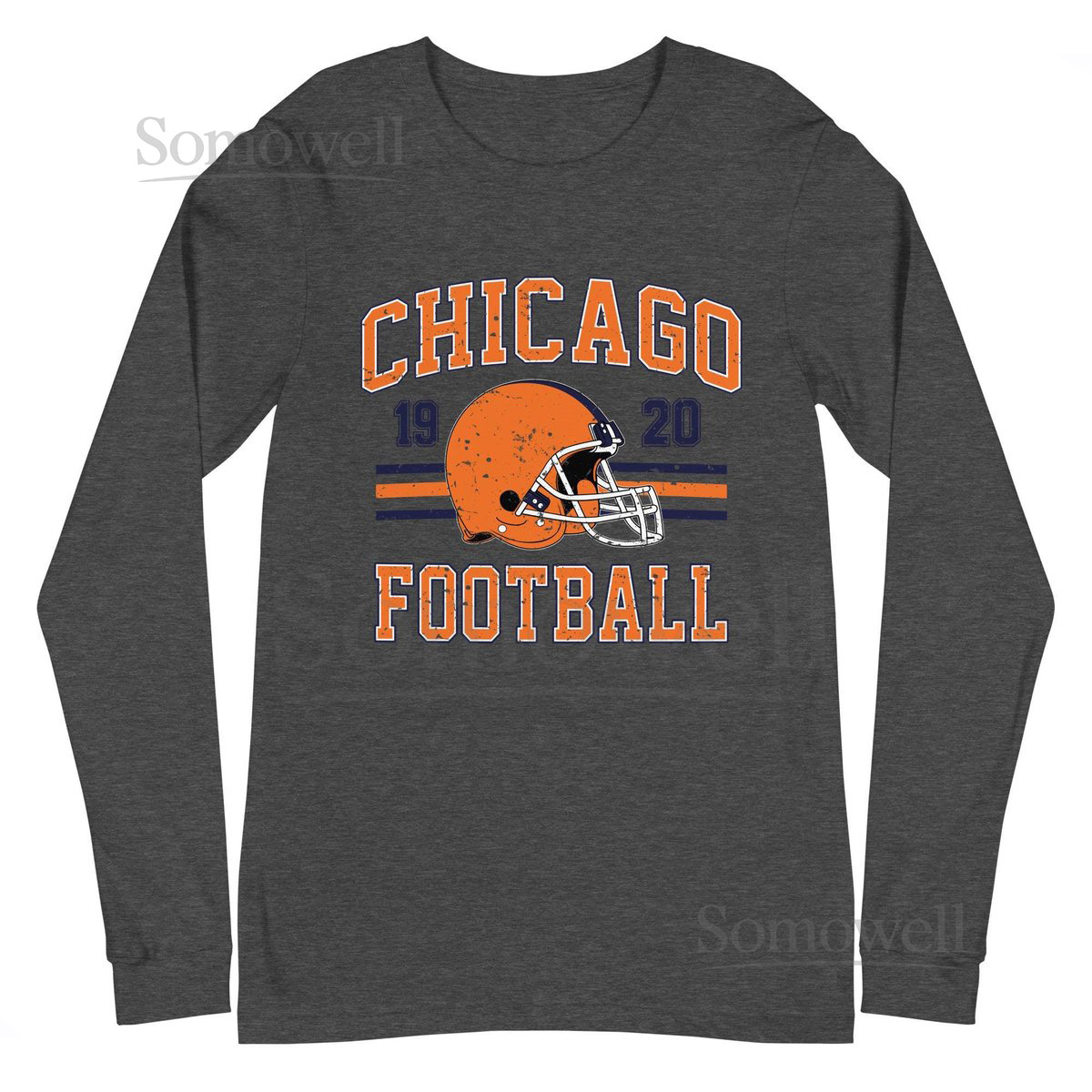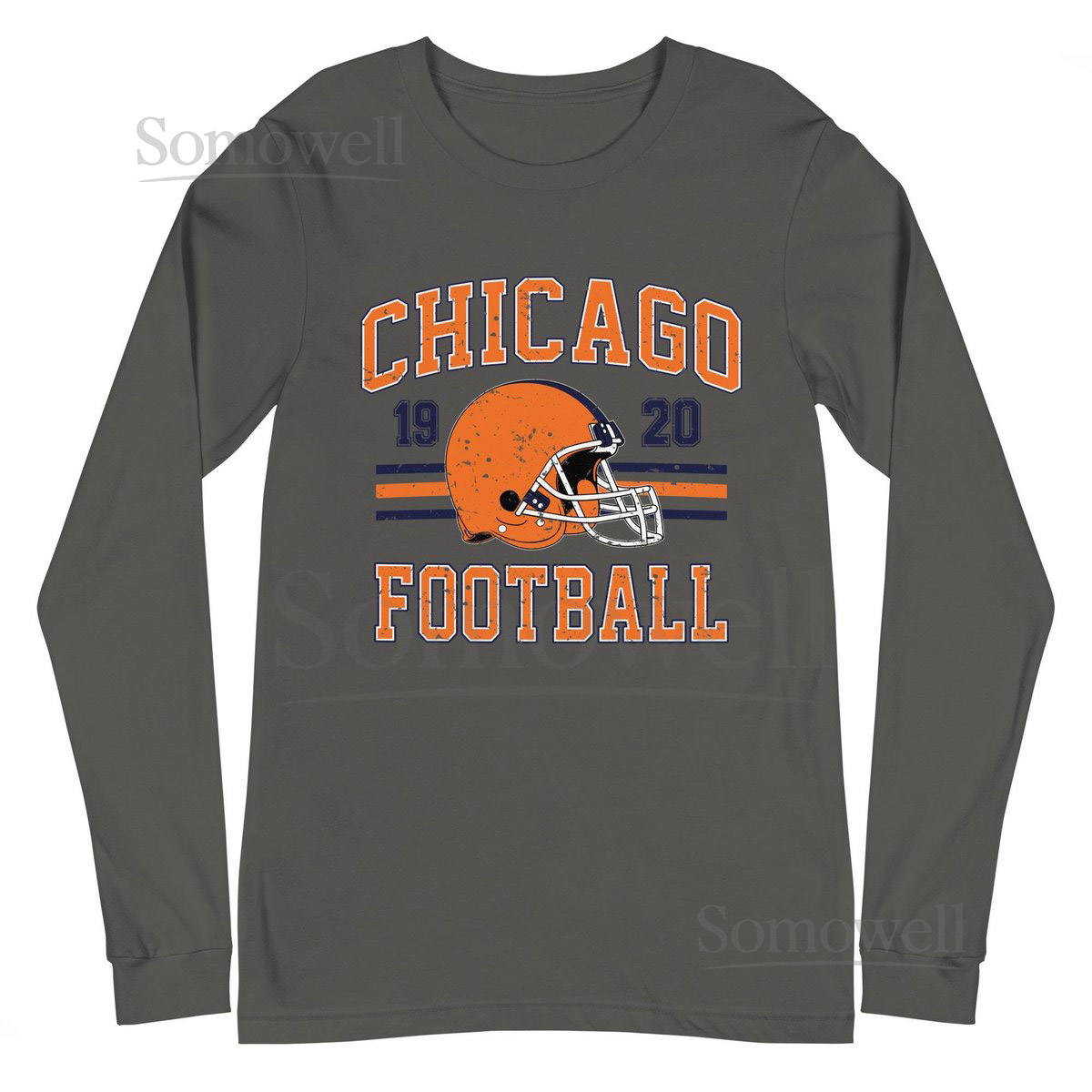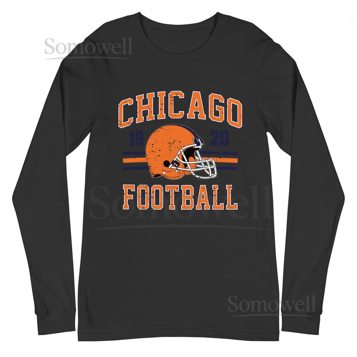 Distressed Chicago Football Long Sleeve T-Shirt Vintage Style Unisex Tee_618