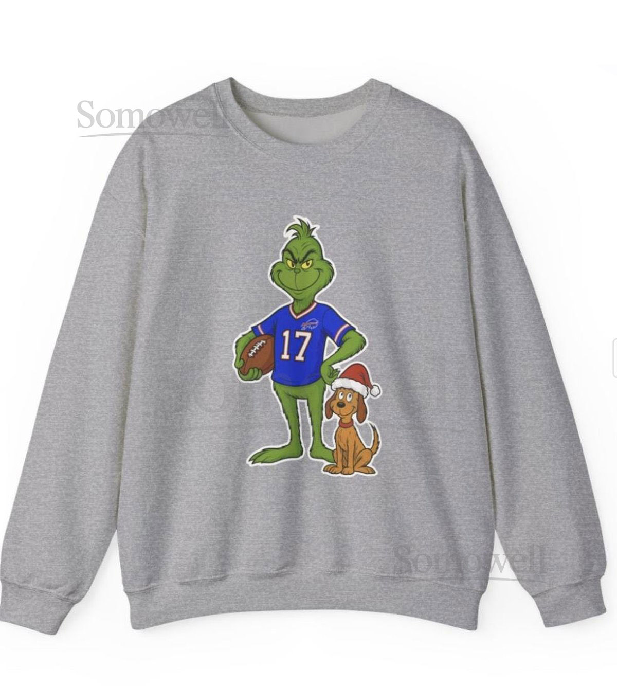 Grinch in Buffalo Bills Jacket Crewneck Sweatshirt Grinch Max Santa Hat_669
