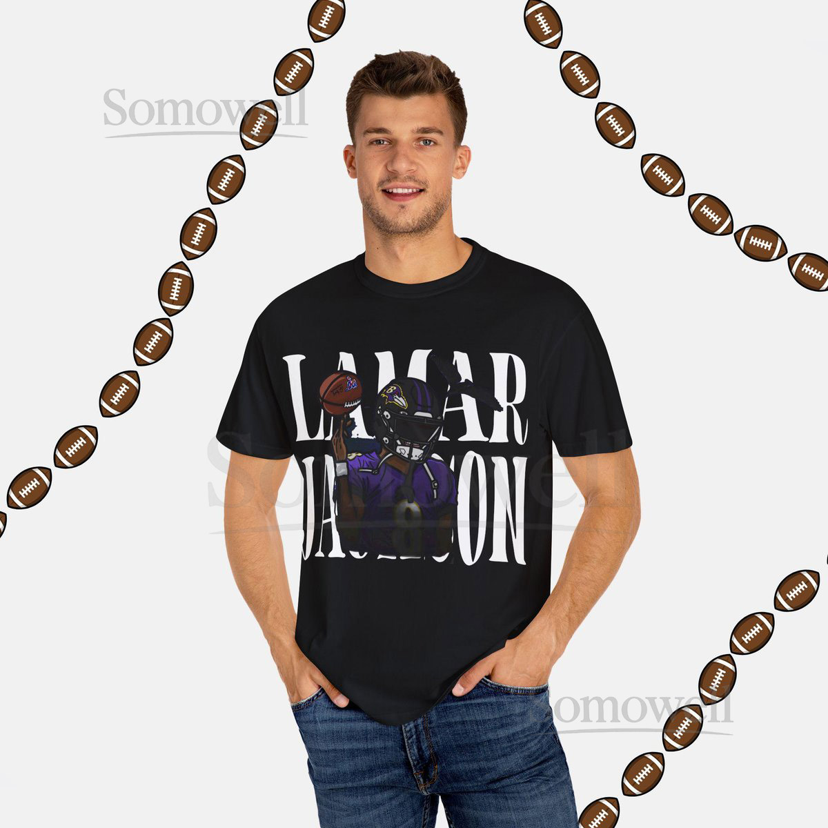 Lamar Jackson Vintage T-Shirt Baltimore Ravens 90s Bootleg Tee_773