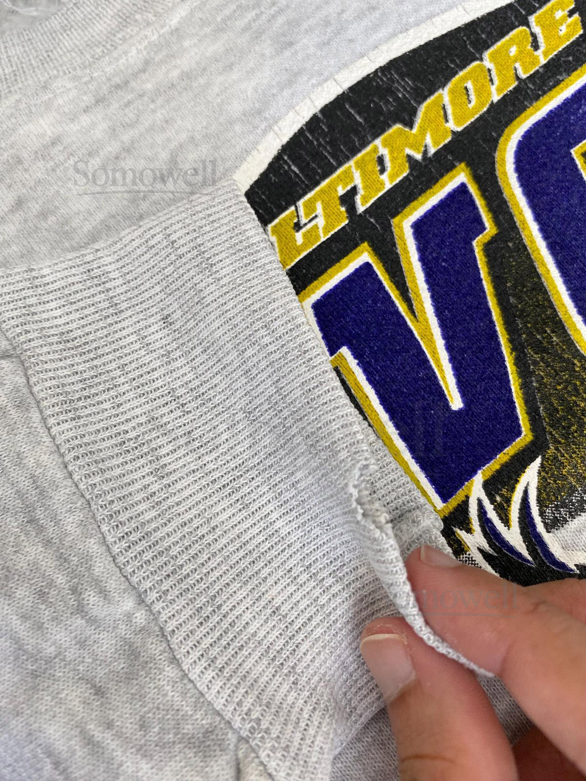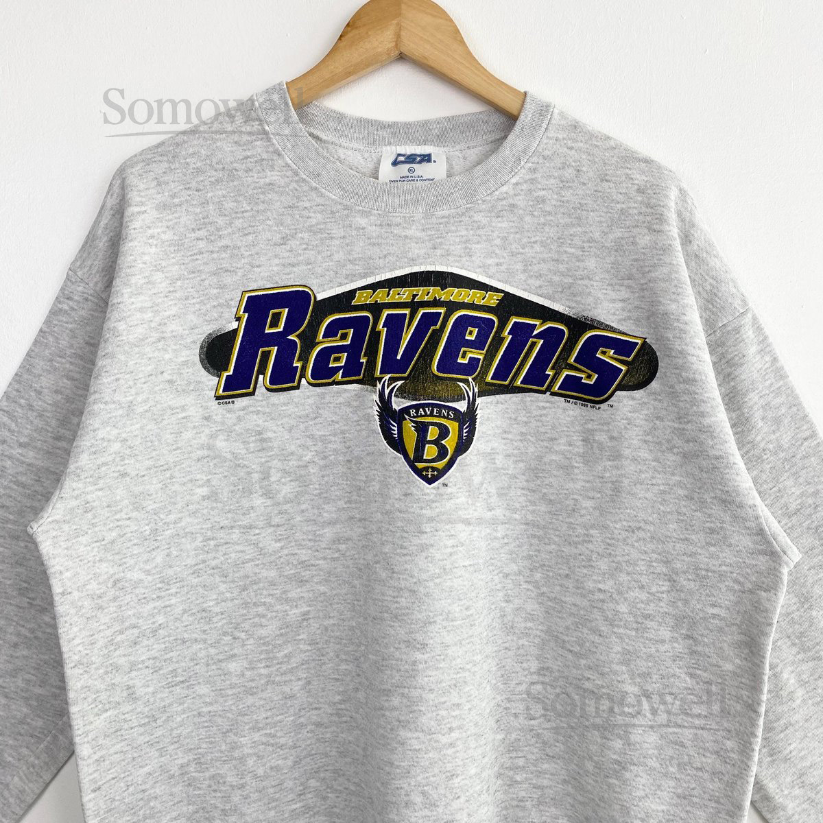 Vintage 90s Baltimore Ravens Crewneck Sweatshirt – NFL – Distressed – Print Logo – Grey Color – Mens Fit To L_914