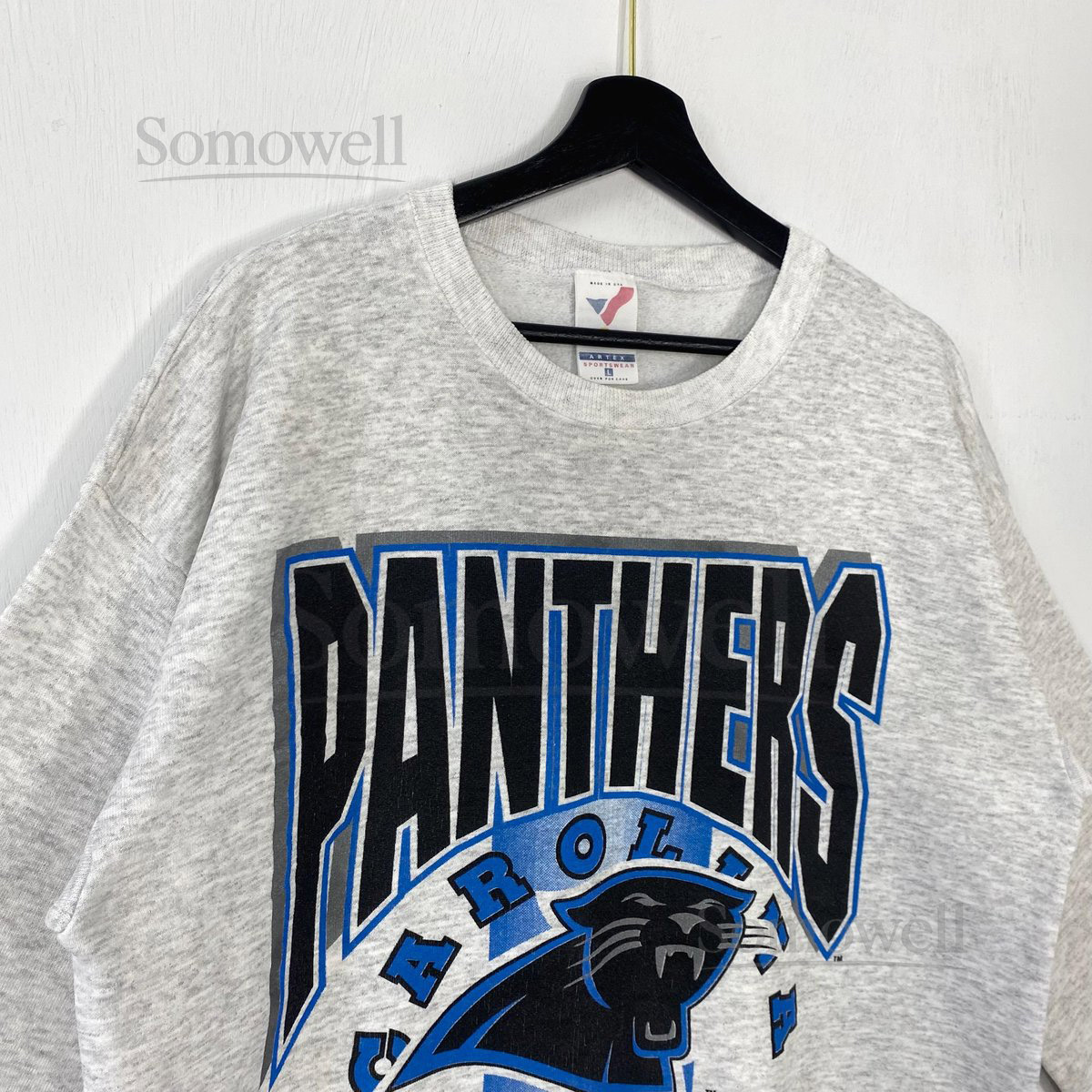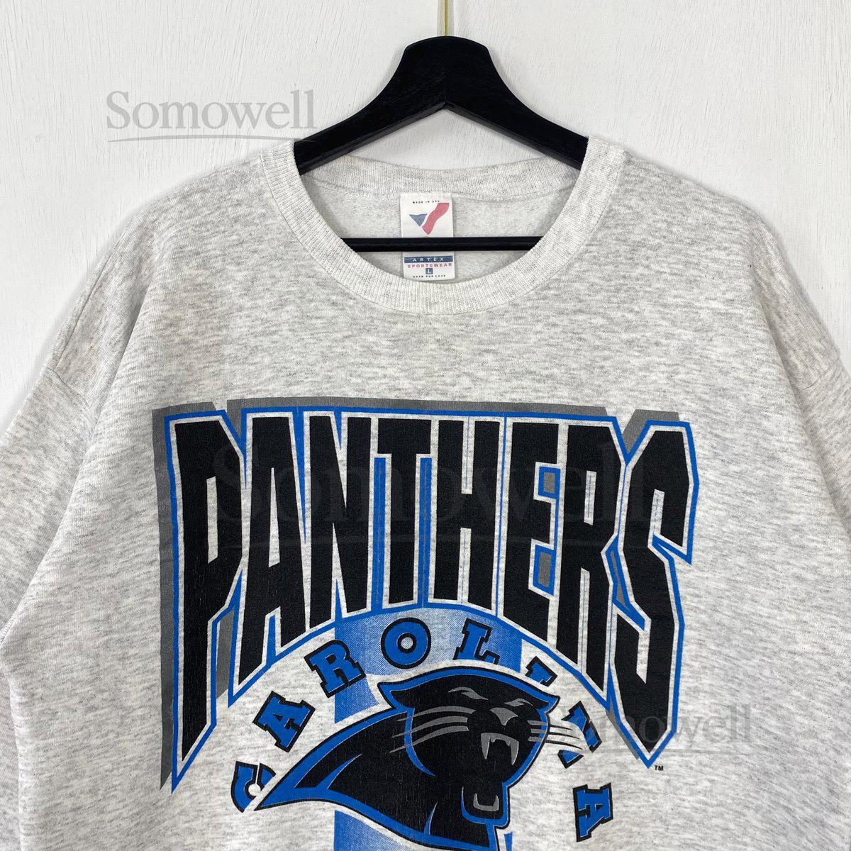 Vintage 90s Carolina Panthers Sweatshirt Crewneck Pullover Sportswear NFL Carolina Panthers Print Logo Grey Medium_942