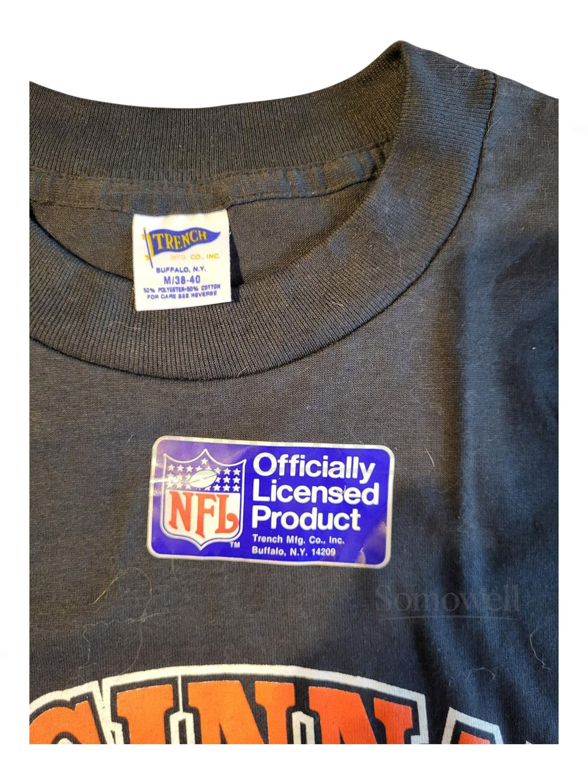 Vintage Cincinnati Bengals NFL T-Shirt 80s Trench Mfg Co. Official Licensed Tee Black Orange Football Fan Gear_1084