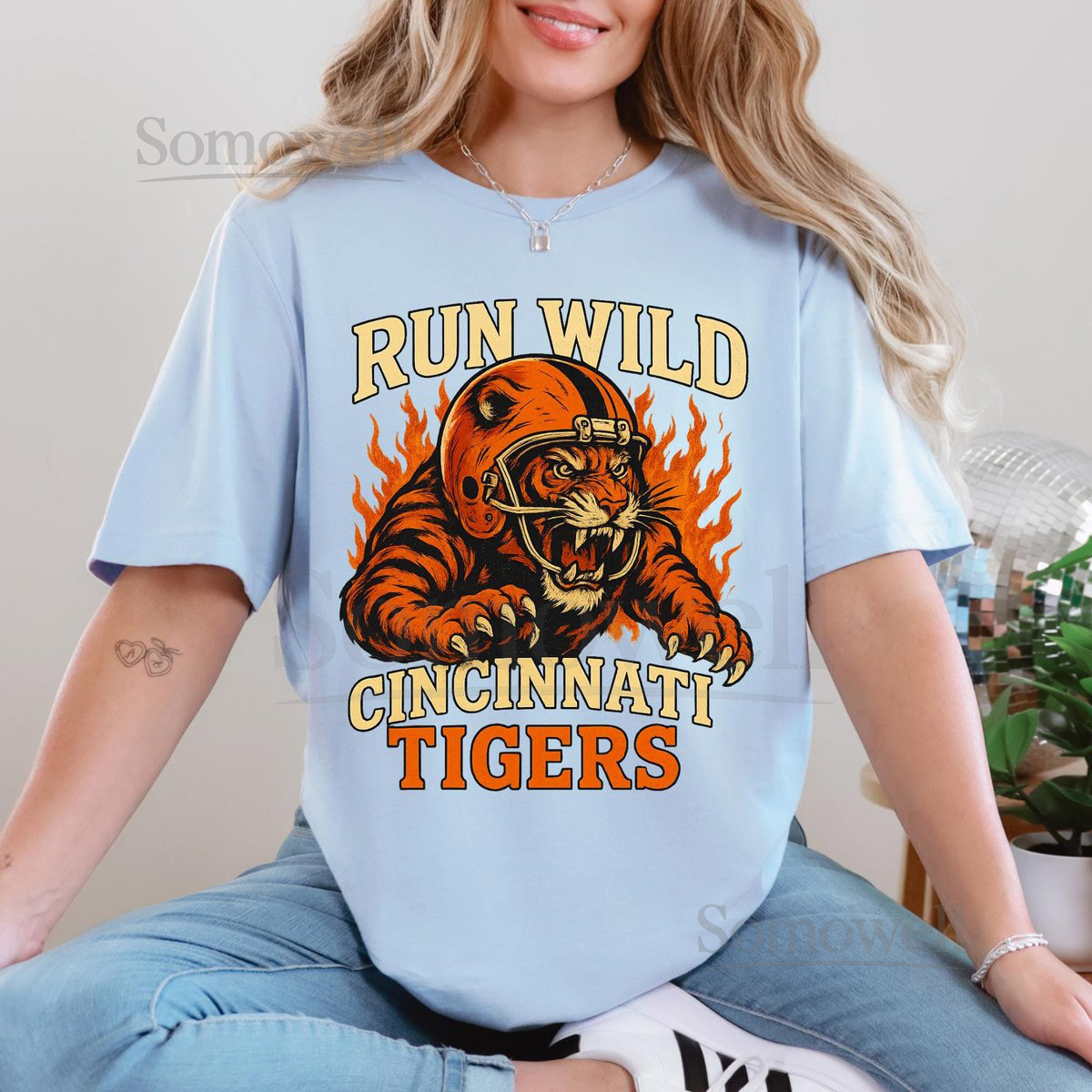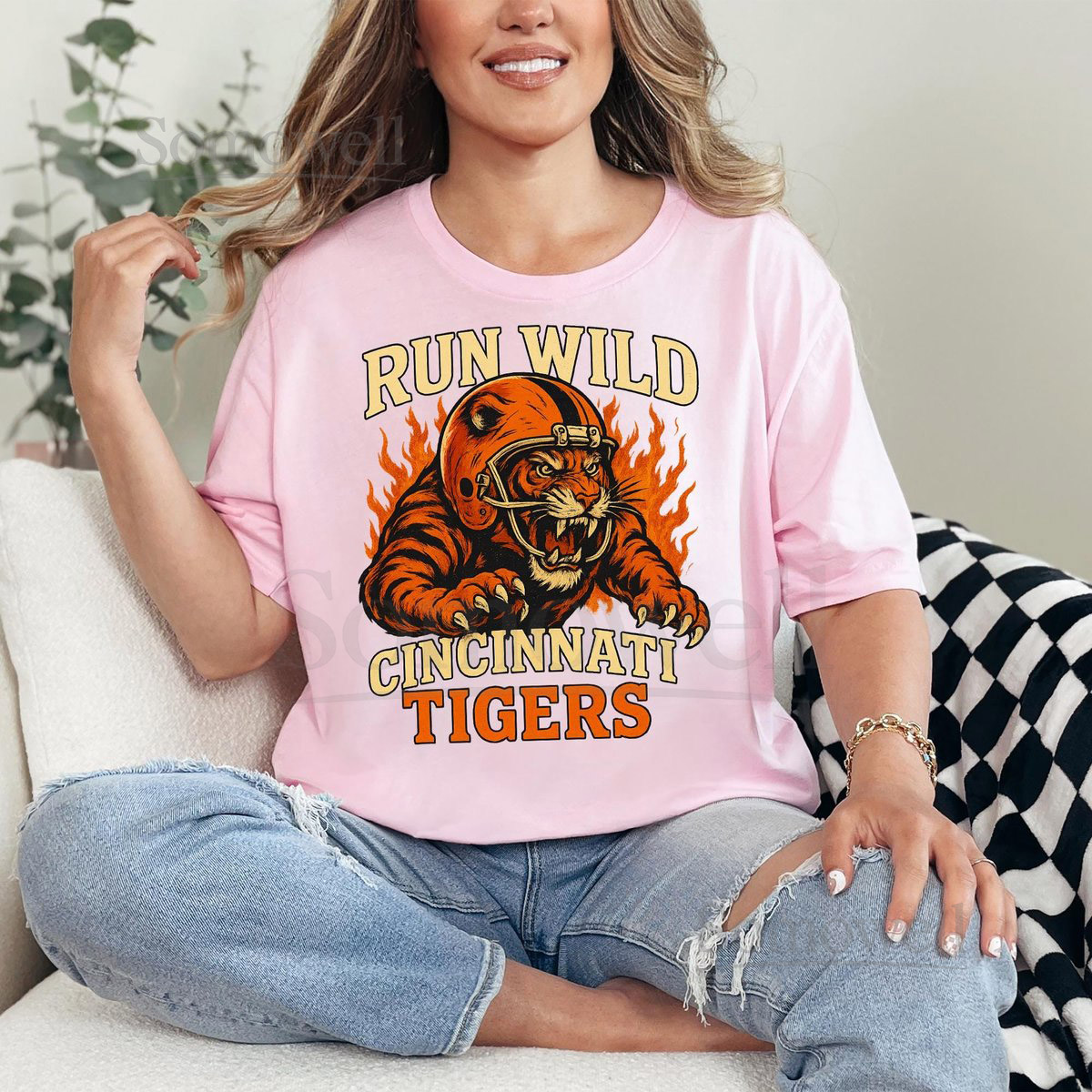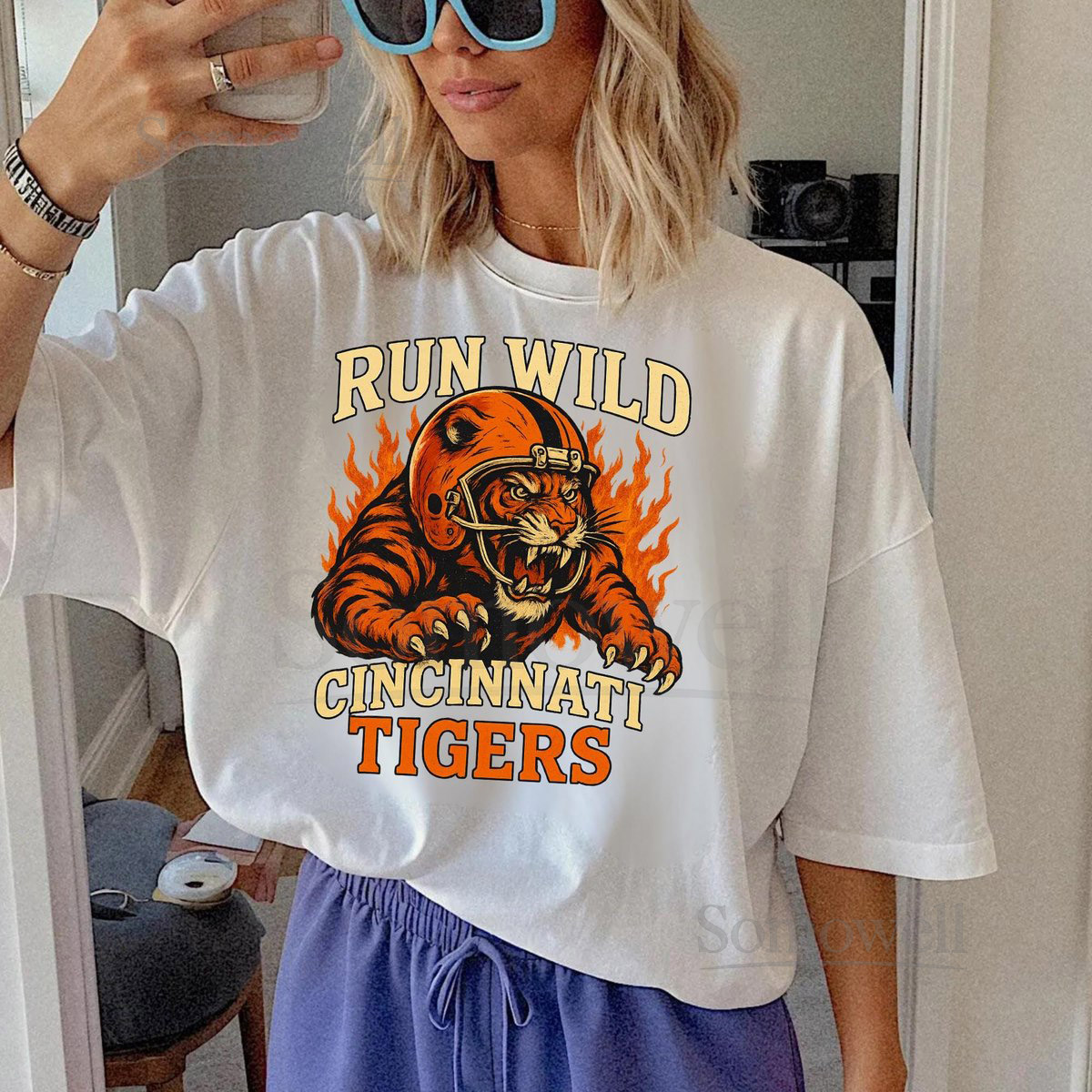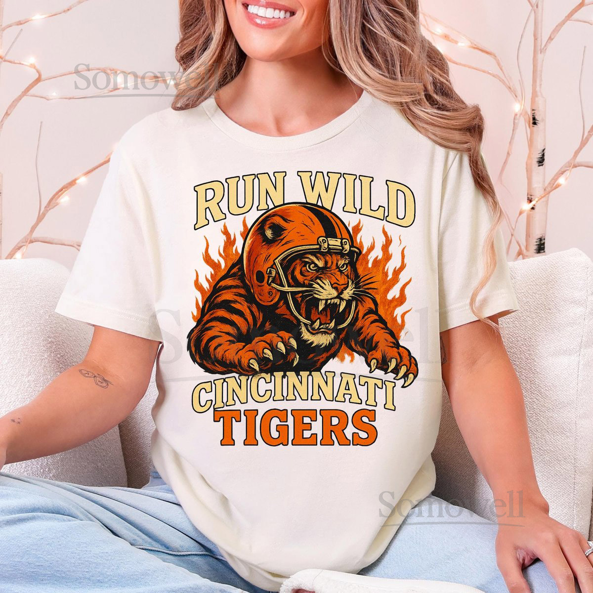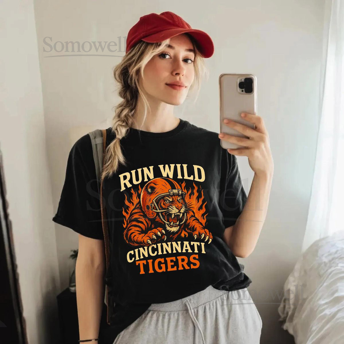 Vintage Cincinnati Bengals T Shirt Run Wild Tiger Graphic Tee Retro Football Game Day Shirt for Women Men Distressed Sports Fan Gift Idea_1085