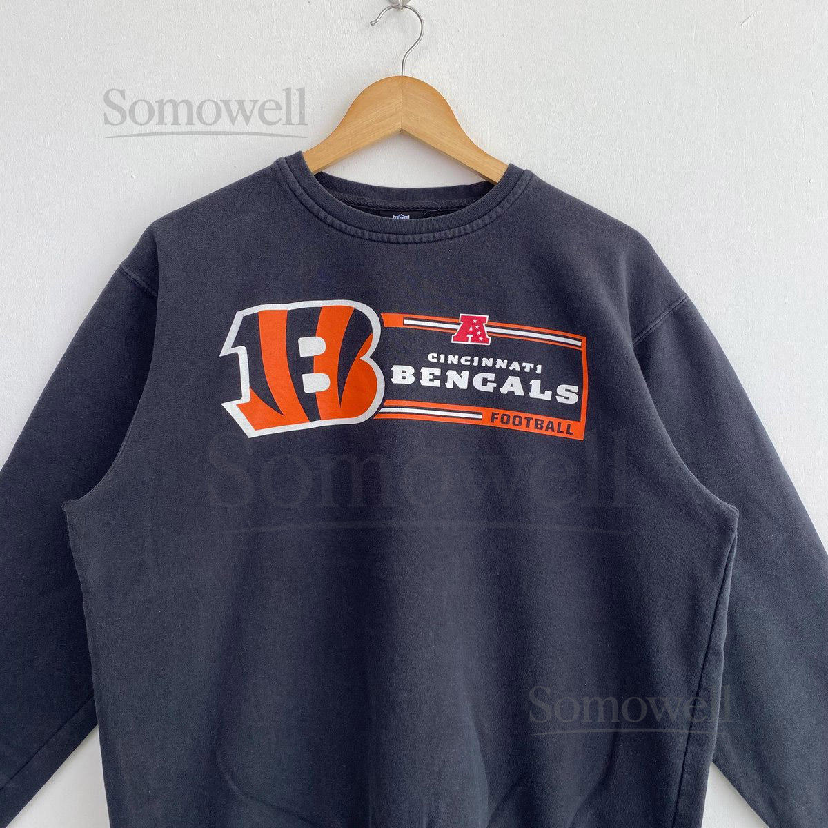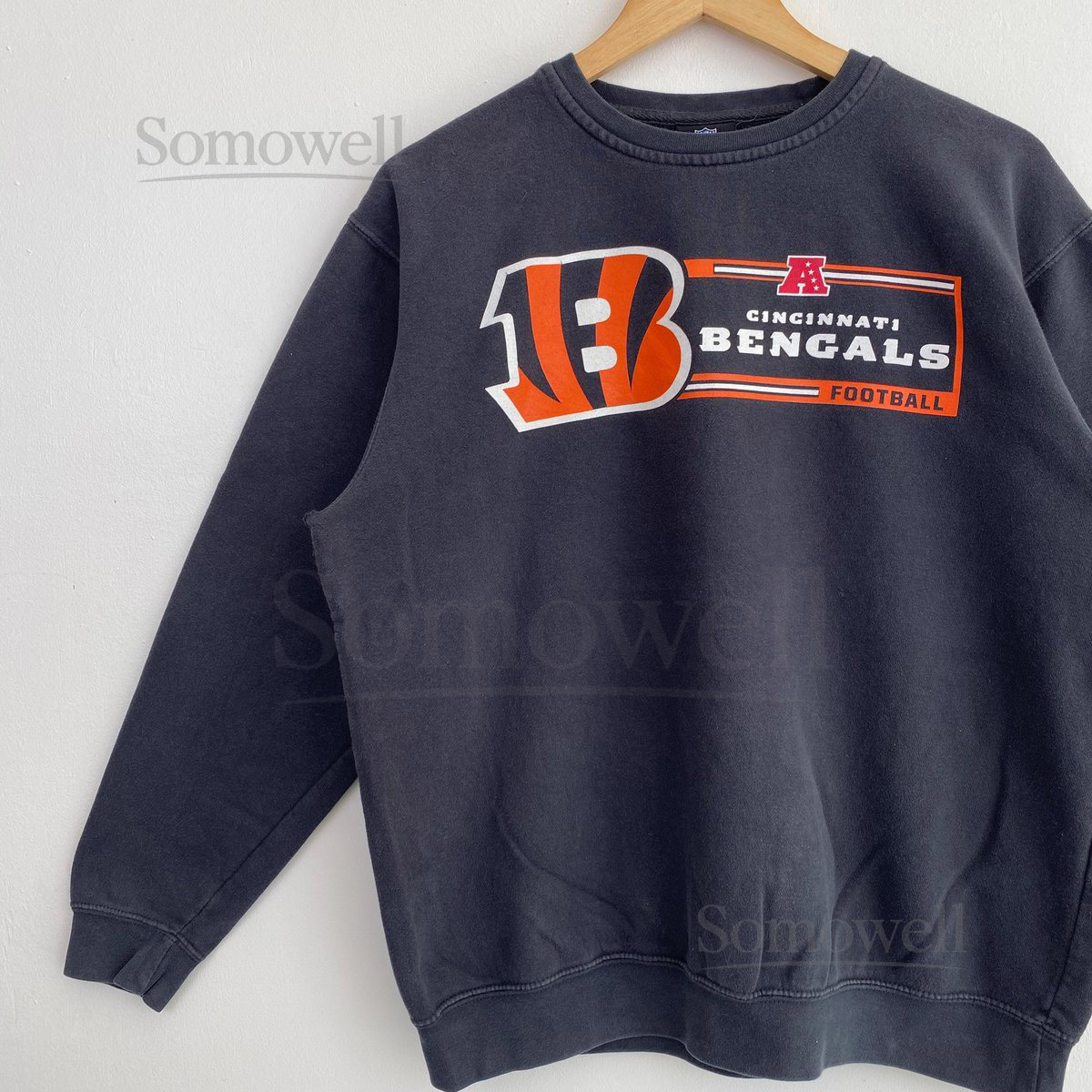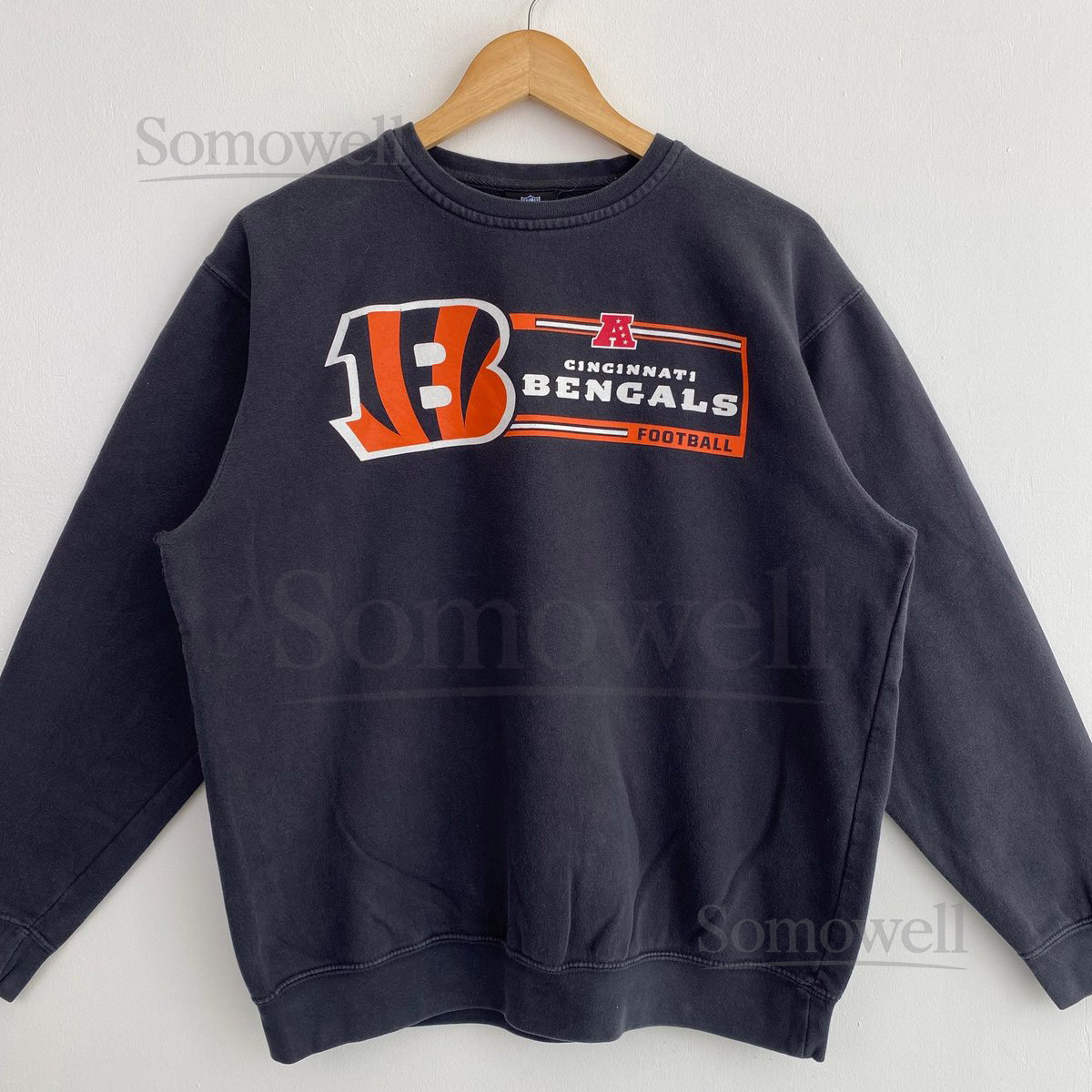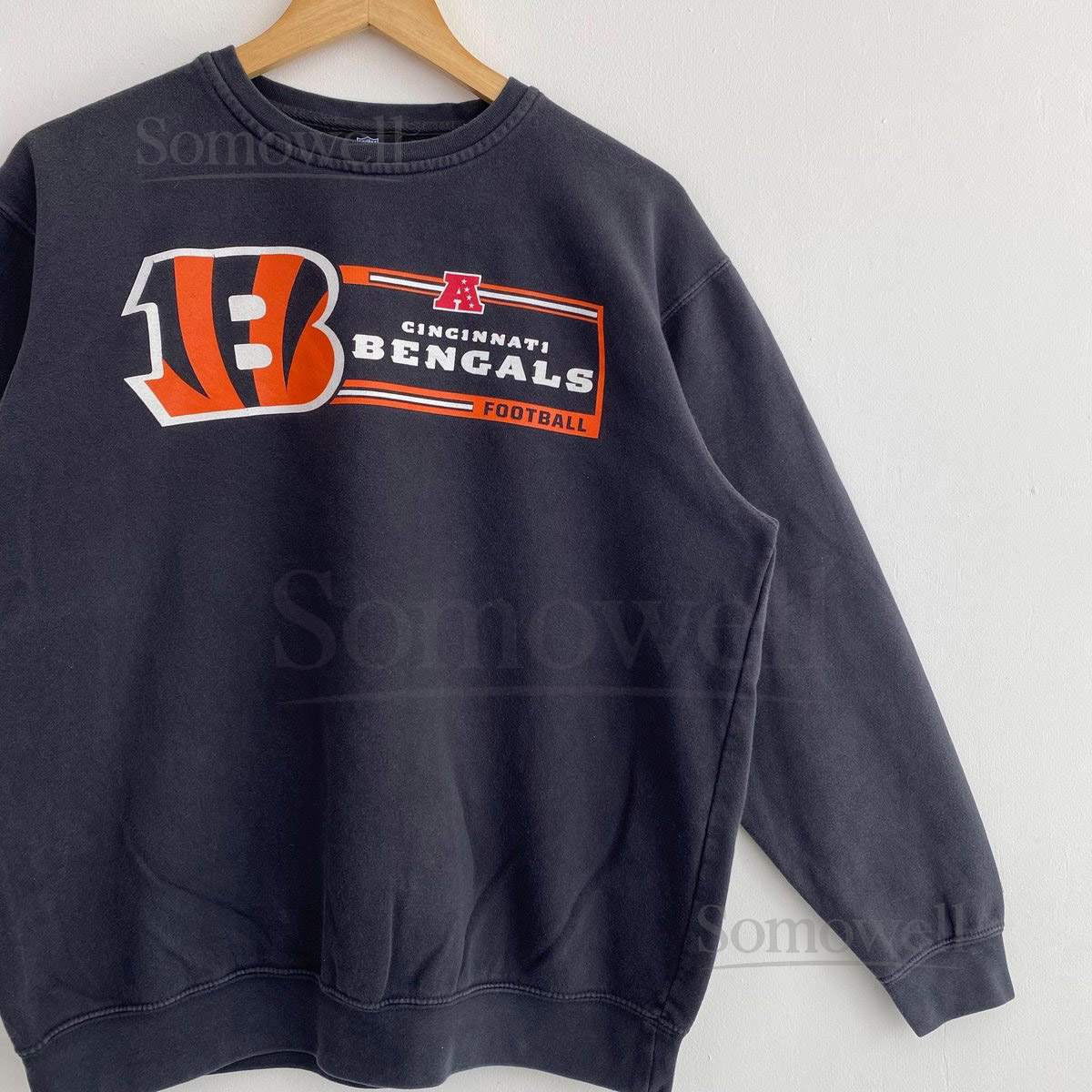 Vintage Distressed NFL Cincinnati Bengals Crewneck Sweatshirt Print Logo Black Color Mens L_1091