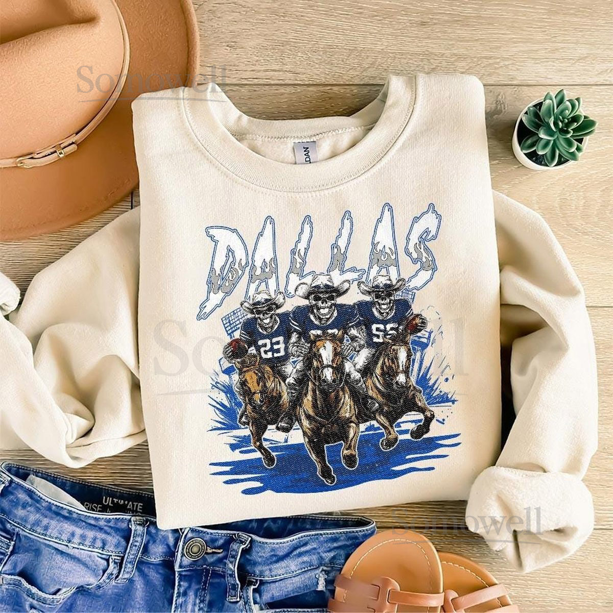 Dallas Cowboy Football Skull Vintage Shirt Game Day Pullover 90s Cincinnati Football Game Day Apparel Sweatshirt Trendy Fan Gift DSH17_112