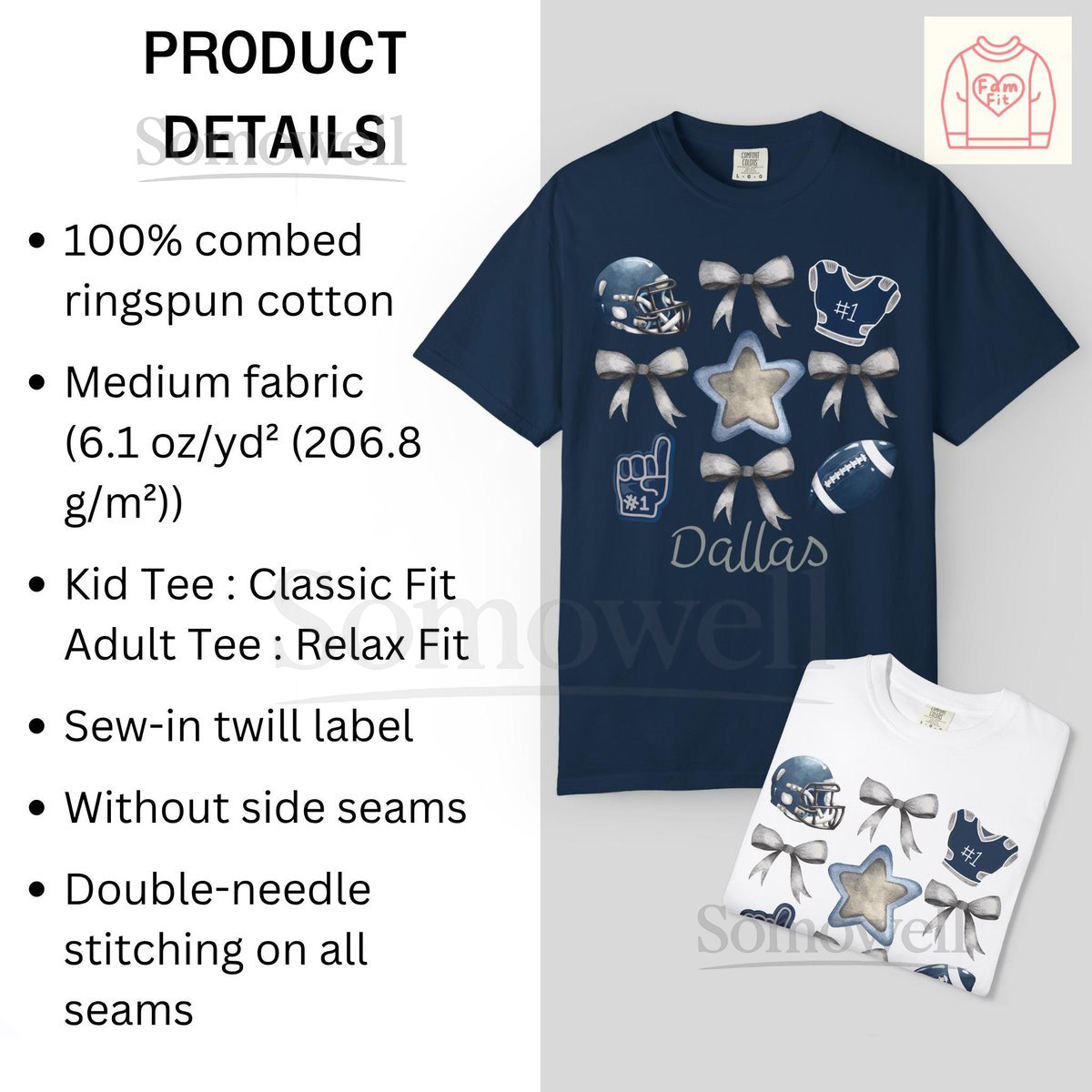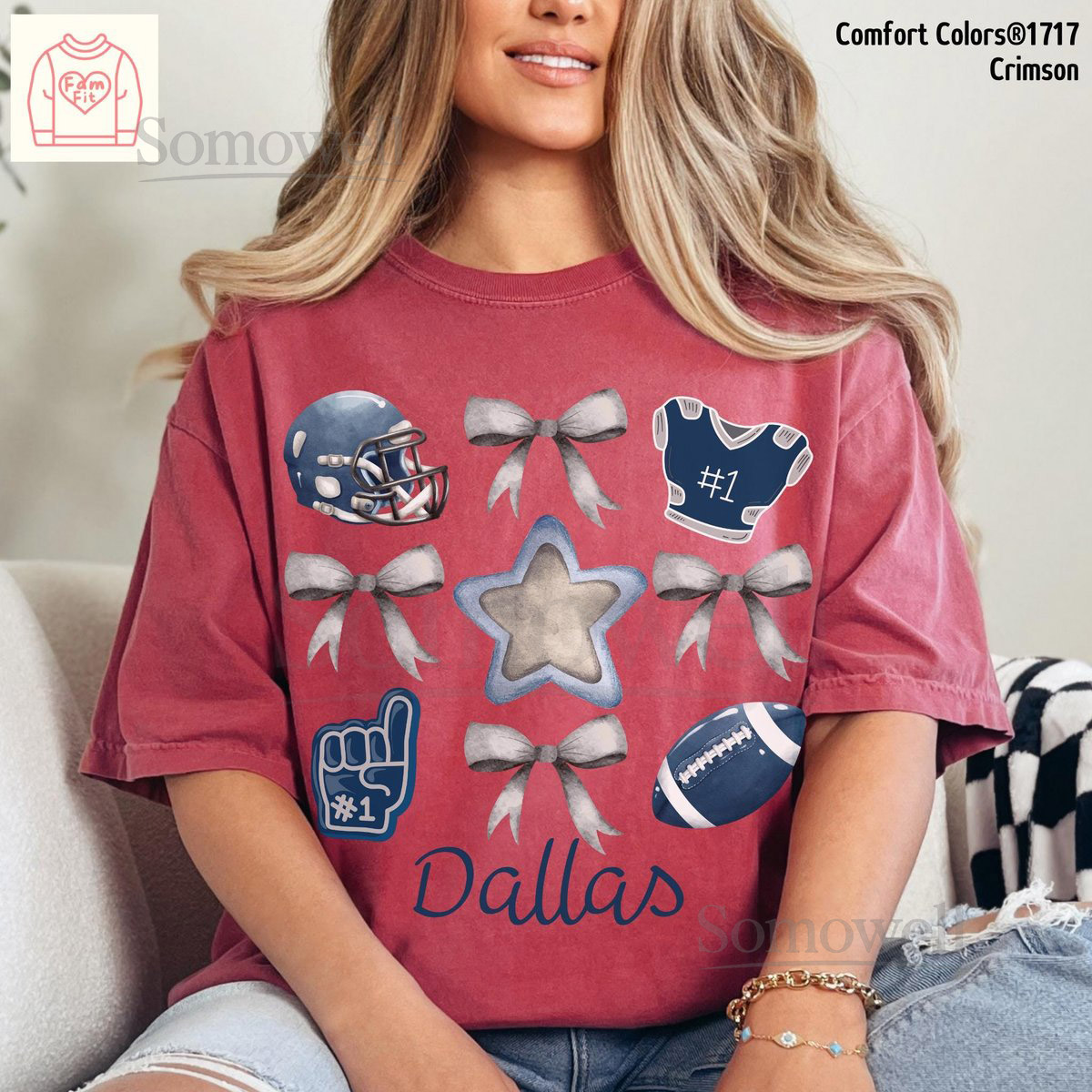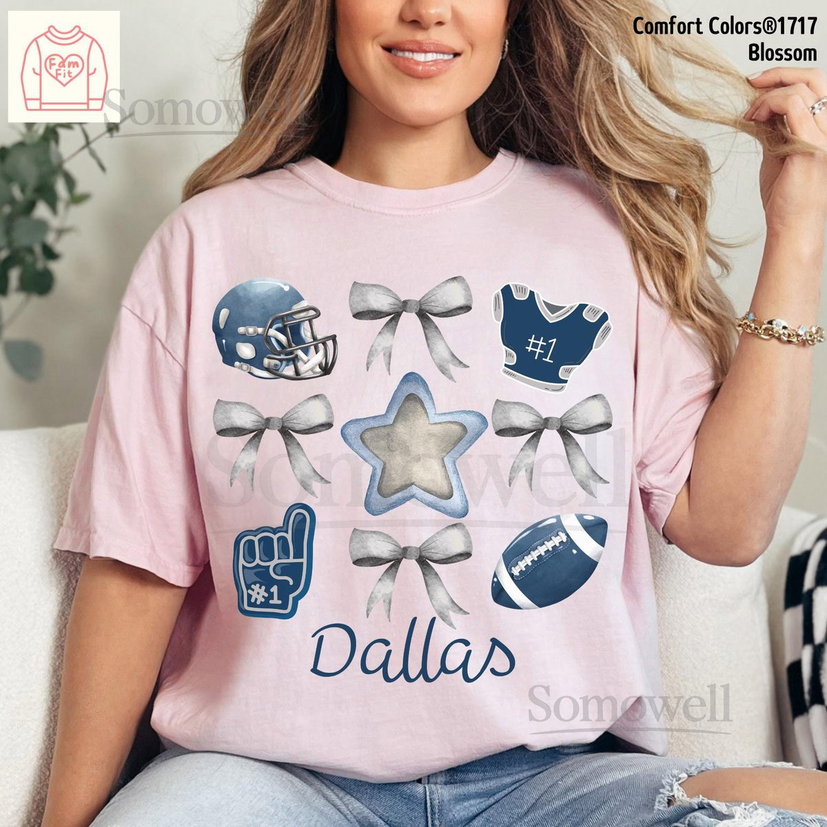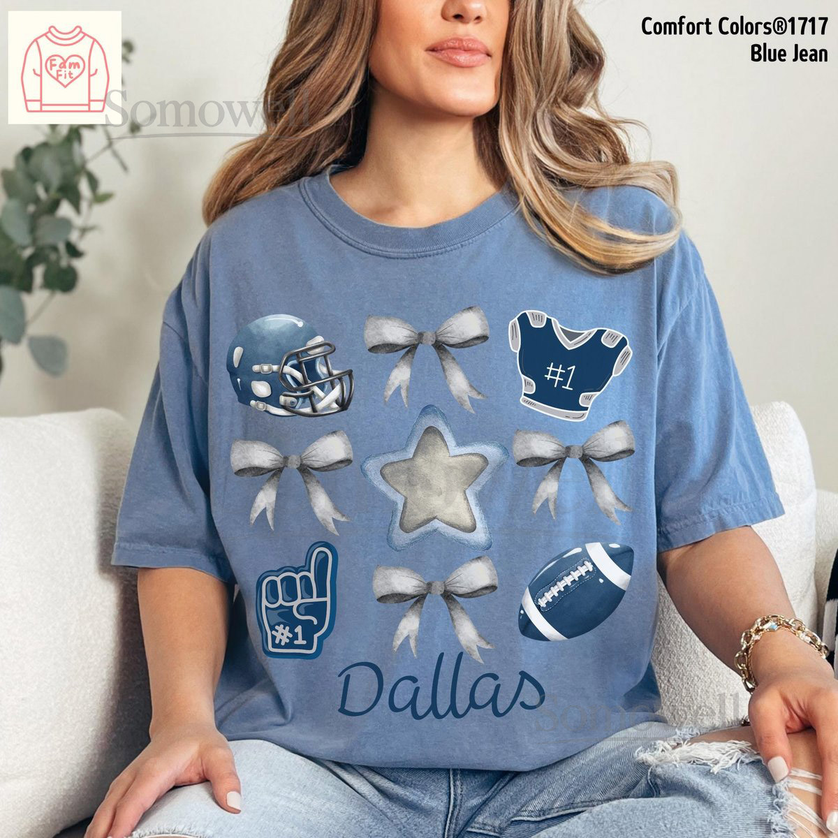Custom Name Dallas Football Bow Shirt – Cowboy Gameday Coquette Bows Comfort Colors Tee Famfit24-08_102