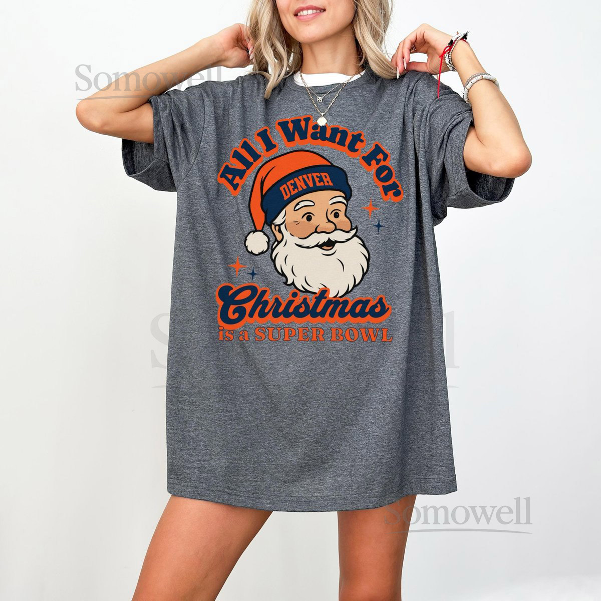 Denver Football Christmas Super Bowl T-Shirt Retro Bronco Football Tee Holiday Football Fan Shirt Festive Sports Apparel Santa Shirt_331