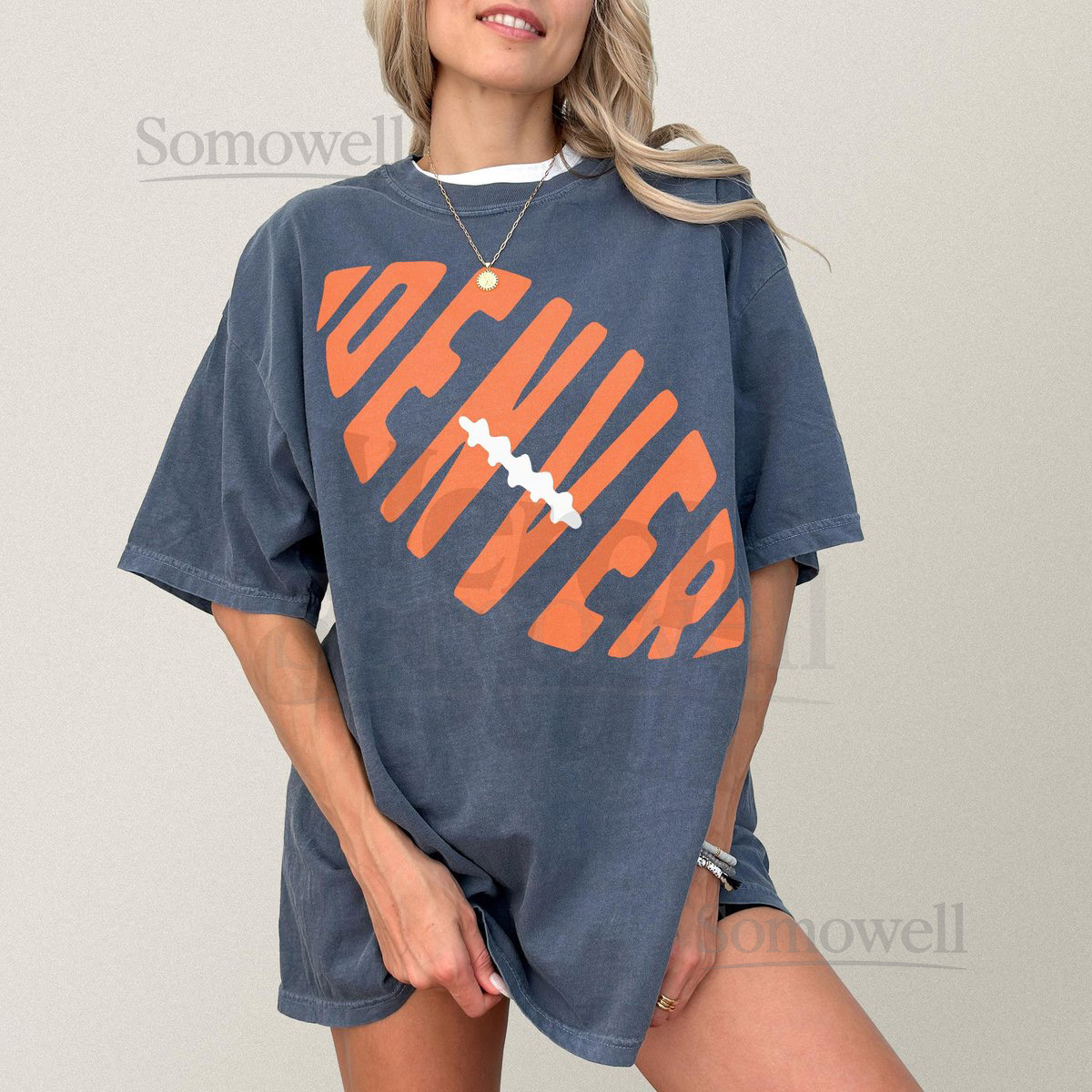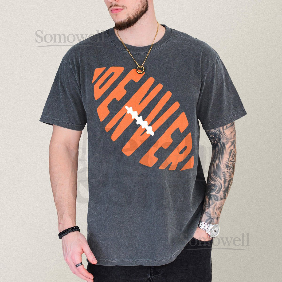 Denver Football Graphic Tee Comfort Colors Unisex Retro Orange and Navy Colorado Football Fan Apparel Gift Vintage Denver Game Day T-Shirt_343