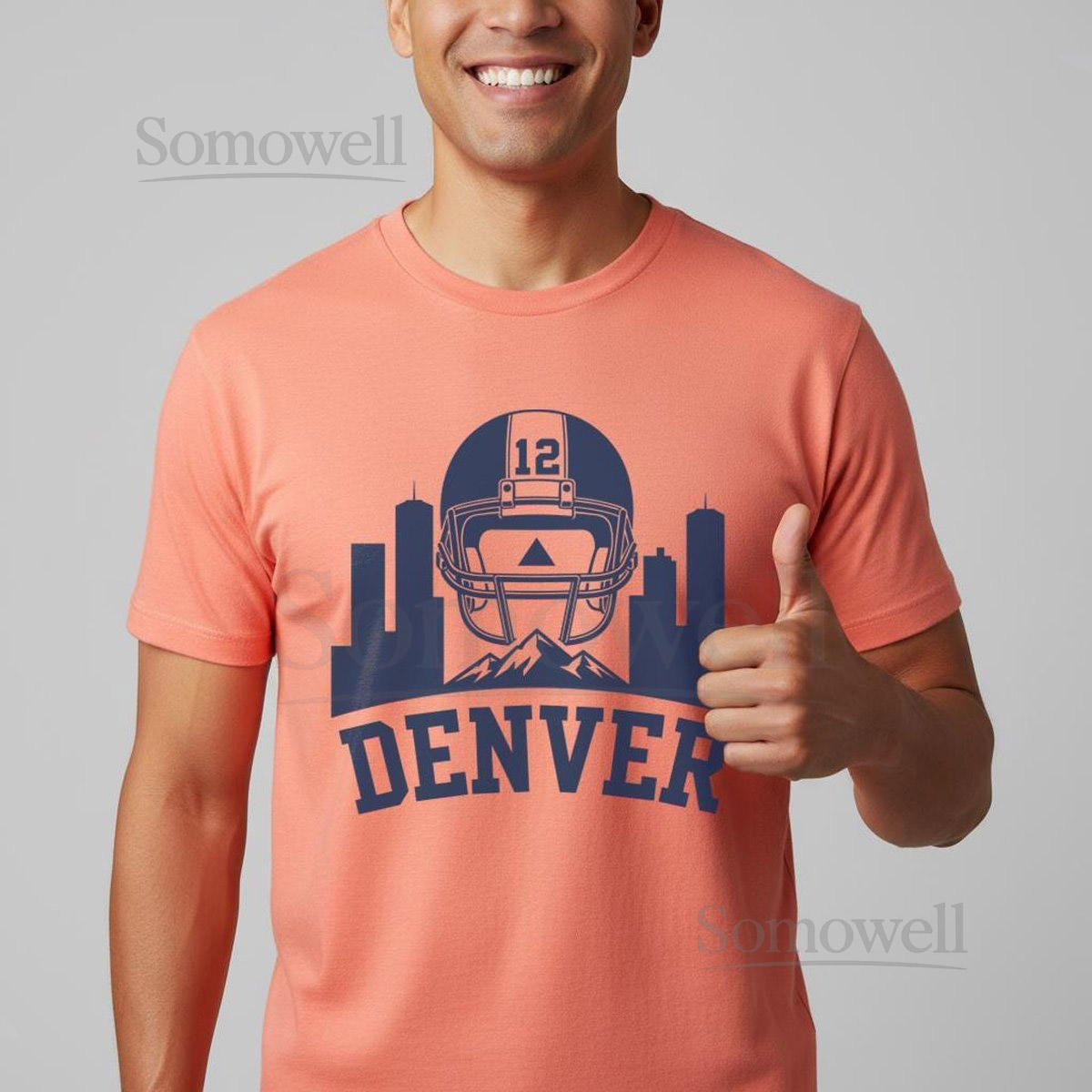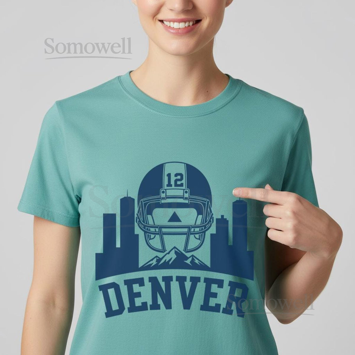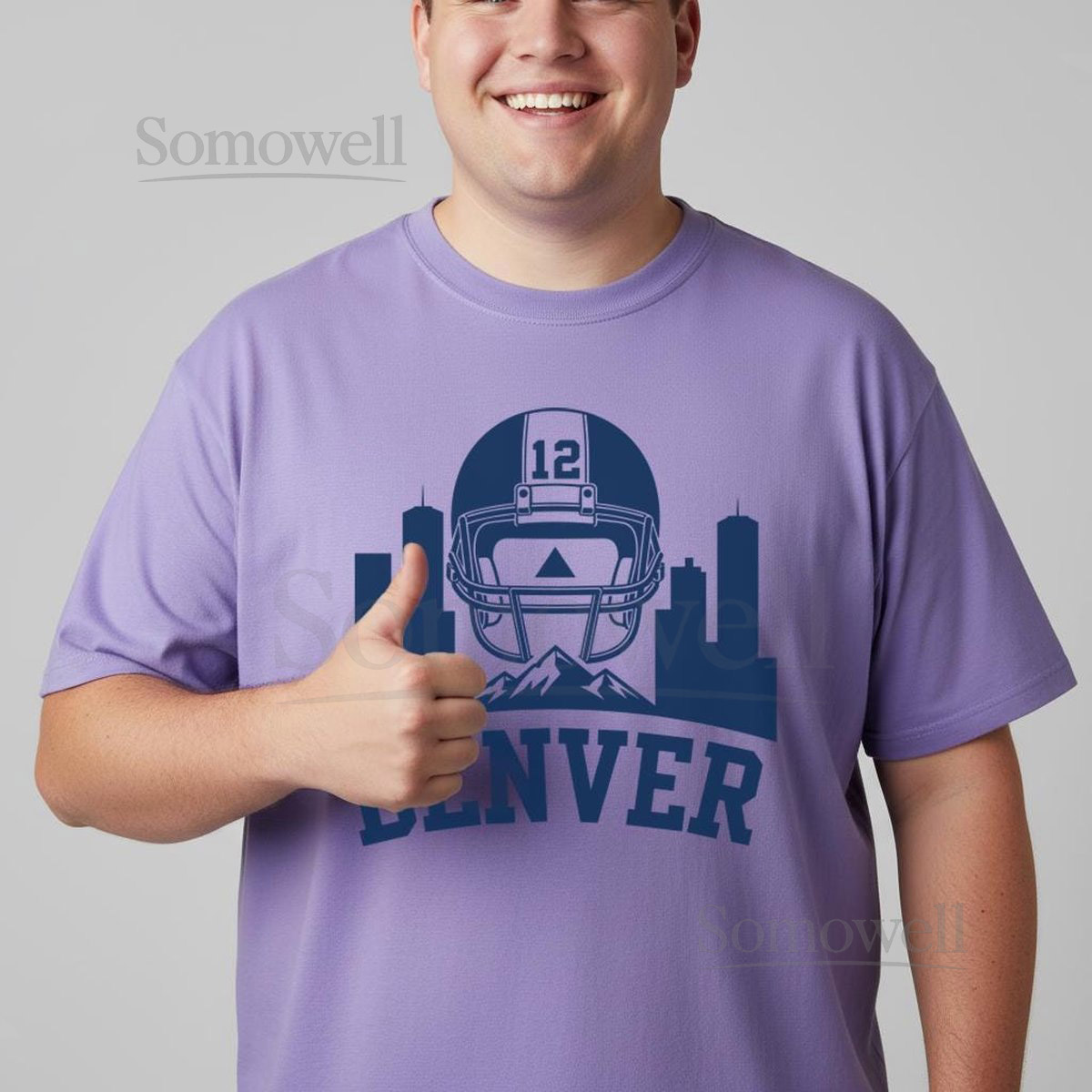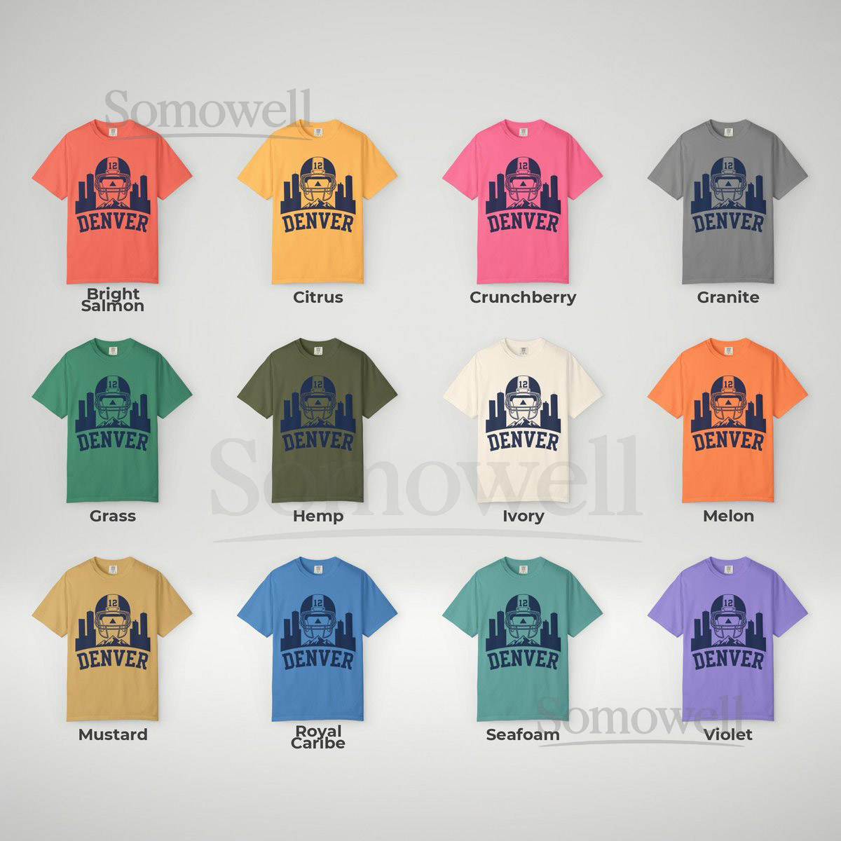 Denver Football Helmet Tee City Skyline Mountain Graphic Comfort Colors Fan Shirt_344