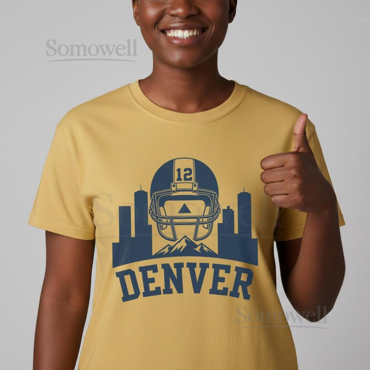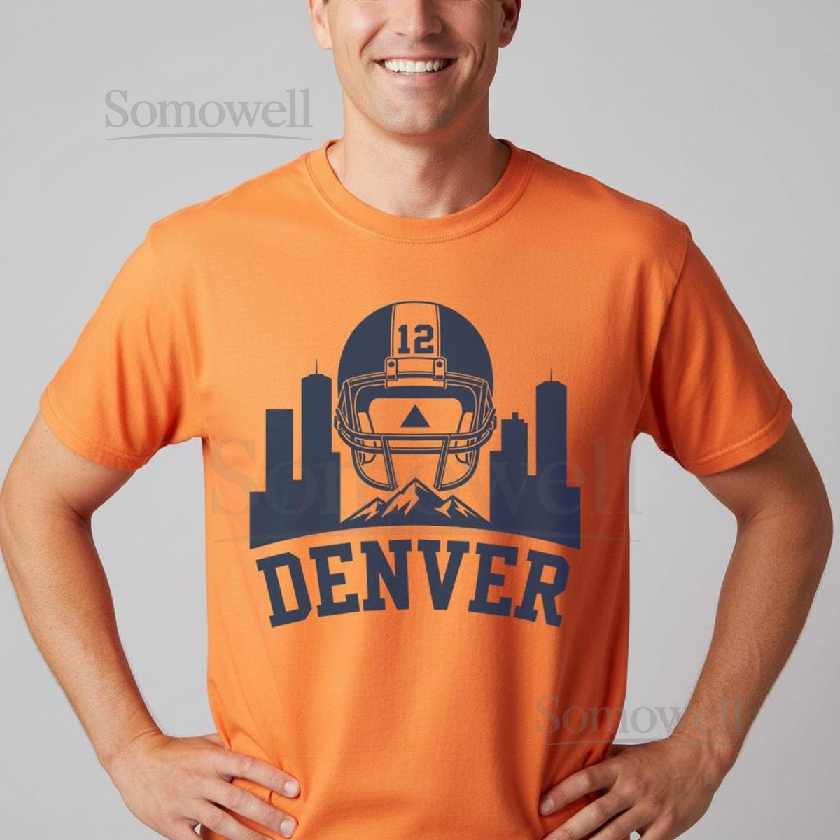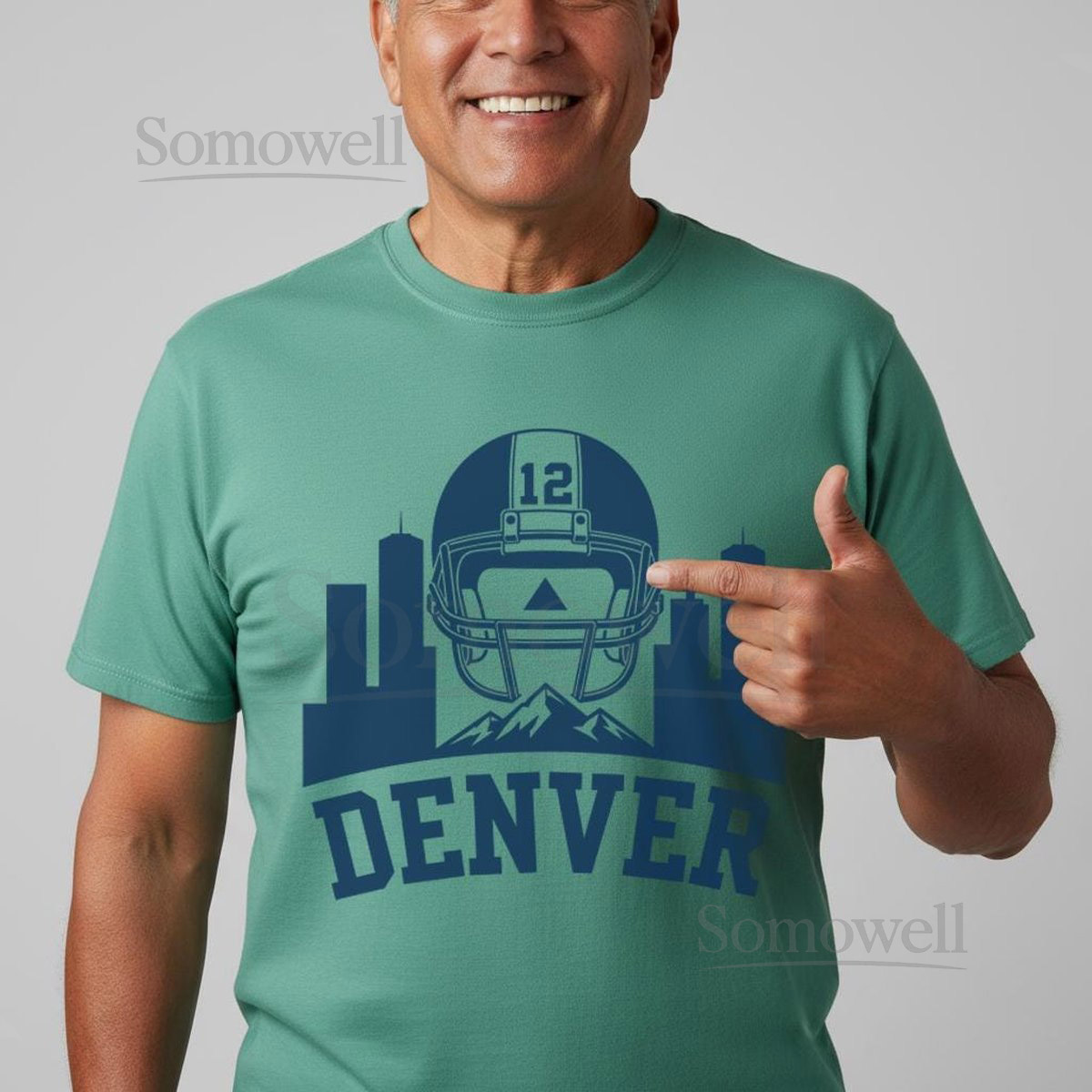 Denver Football Helmet Tee City Skyline Mountain Graphic Comfort Colors Fan Shirt_344