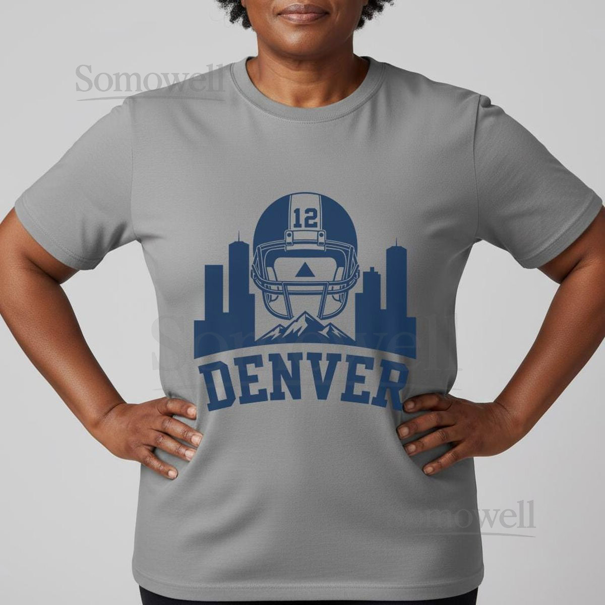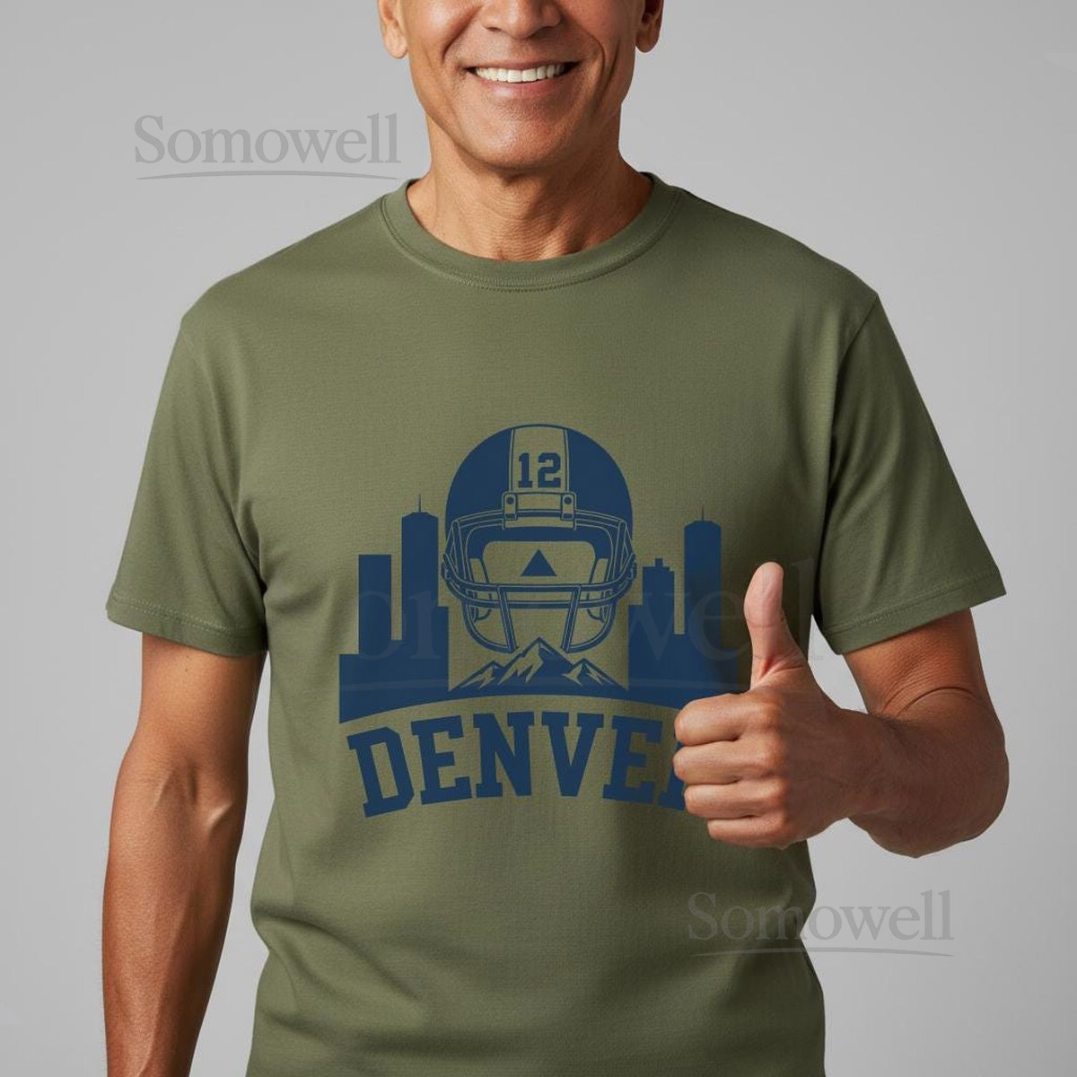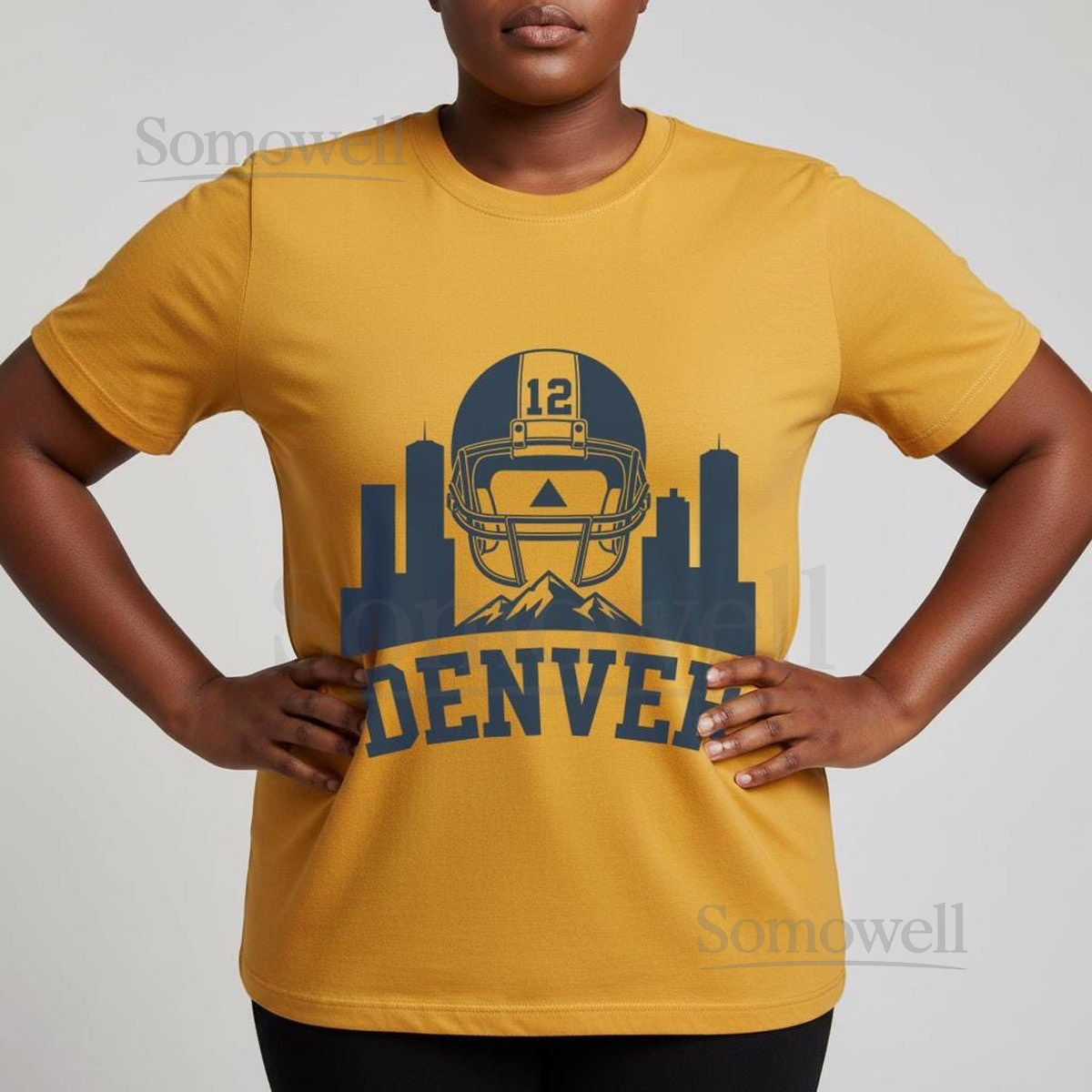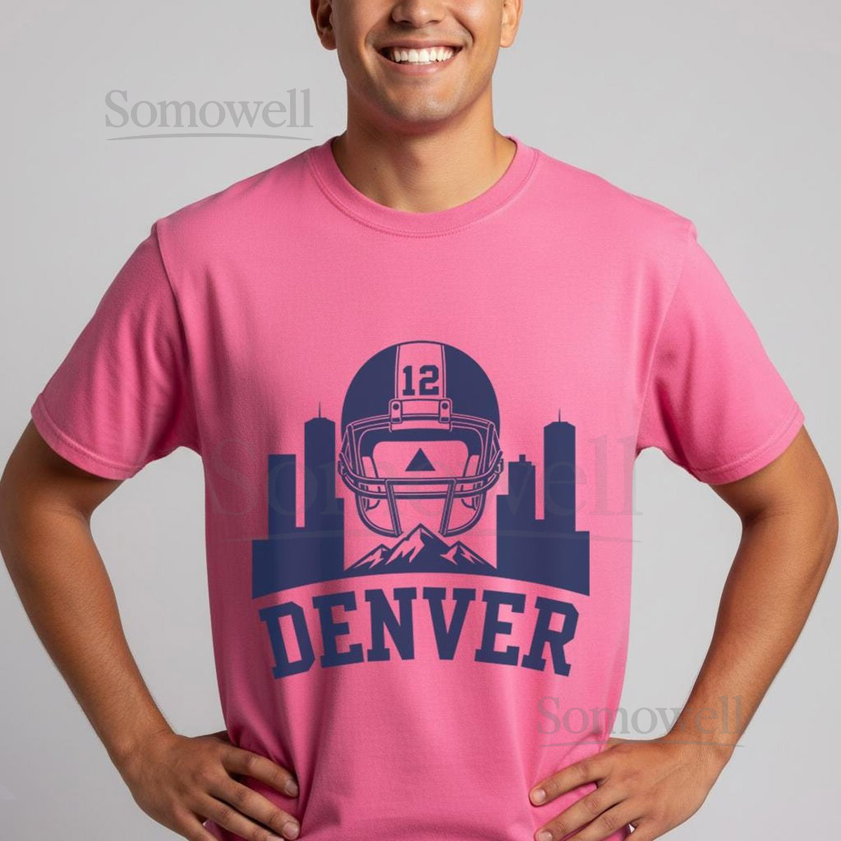 Denver Football Helmet Tee City Skyline Mountain Graphic Comfort Colors Fan Shirt_344