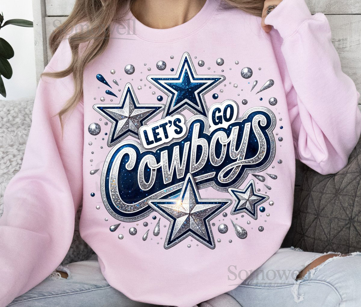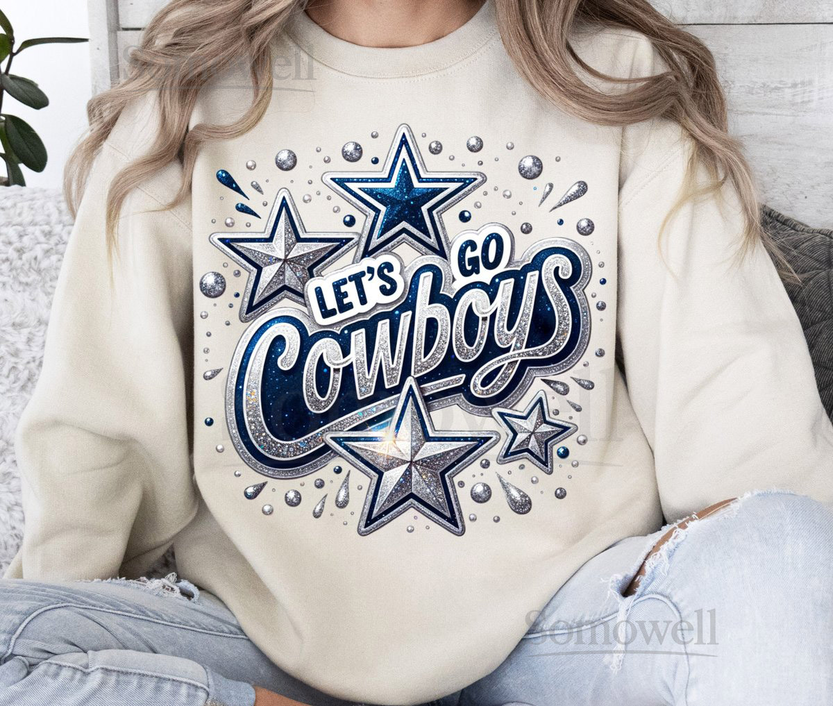 Let’s Go Cowboys Png Sublimation Design Silver Glitter Stars Png Western Png Trendy Png T-Shirt Design Digital Download Png DTF_409
