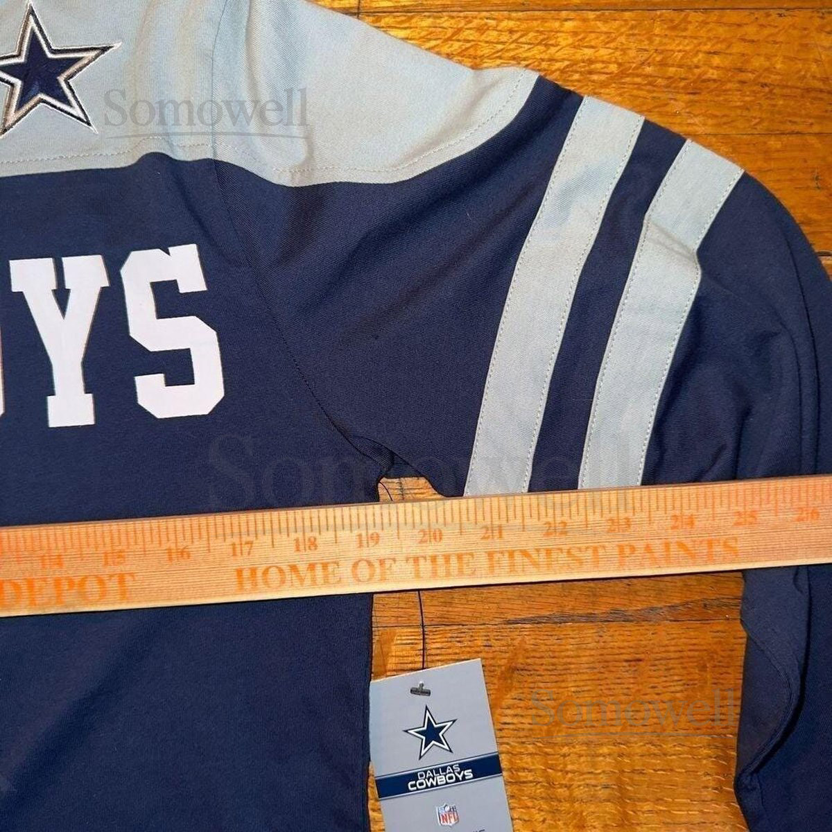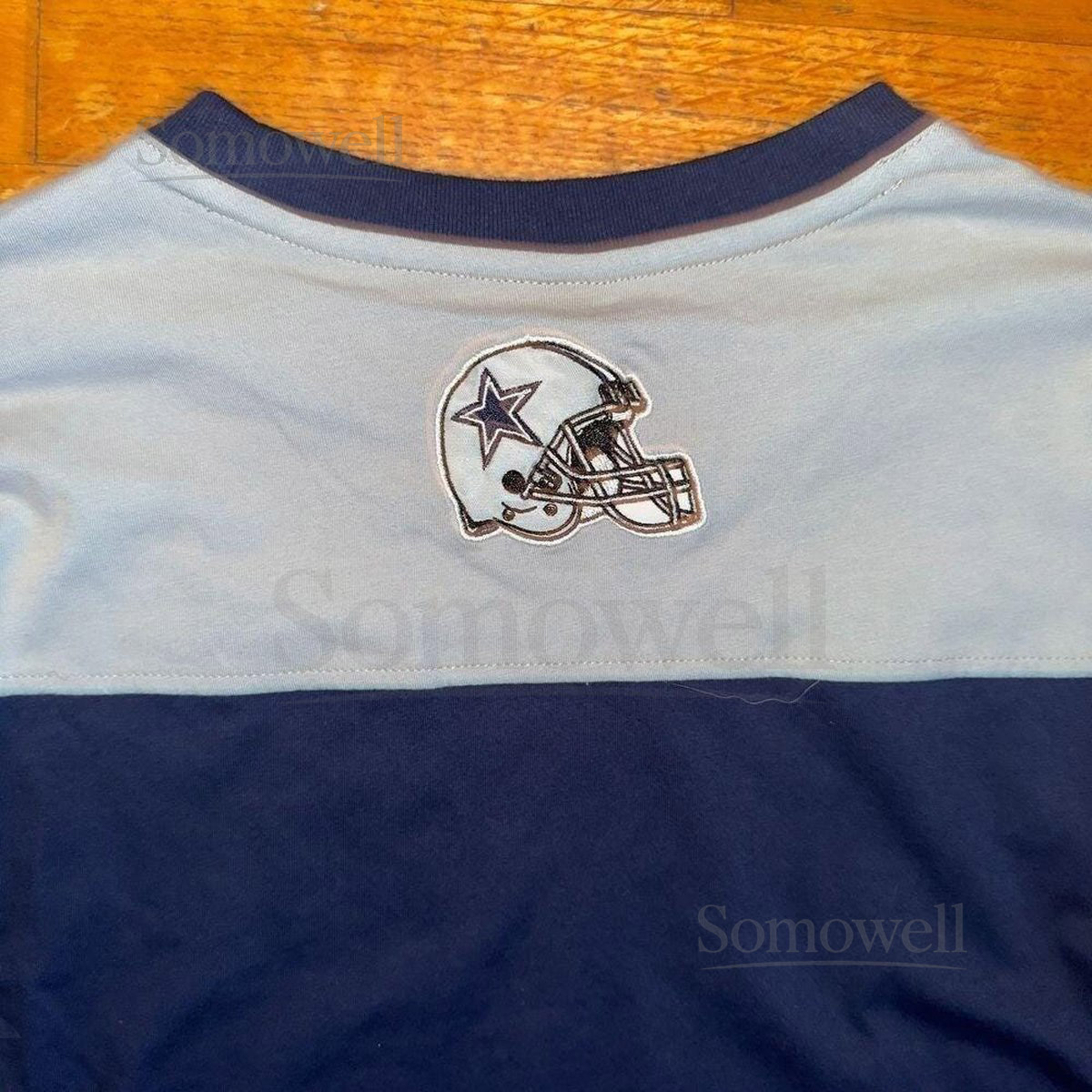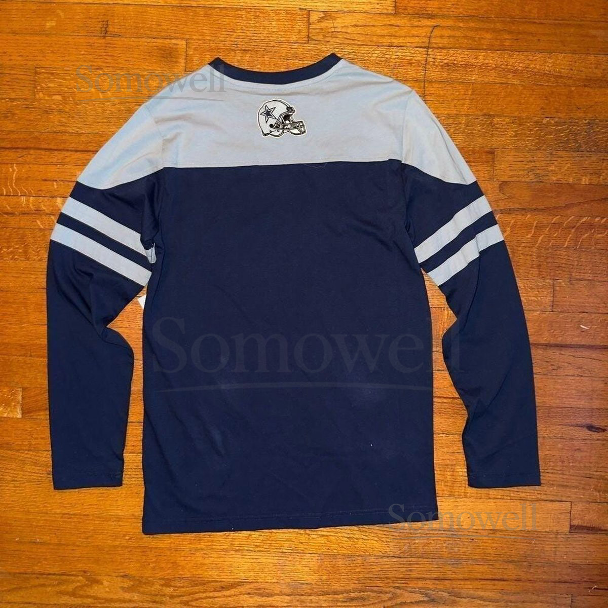 NFL Dallas Cowboys Long Sleeve Color Block Logo T-Shirt Navy Blue Gray XS_418