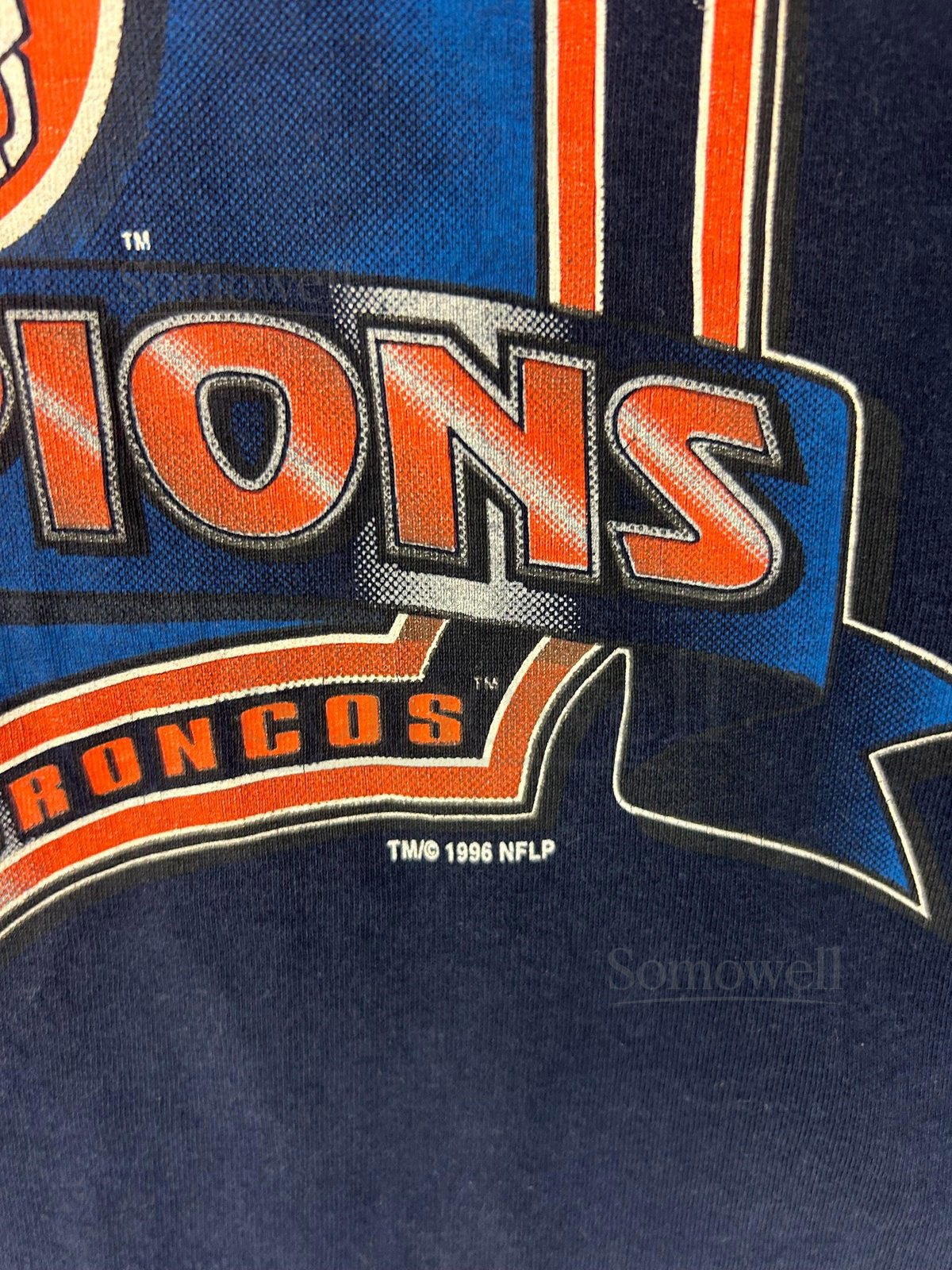 Vintage 90s Denver Broncos Champions T-Shirt Dark Blue Size L_511