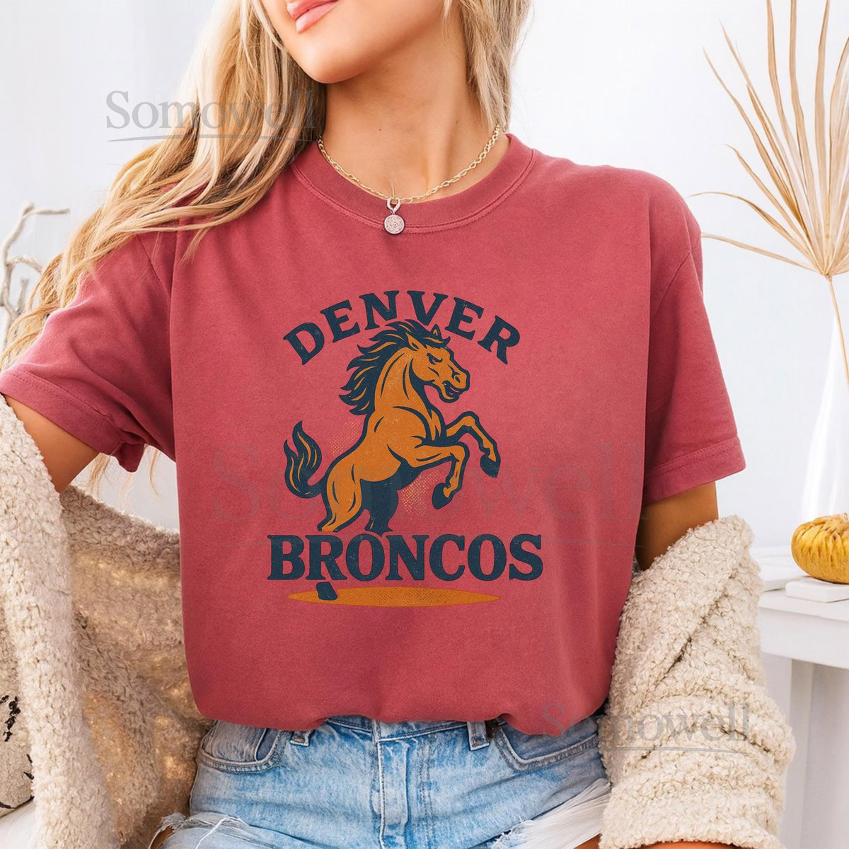 Vintage Denver Broncos T-Shirt Retro Horse Graphic Distressed NFL Tee_589