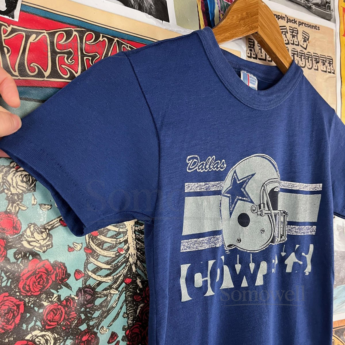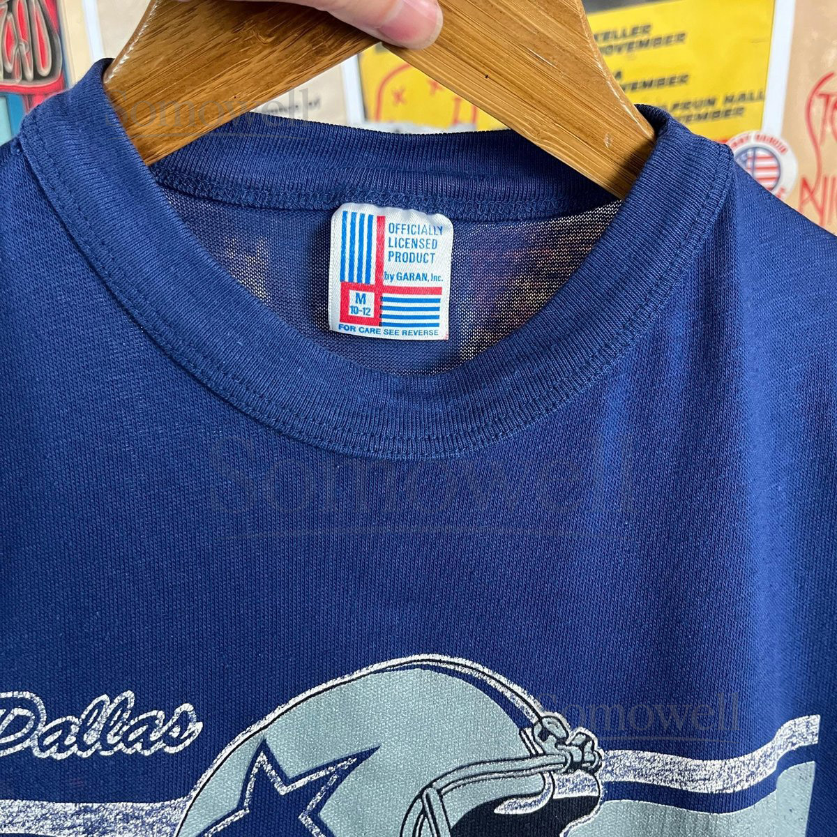 Vintage Kids 80s Navy Blue NFL Dallas Cowboys Football Graphic Crewneck T-Shirt Size 8 Ages 7-8 Retro Football Boys Girls Sportswear Tee Top_596