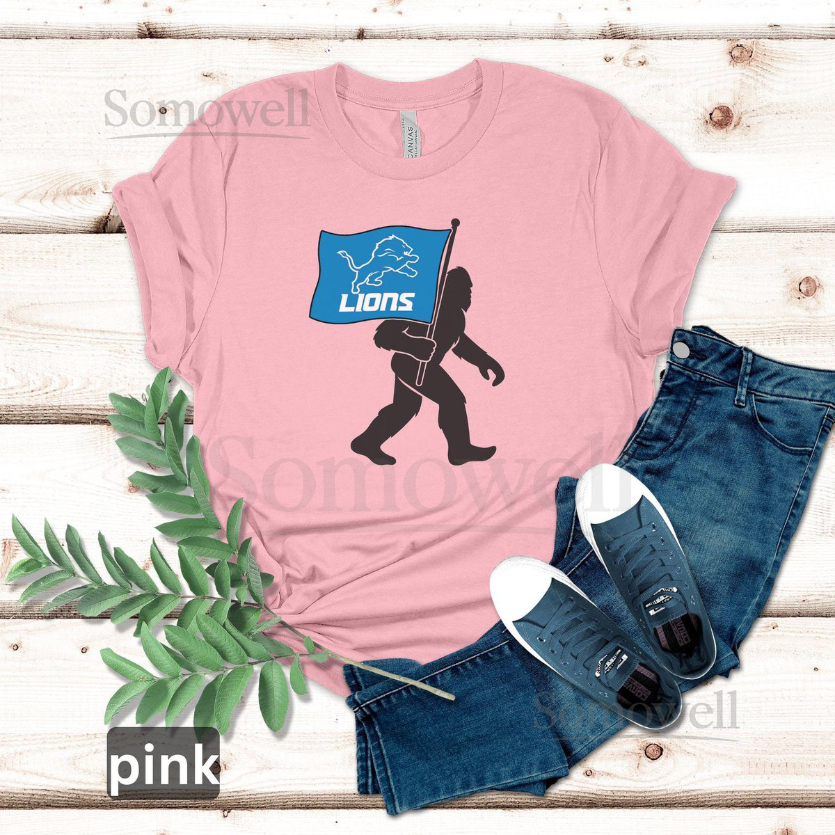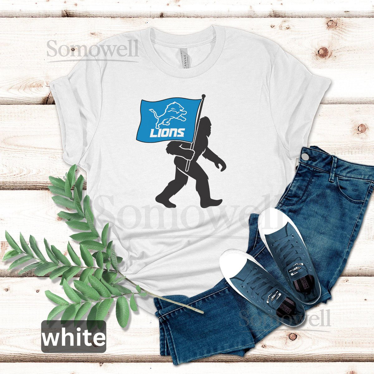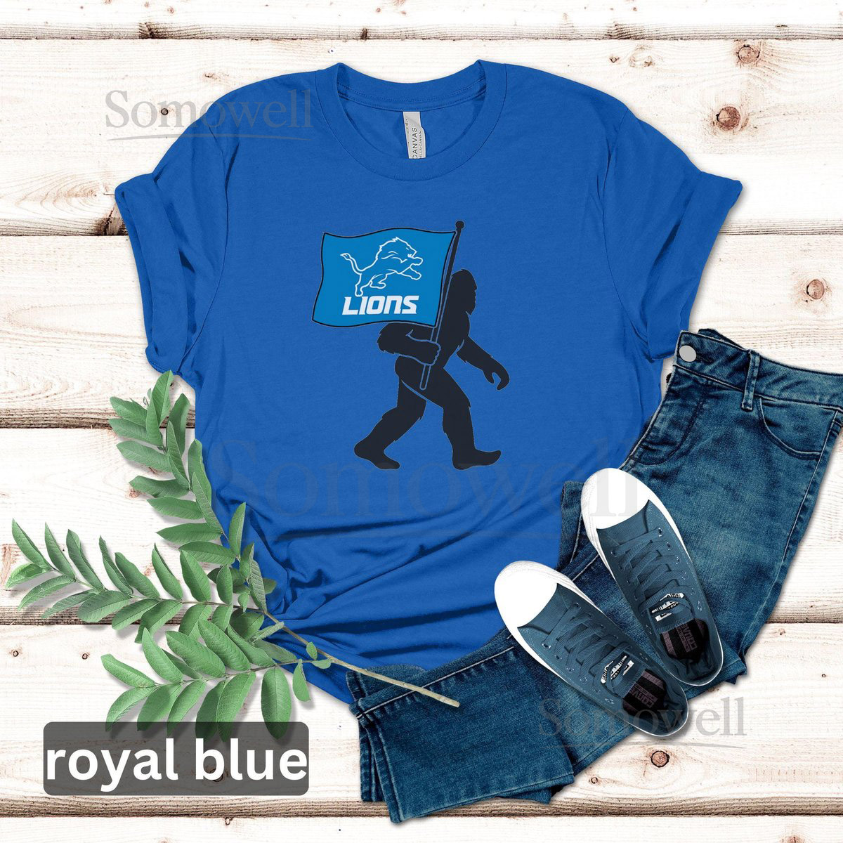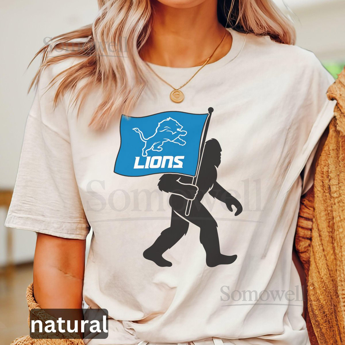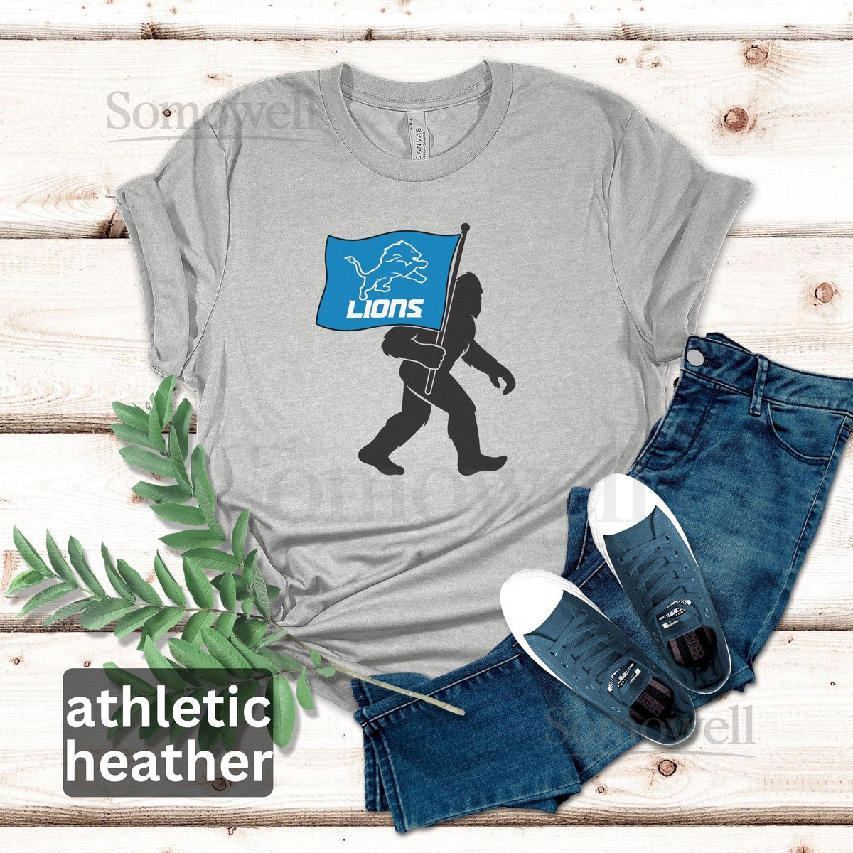 Big Foot with Detroit Lions Flag Unisex Tee Football Sports Fan Shirt Gift for Detroit Lions Fans Detroit Sports Apparel Bigfoot Shirt_35