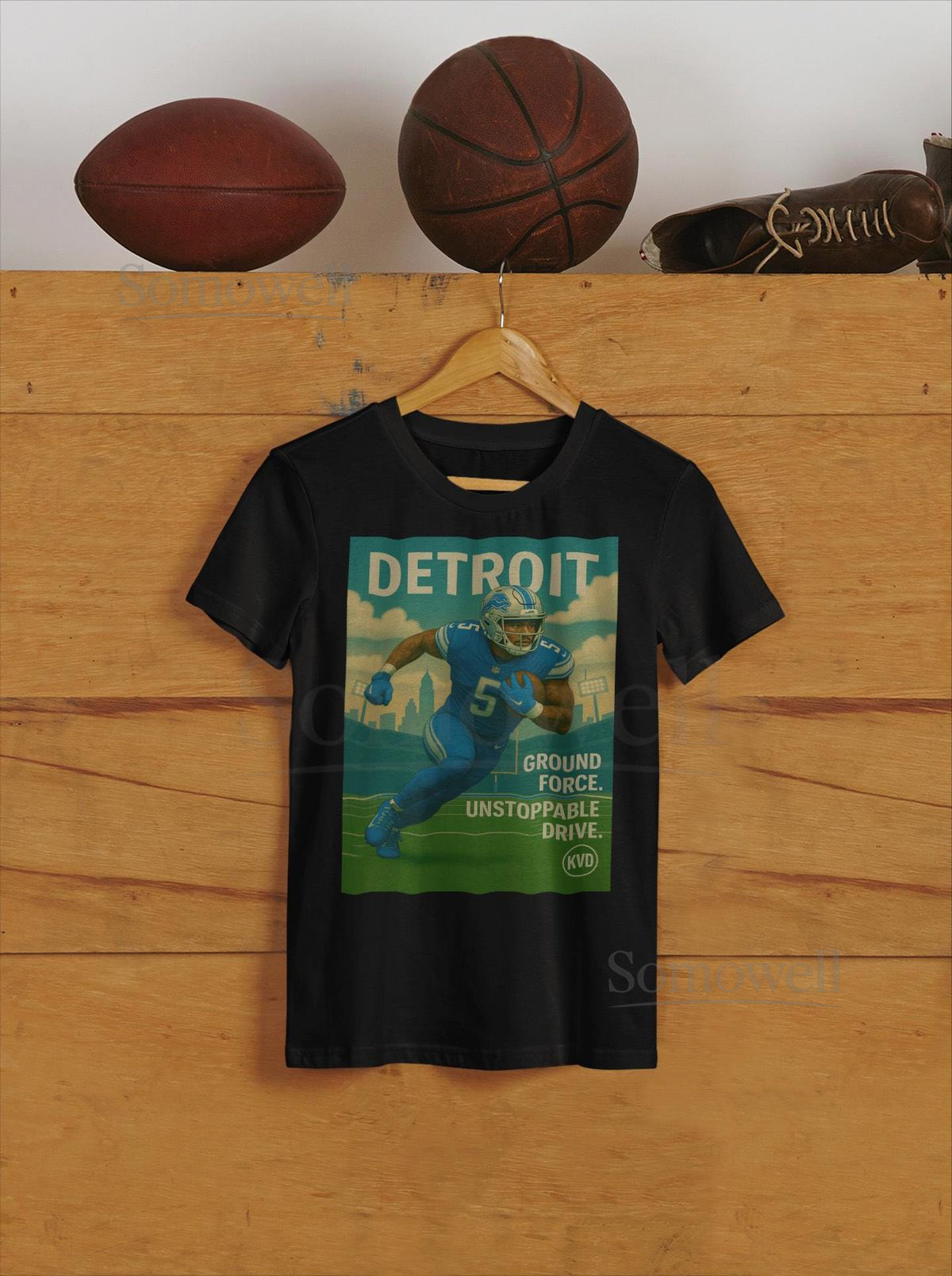 DET Detroit Football Skyline T-Shirt Ground Force. Unstoppable Drive. Pro Football Graphic Tee Sports Fan Gift_89
