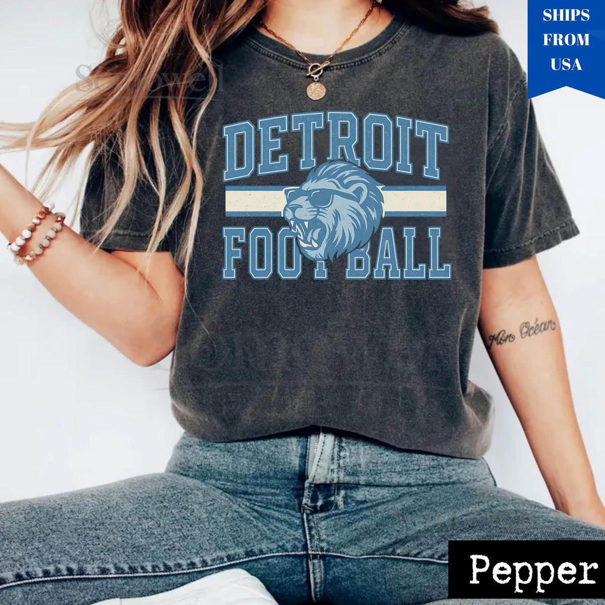 Detroit Football Comfort Colors Tee Womens Game Day Lion Graphic Shirt Cool Detroit Fan Apparel Gift Vintage Lion Football Shirt_101