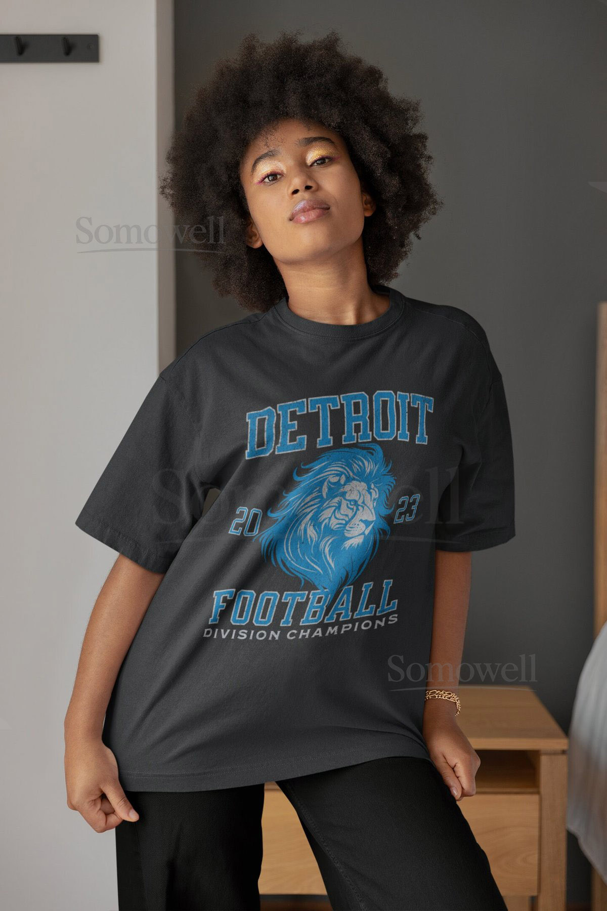 Detroit Football Division Champions Crewneck T-Shirt Vintage Style Detroit Lion North Division Champs Tee Retro Lion Football Fan Shirt_108