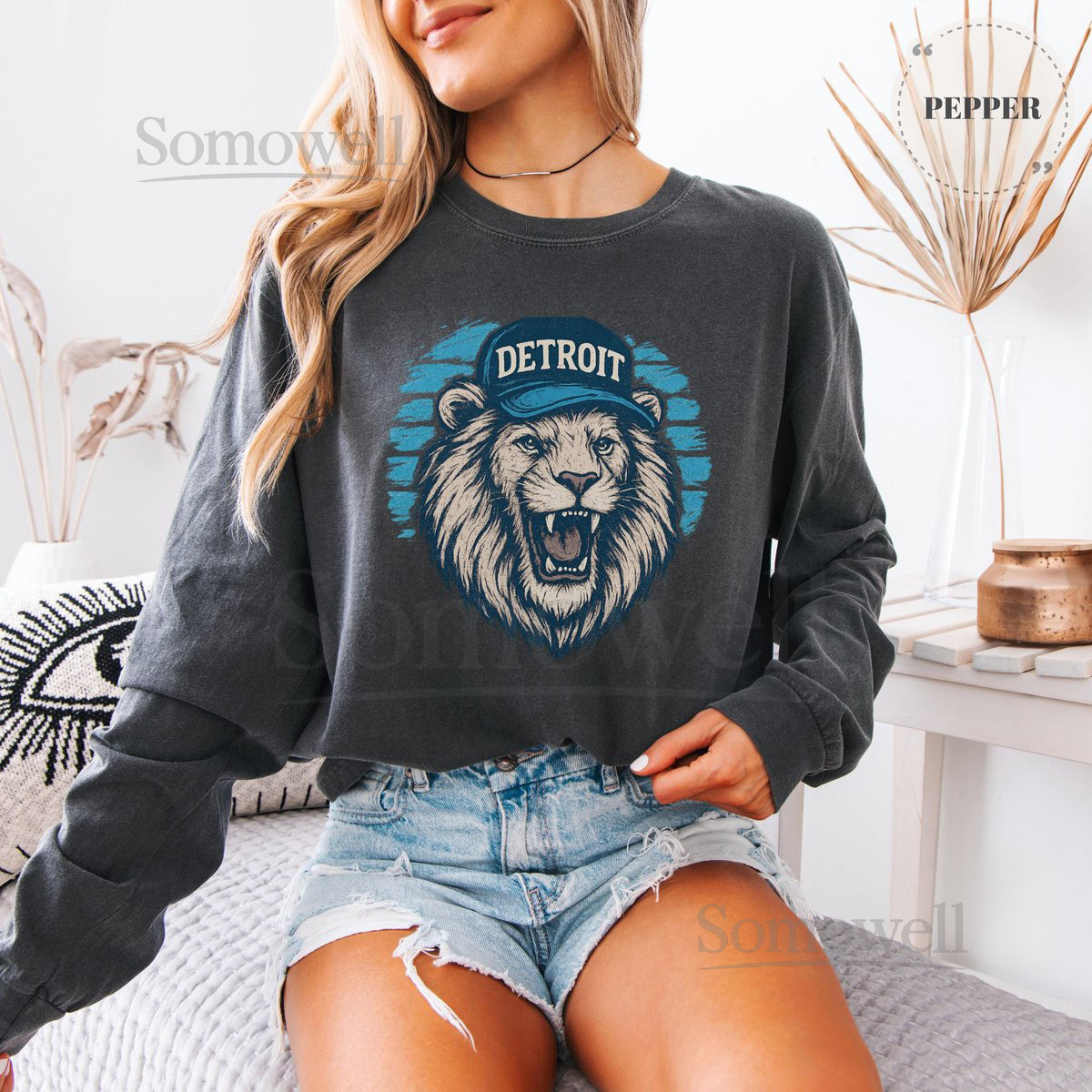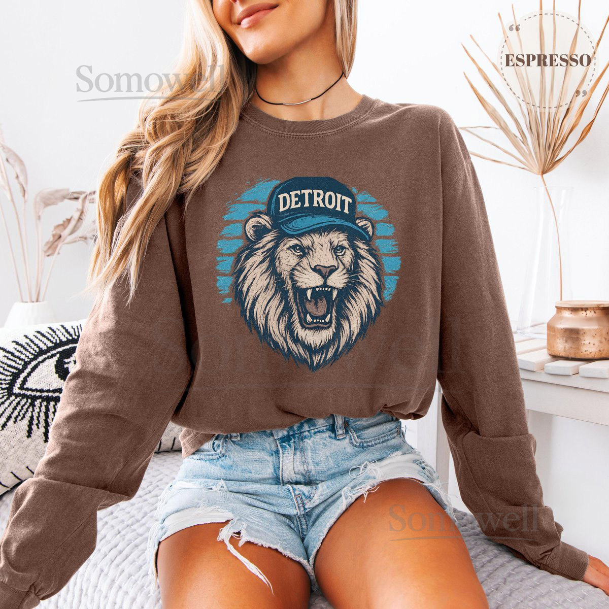 Detroit Football Shirt Comfort Colors Game Day Shirt Unisex Detroit Crewneck for Football Fans Lion Mascot Detroit Shirt Lion Lover_126